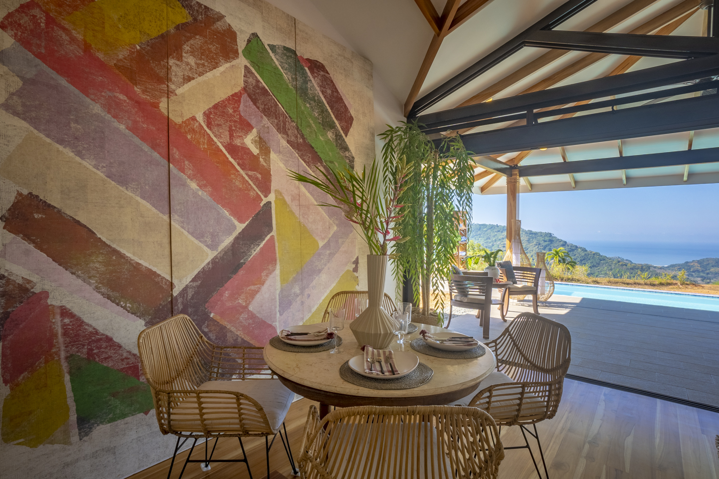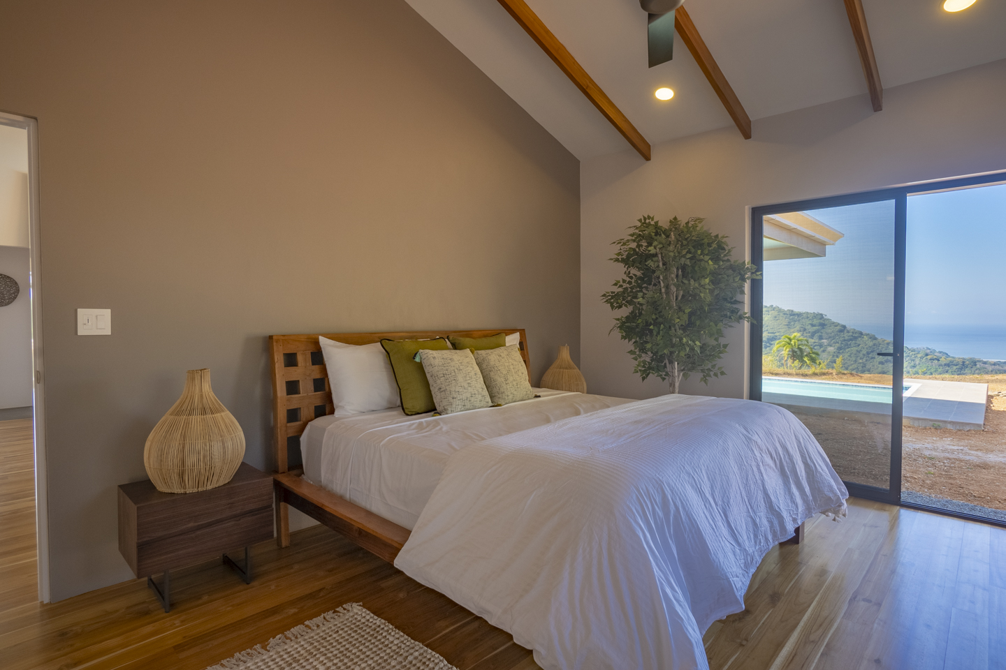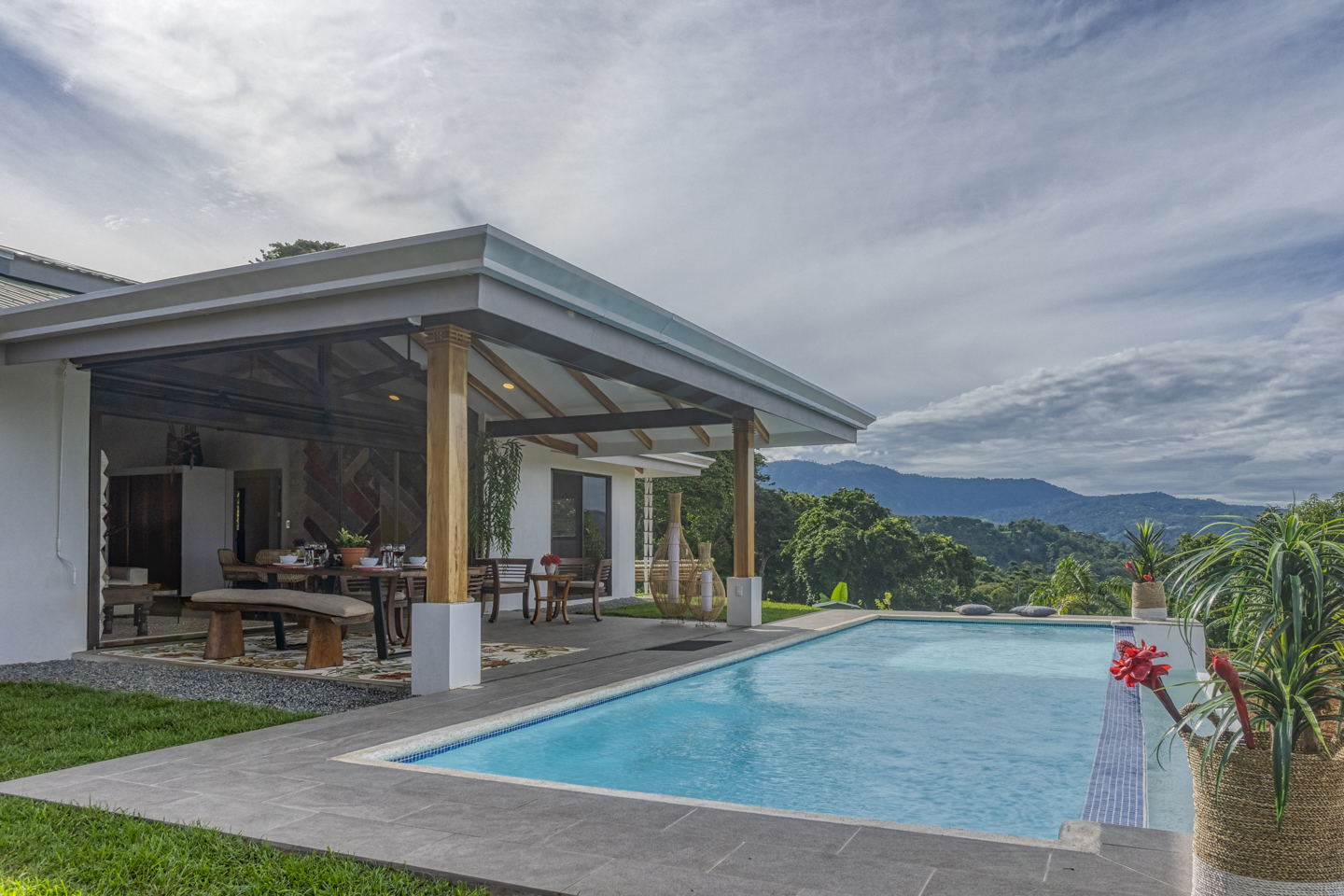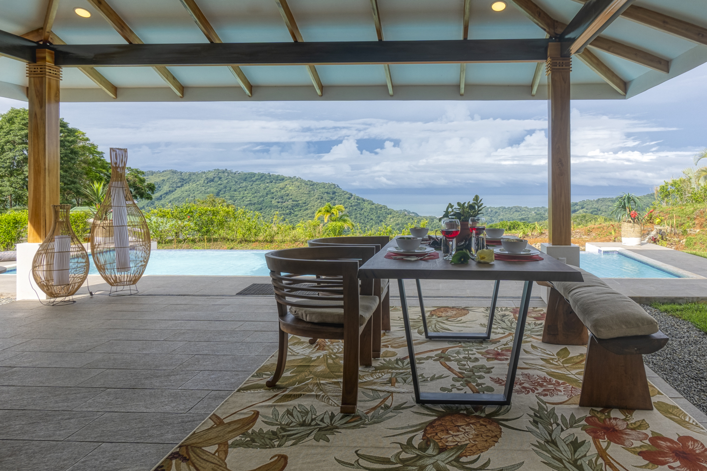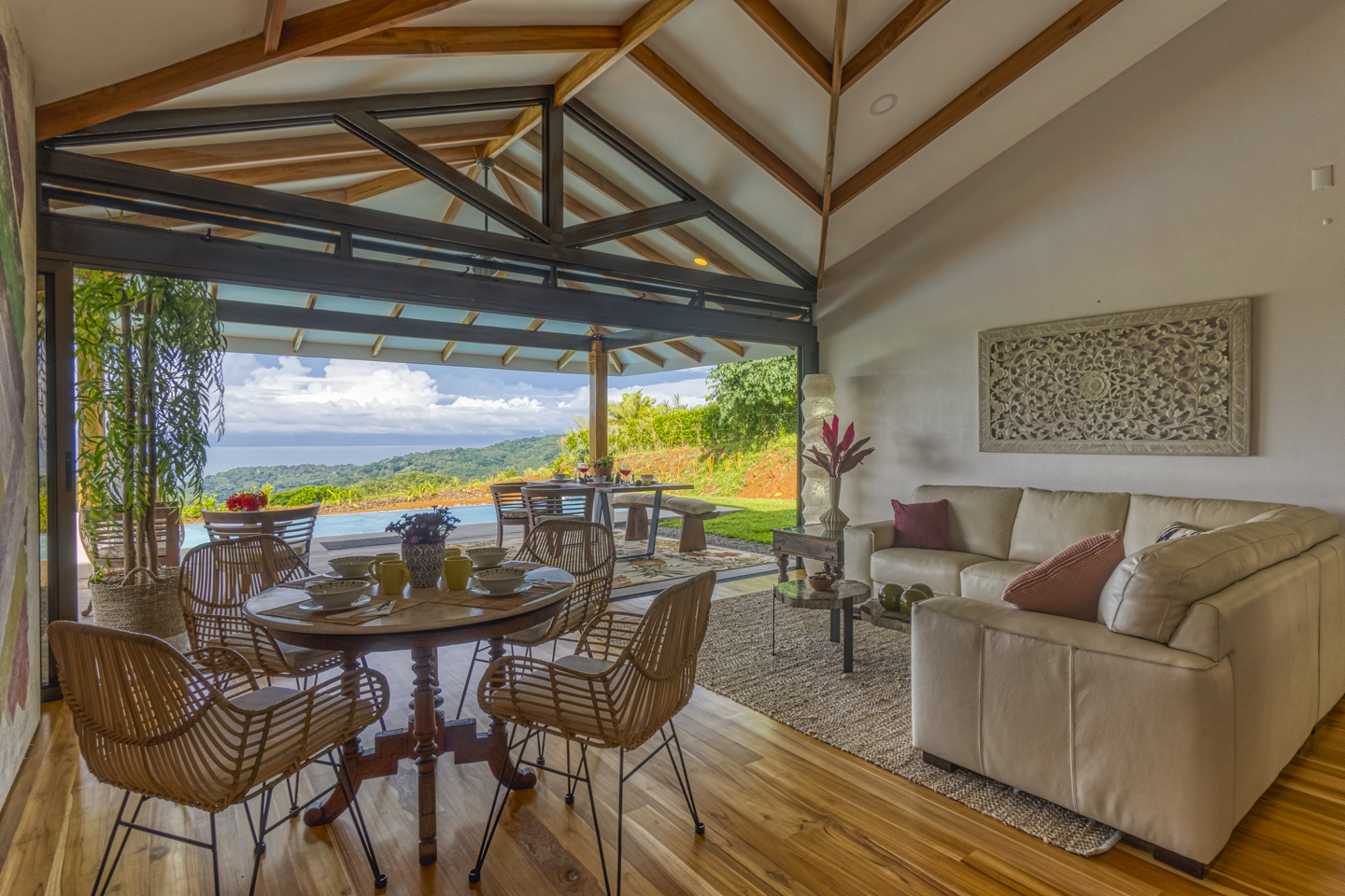 These new homes were designed with picturesque Costa Rica setting in mind. You can feel the fresh mountain air and bright sunshine from every room in these homes, but especially from the outdoor patio and the infinity pool. As soon as you enter the home, you can see dramatic ocean views for miles. If you hear a large wave, it is because the sound is magnified, almost as if by a microphone. What an experience that is!