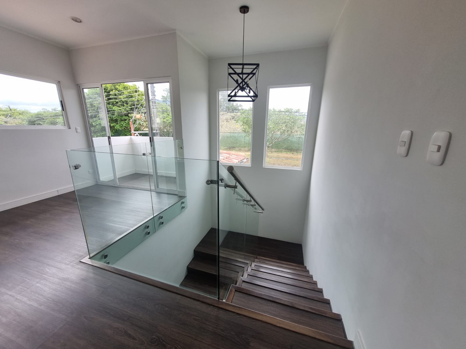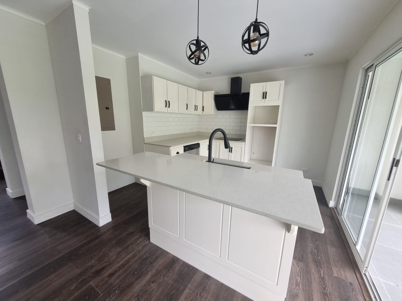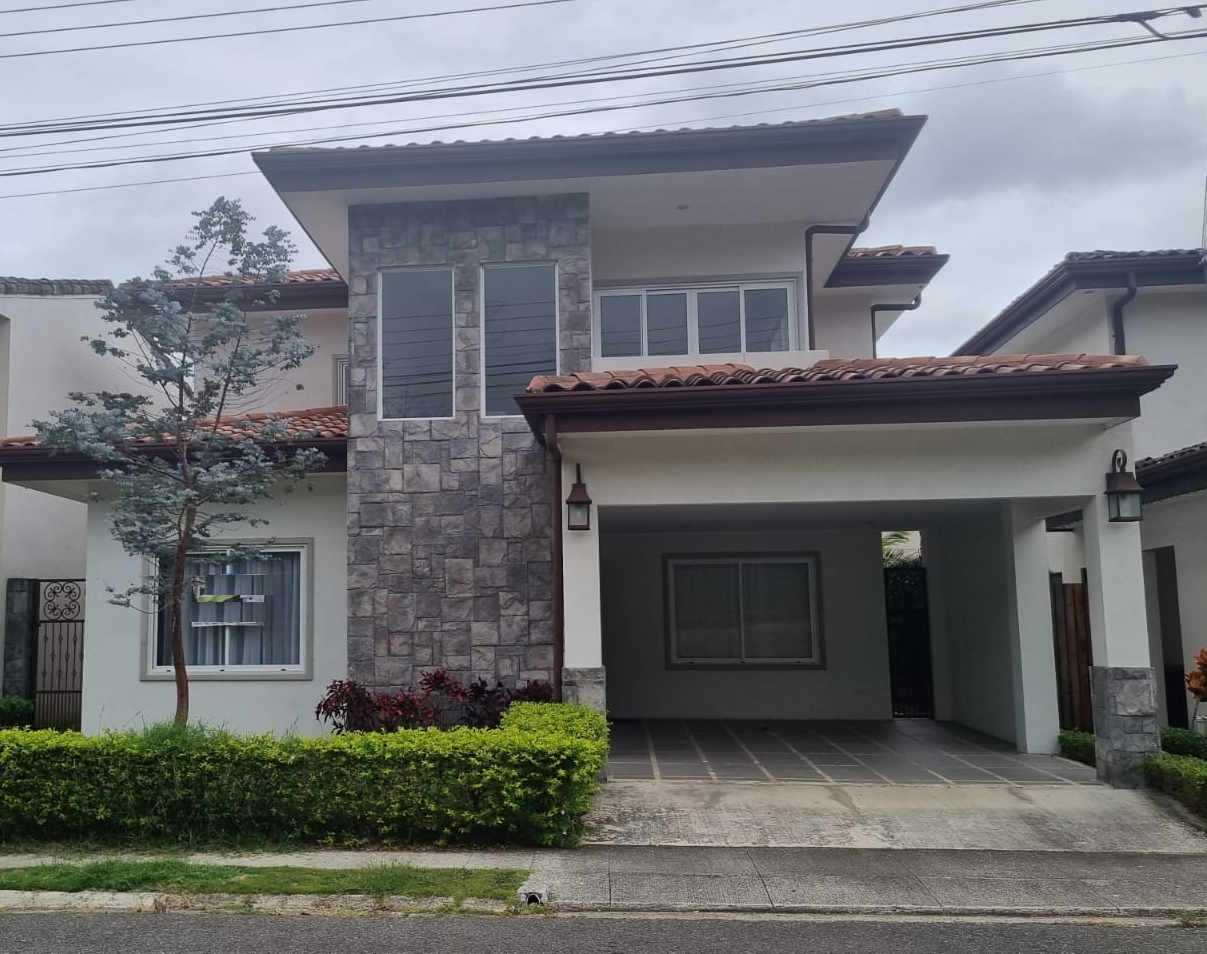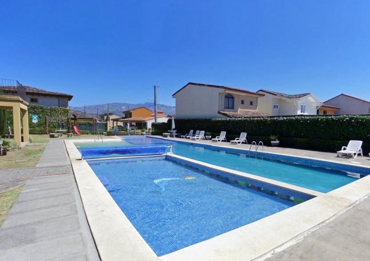 Beautiful two-story house in a condominium – El Tejar de El Guarco Located in an exclusive condominium with 24/7 security, this property offers a comfortable, secure lifestyle surrounded by amenities for the entire family. Built with high ceilings, it stands out for its spacious, airy spaces with excellent natural lighting, as well as its fine finishes in every detail. First Floor Upon entering, you are greeted by an elegant foyer that connects to a covered garage for two vehicles. The kitchen is equipped with high-quality wood cabinetry, a central island, a breakfast bar, and quartz countertops. It includes an extractor hood, built-in stove, and dishwasher. The living and dining areas are integrated into an open space with direct access to a large terrace, ideal for gatherings and relaxing, with access to a spacious and private garden. It also features a secondary bedroom with a closet, a full bathroom, ideal for guests or seniors, and a storage room for additional storage. Second Floor We find a cozy TV room with a balcony, perfect for family entertainment. The master bedroom is spacious and comfortable, with a walk-in closet (WC) and a private bathroom with double sinks. The second bedroom has a closet and a full bathroom. Condo Amenities The condo offers 24/7 security, a maintenance fee of ₡70,000, a pool, a playground, an activity area, a reading area, and a tennis court. A perfect setting for family relaxation and relaxation.