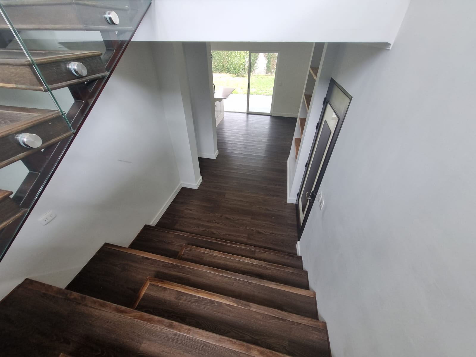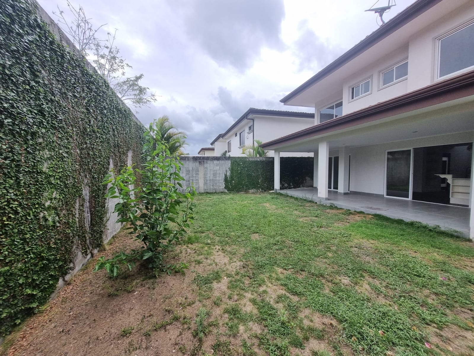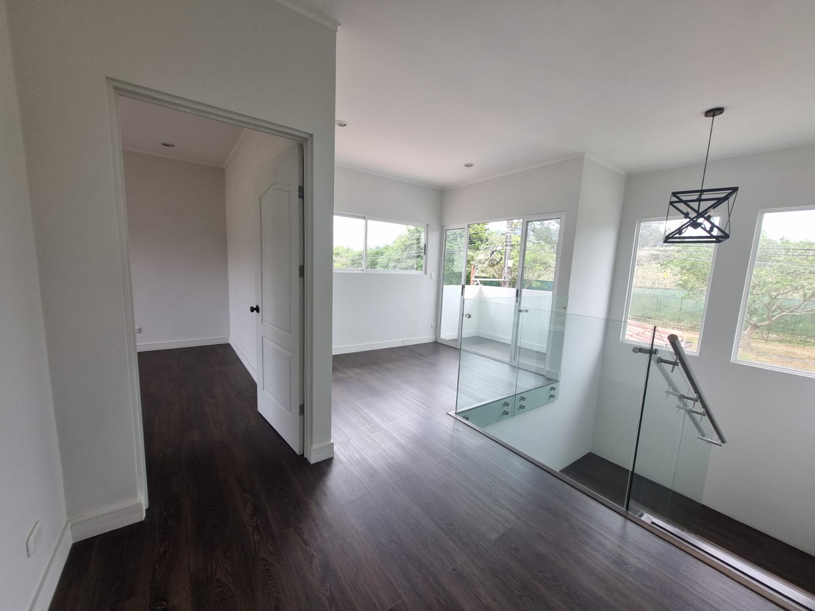 Beautiful two-story house in a condominium – El Tejar de El Guarco Located in an exclusive condominium with 24/7 security, this property offers a comfortable, secure lifestyle surrounded by amenities for the entire family. Built with high ceilings, it stands out for its spacious, airy spaces with excellent natural lighting, as well as its fine finishes in every detail. First Floor Upon entering, you are greeted by an elegant foyer that connects to a covered garage for two vehicles. The kitchen is equipped with high-quality wood cabinetry, a central island, a breakfast bar, and quartz countertops. It includes an extractor hood, built-in stove, and dishwasher. The living and dining areas are integrated into an open space with direct access to a large terrace, ideal for gatherings and relaxing, with access to a spacious and private garden. It also features a secondary bedroom with a closet, a full bathroom, ideal for guests or seniors, and a storage room for additional storage. Second Floor We find a cozy TV room with a balcony, perfect for family entertainment. The master bedroom is spacious and comfortable, with a walk-in closet (WC) and a private bathroom with double sinks. The second bedroom has a closet and a full bathroom. Condo Amenities The condo offers 24/7 security, a maintenance fee of ₡70,000, a pool, a playground, an activity area, a reading area, and a tennis court. A perfect setting for family relaxation and relaxation.