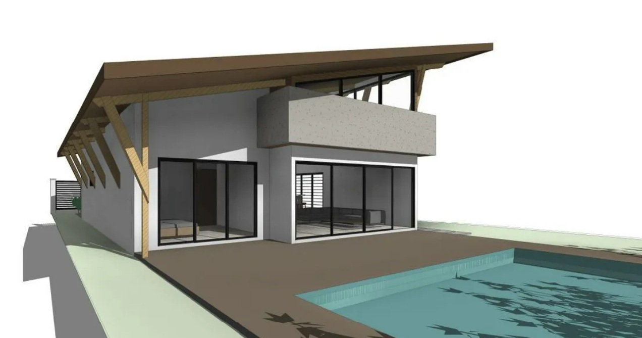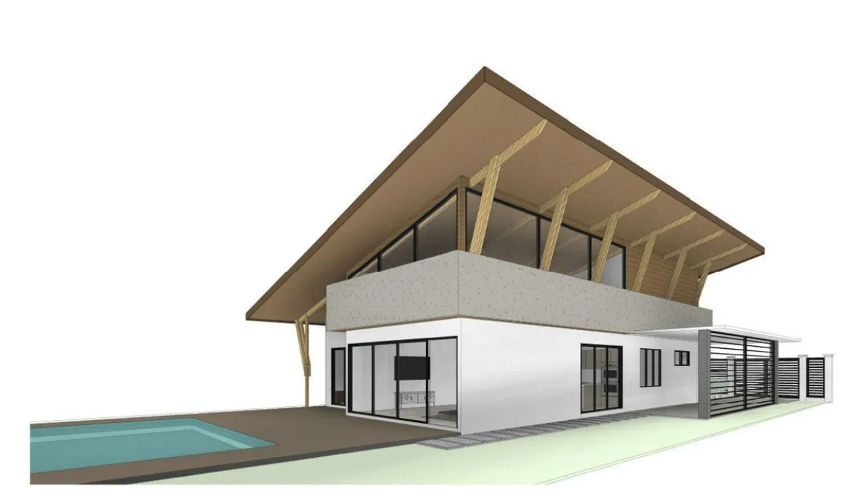 This under-construction 3-bedroom, 2-bath villa offers modern tropical design with vaulted ceilings and air conditioning throughout. The home features a private pool for year-round enjoyment and a covered carport for convenience.