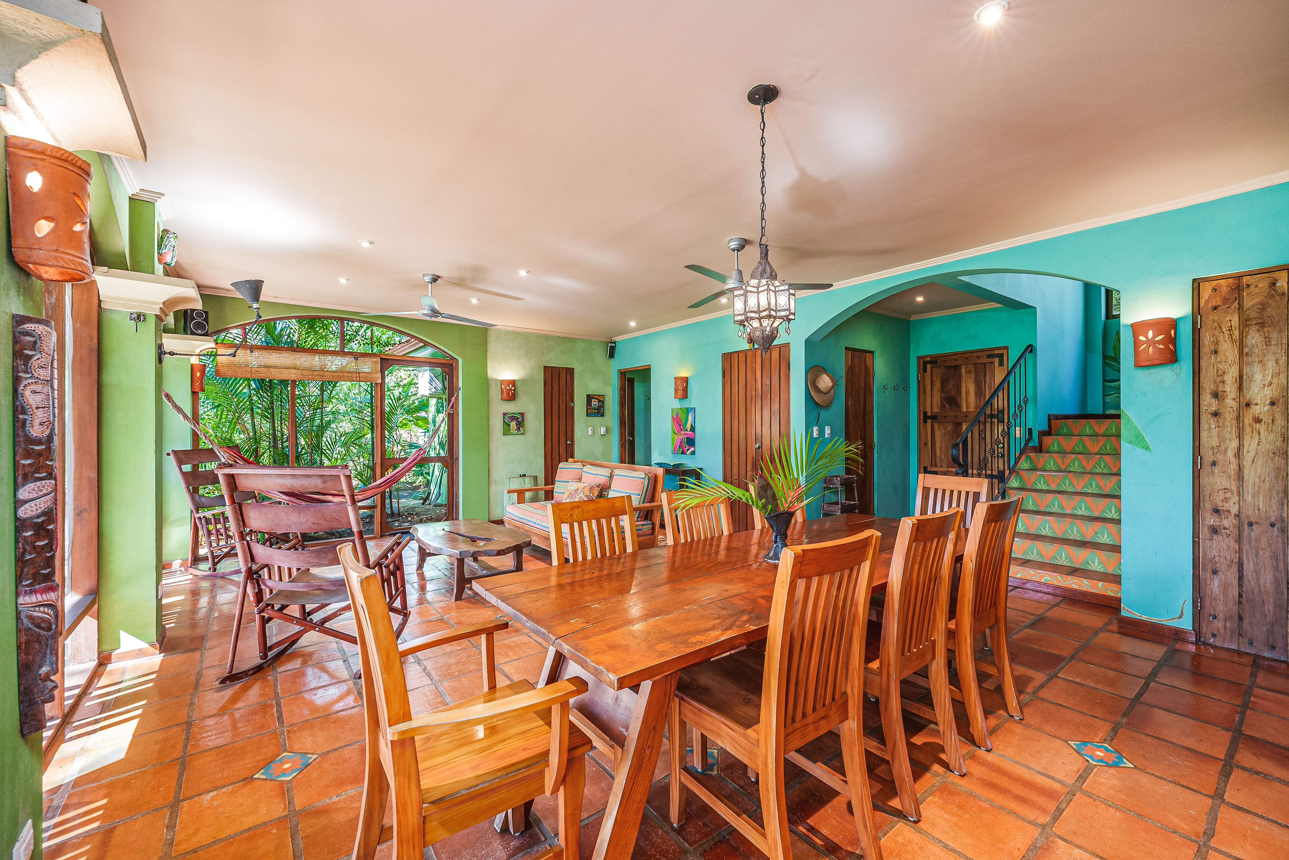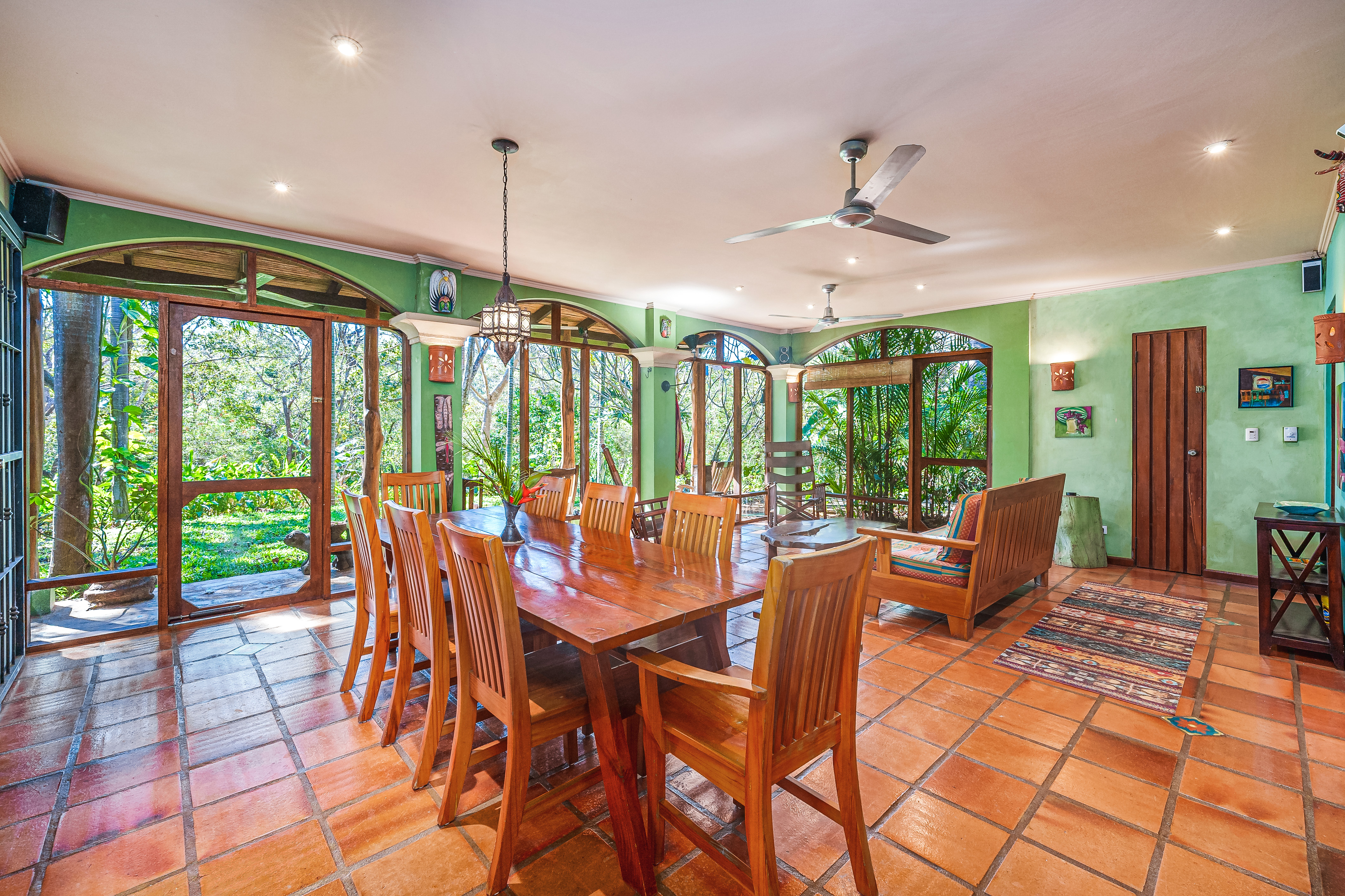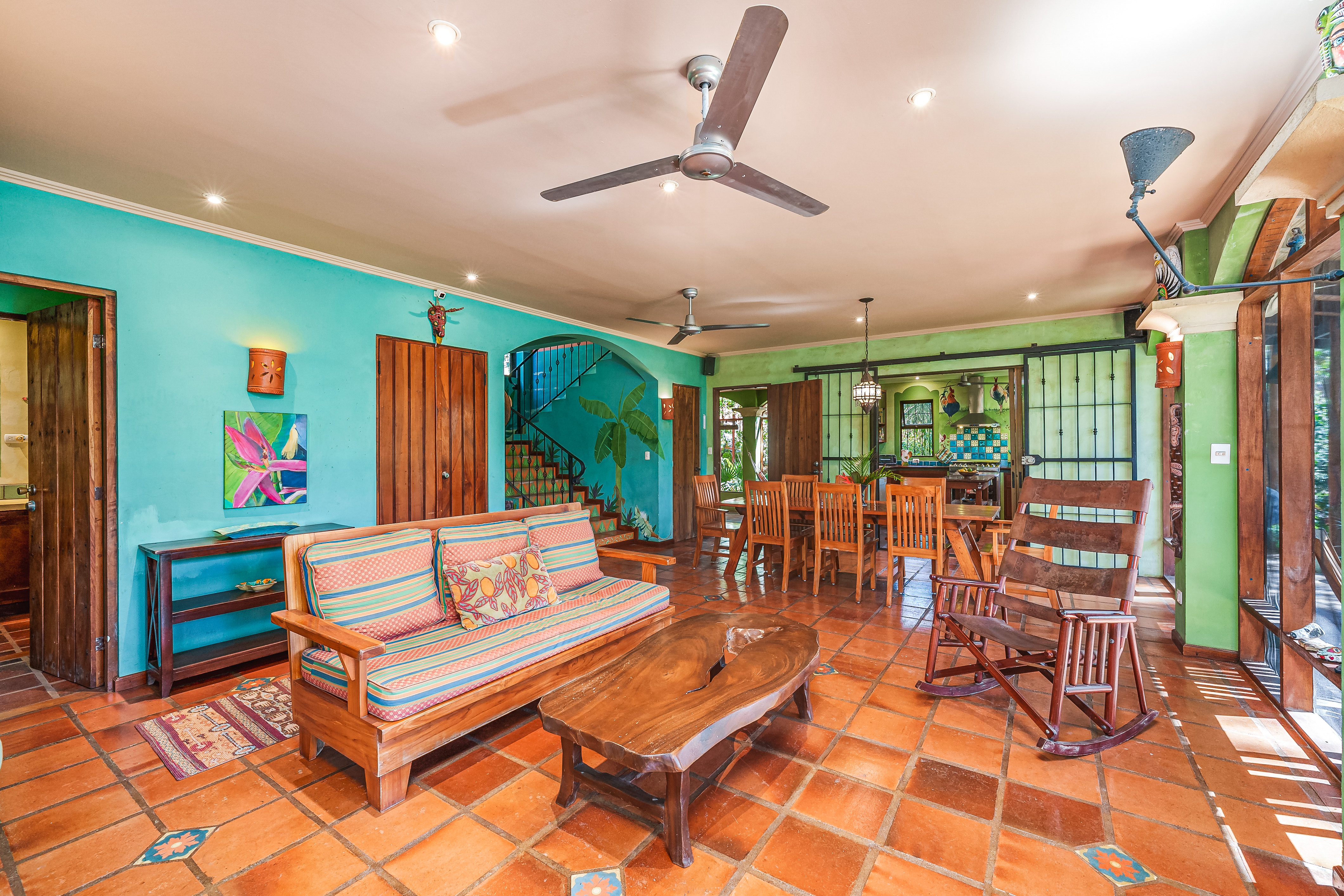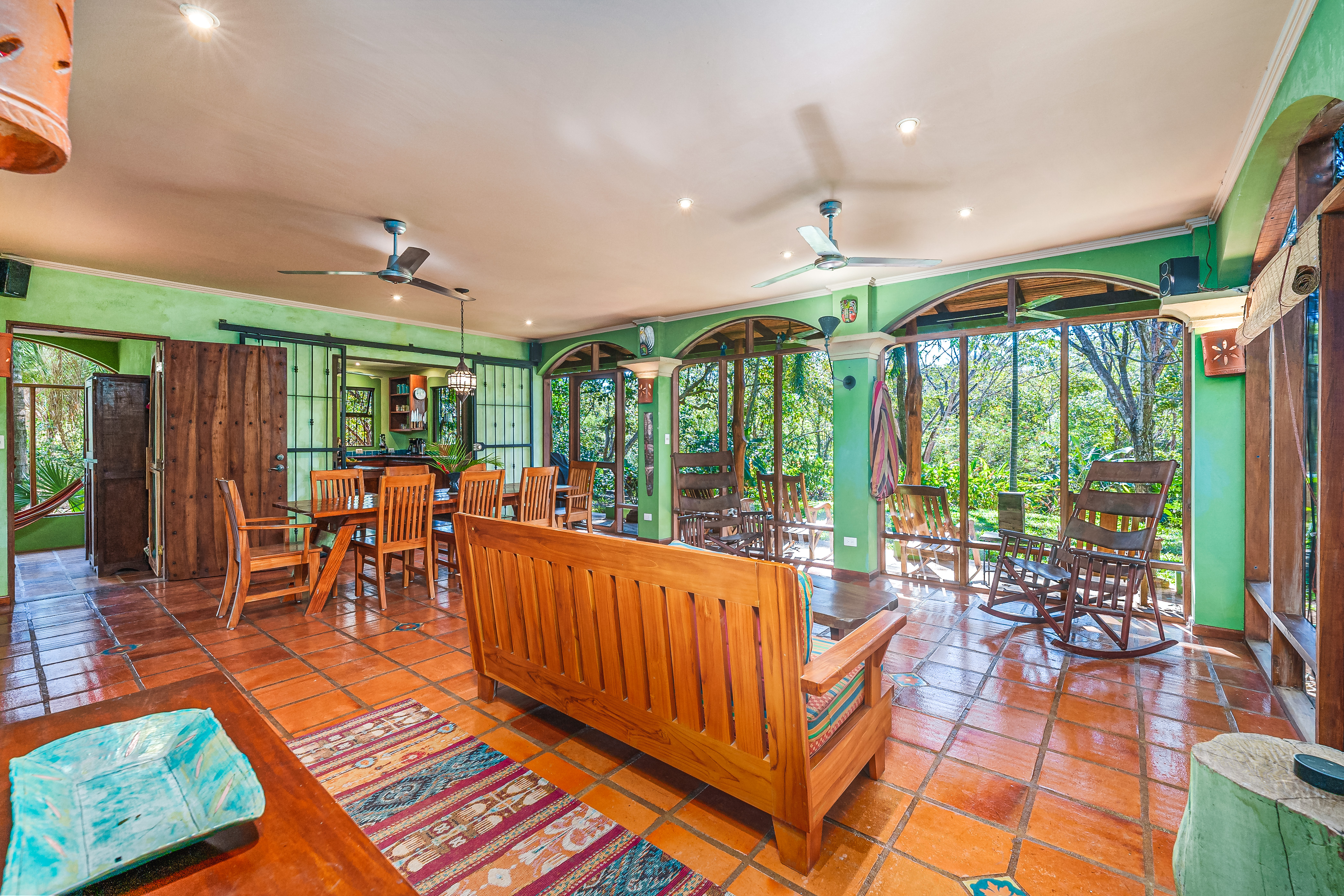 The main living room feels as if a garden patio has been combined with a cozy, country house in the Mediterranean. If your dream is to breathe more fresh air and to truly enjoy the Costa Rica forest, there couldn't be a better space.