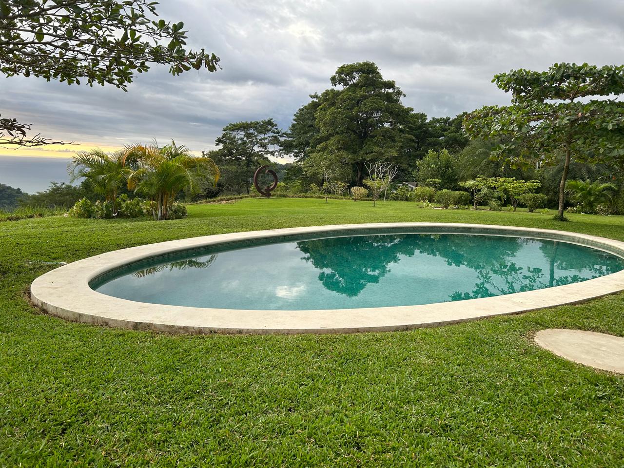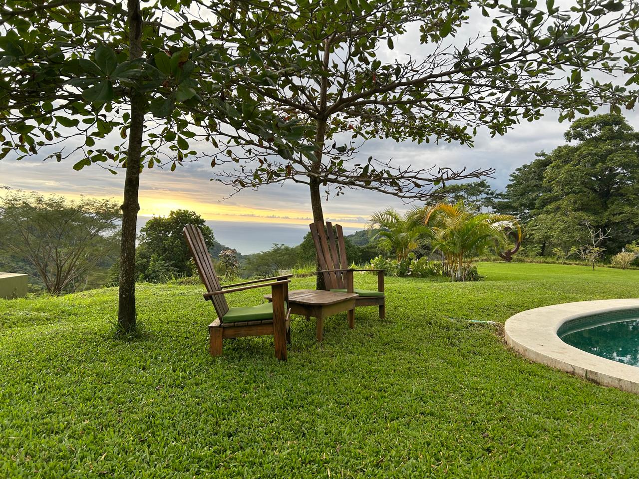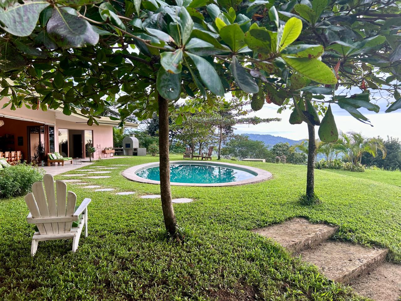 Upon entering the home there is a large open kitchen and great room with an island bar perfect for entertaining guests. Off the front of the kitchen is the spacious deck and beautiful swimming pool. All bedrooms have ensuite bathrooms and gorgeous sea views. Home comes complete with laundry room, storage area and carport. The front yard with its soft Bermuda grass and wood burning fire oven gives ample room for outdoor entertaining and watching amazing sunsets. Just below the house is another building platform with its’ own private entrance which would be great for a guest home or vacation rental. Great opportunity in an amazing area with privacy, jungle, views and delightful ocean breezes. Inquire to schedule your showing.