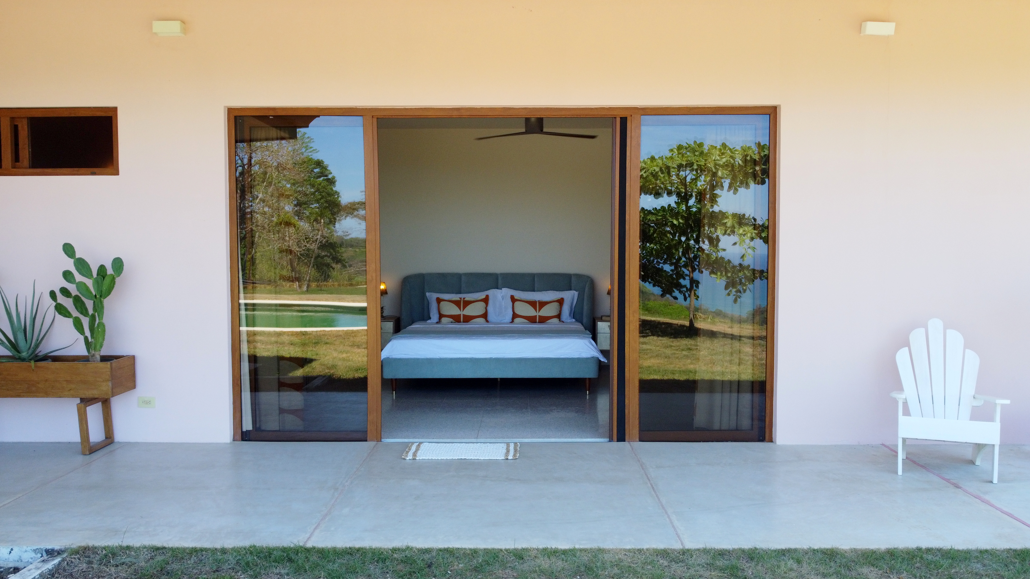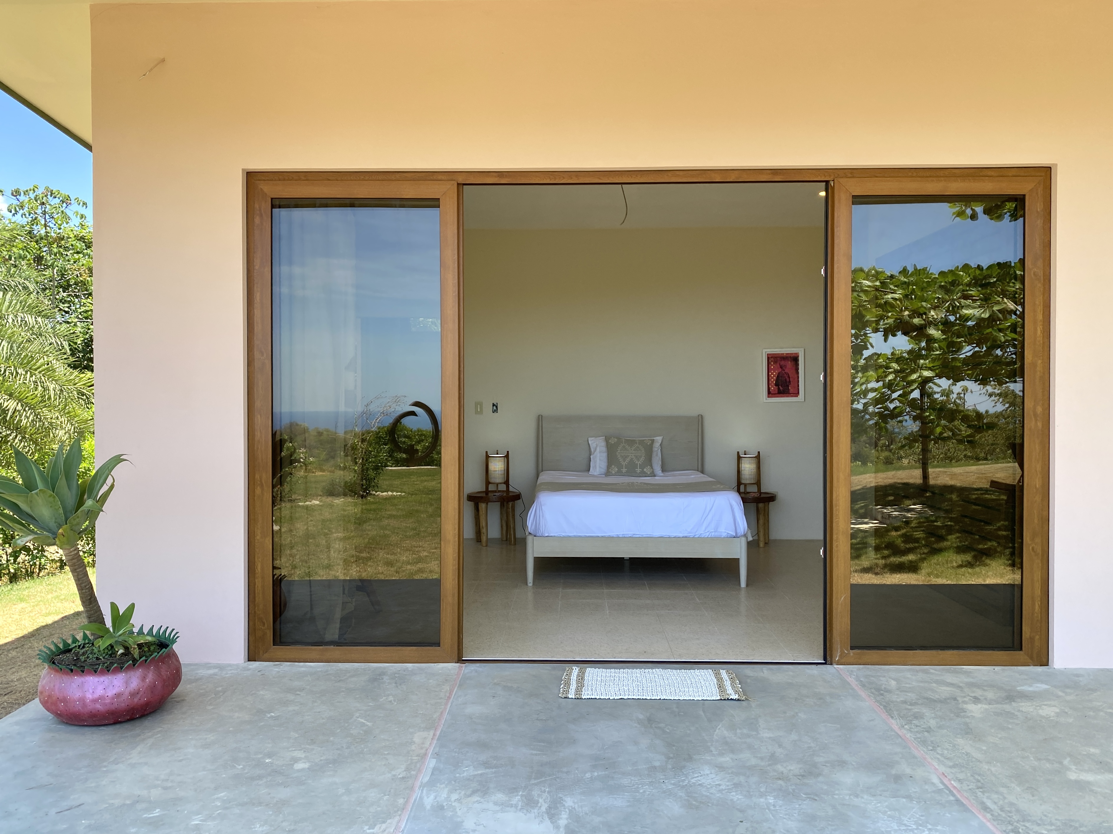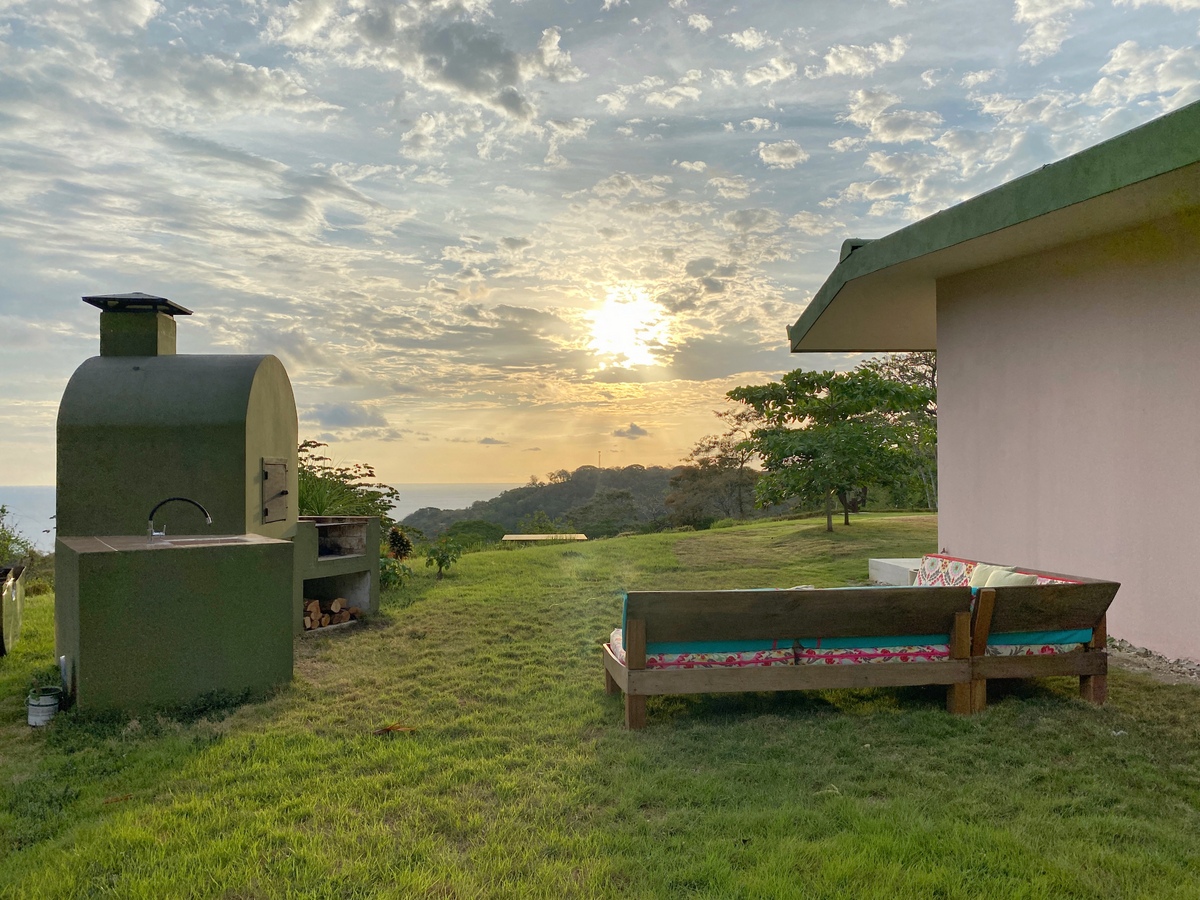 Upon entering the home there is a large open kitchen and great room with an island bar perfect for entertaining guests. Off the front of the kitchen is the spacious deck and beautiful swimming pool. All bedrooms have ensuite bathrooms and gorgeous sea views. Home comes complete with laundry room, storage area and carport. The front yard with its soft Bermuda grass and wood burning fire oven gives ample room for outdoor entertaining and watching amazing sunsets. Just below the house is another building platform with its’ own private entrance which would be great for a guest home or vacation rental. Great opportunity in an amazing area with privacy, jungle, views and delightful ocean breezes. Inquire to schedule your showing.