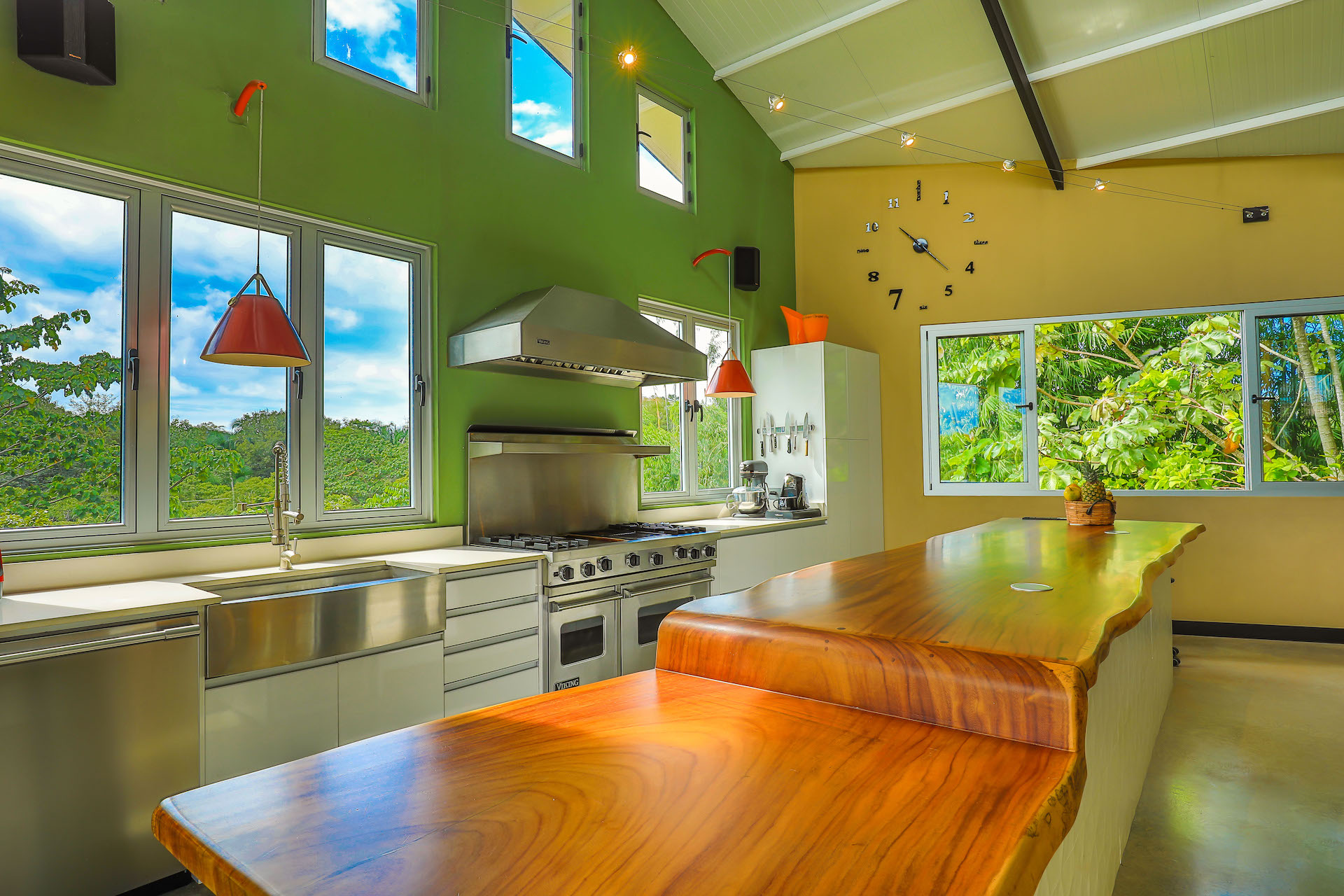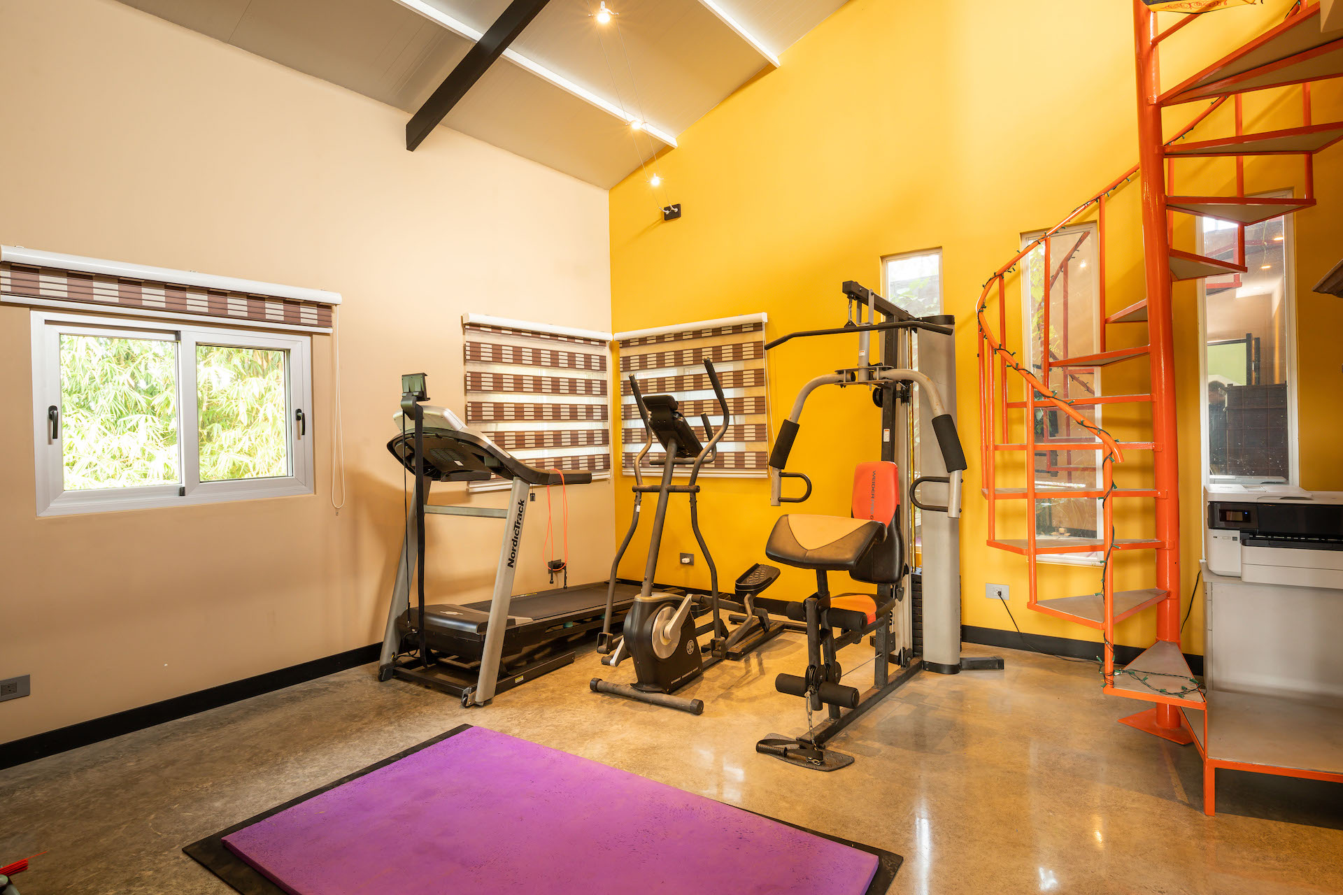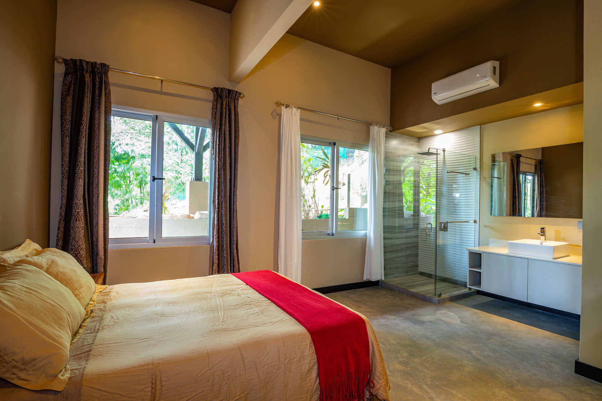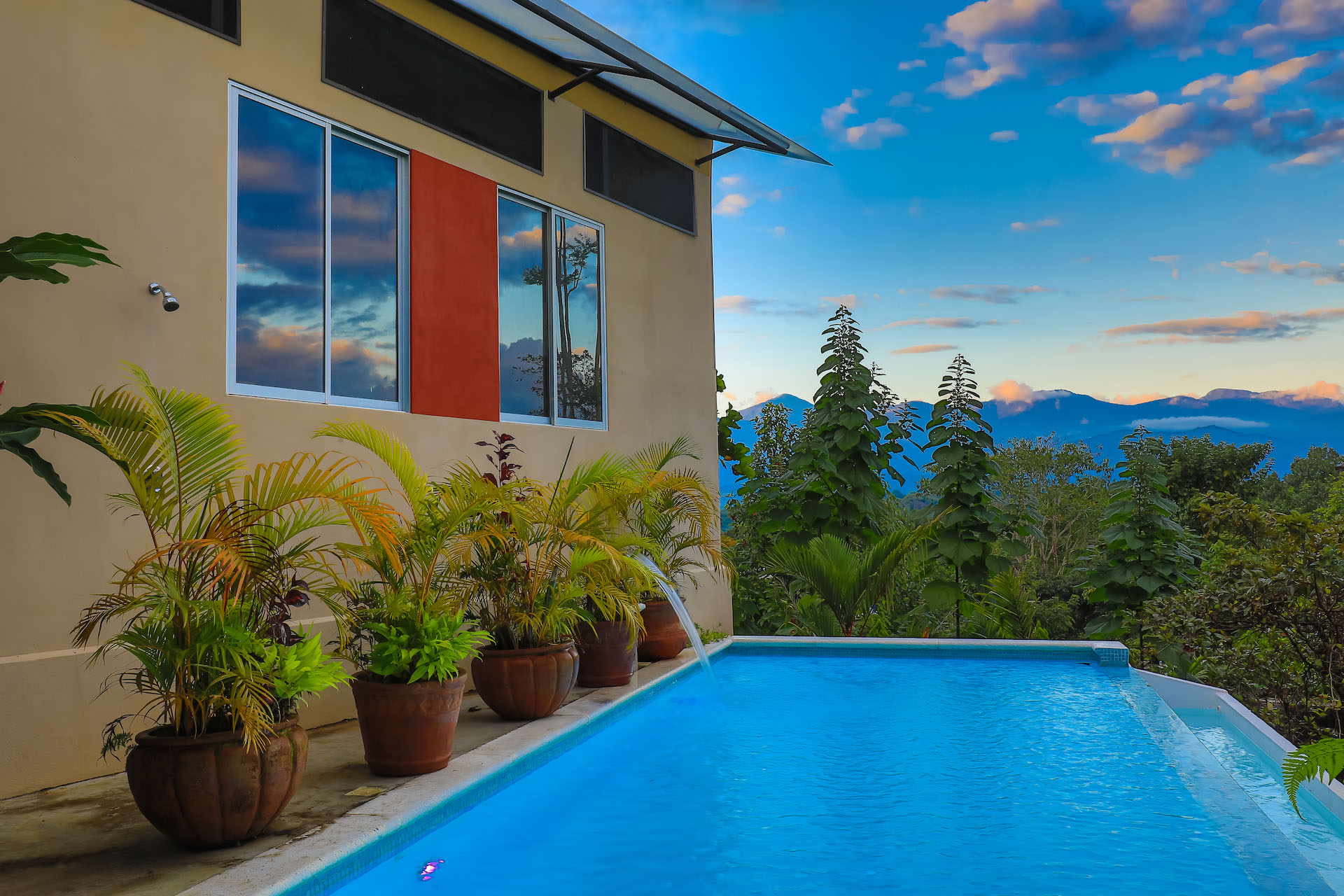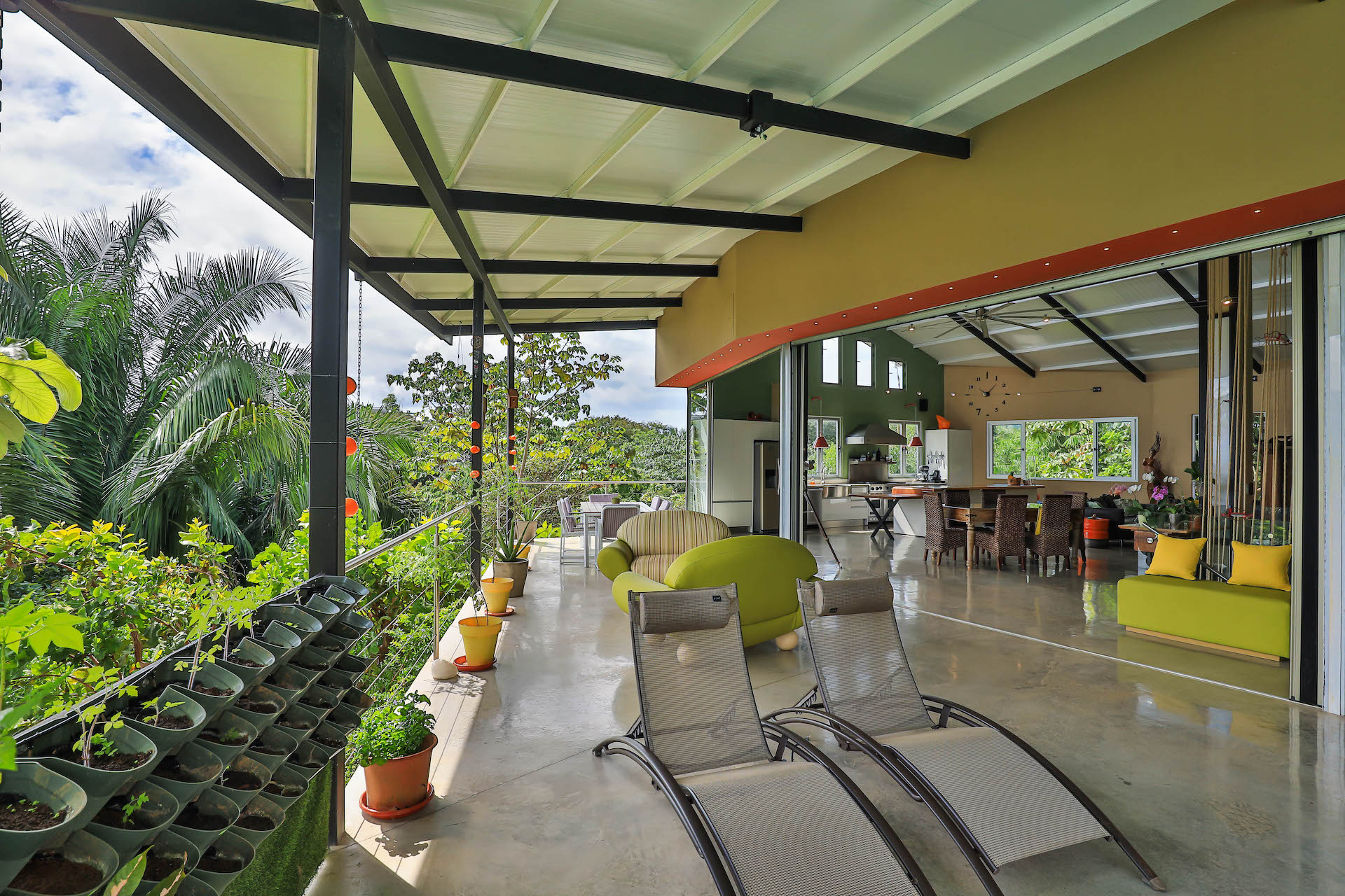 Designed by the owners, their 20+ years in Costa Rican is brought to bear on every thoughtful and satisfying detail. An a-symmetrical roof has imported Italian motor-operated windows to allow heat to escape. A solar panel powers the pool pump, All electrical outlets imported to ensure quality. The German-made toilets, Turkish bathroom sinks, retractable mosquito screens, and custom bedroom doors are all of the highest quality. Fiber optic 100 MG internet is available throughout the home as well as the large workshop at the bottom of the property. The main floor is also wired to support a complete surround sound system.