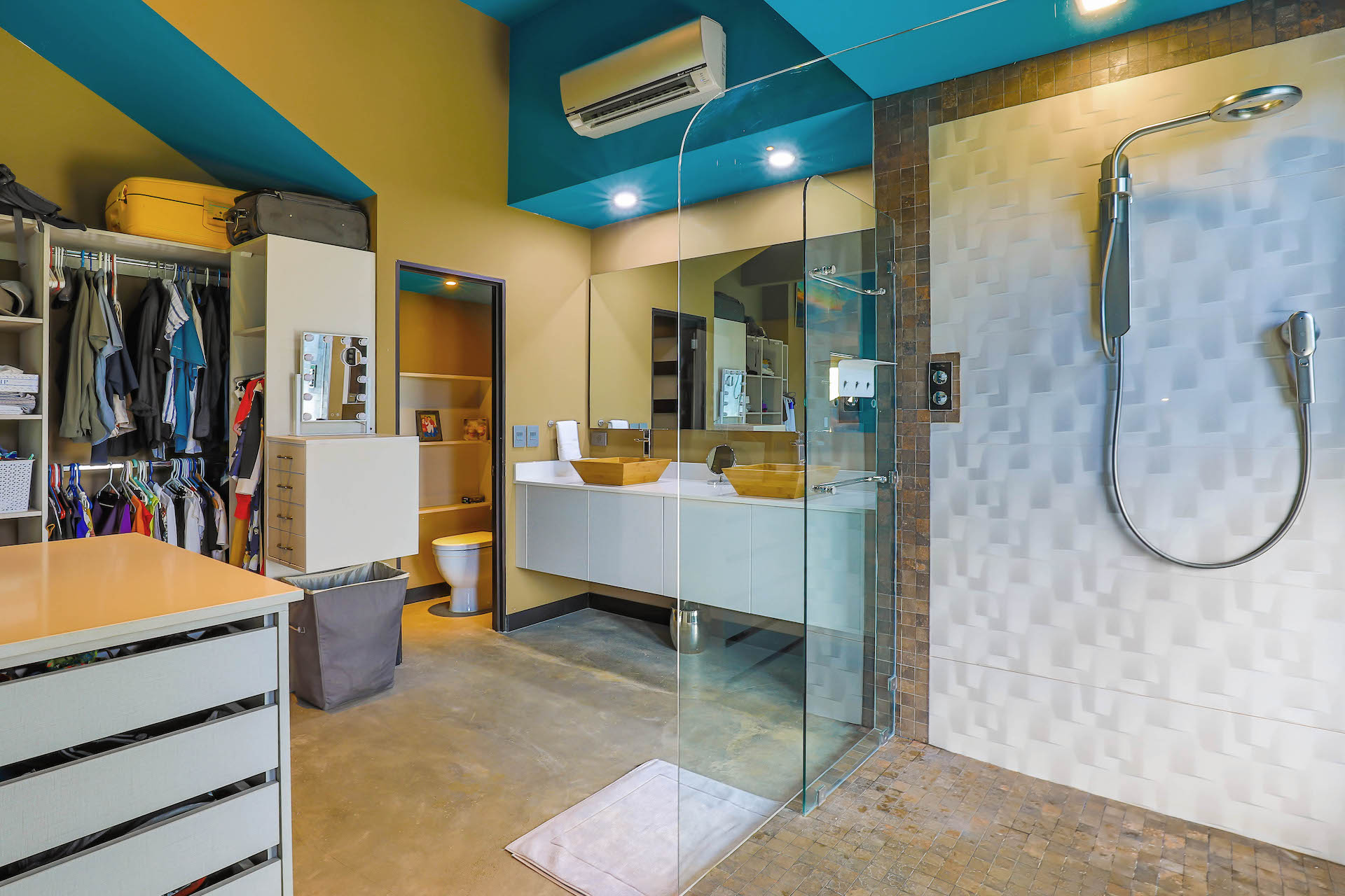 Floor to ceiling sliding doors opens fully the interior to the exterior for that cherished indoor/outdoor living experience common to Costa Rica. And when you are ready for bed the openness is completely transformed with remote-controlled, motorized, and impenetrable rolling security doors that descend from the ceiling to completely and securely enclose the home. Remote controls allow you to lift the walls as you approach the home. The motors are installed behind easily accessible panels.
