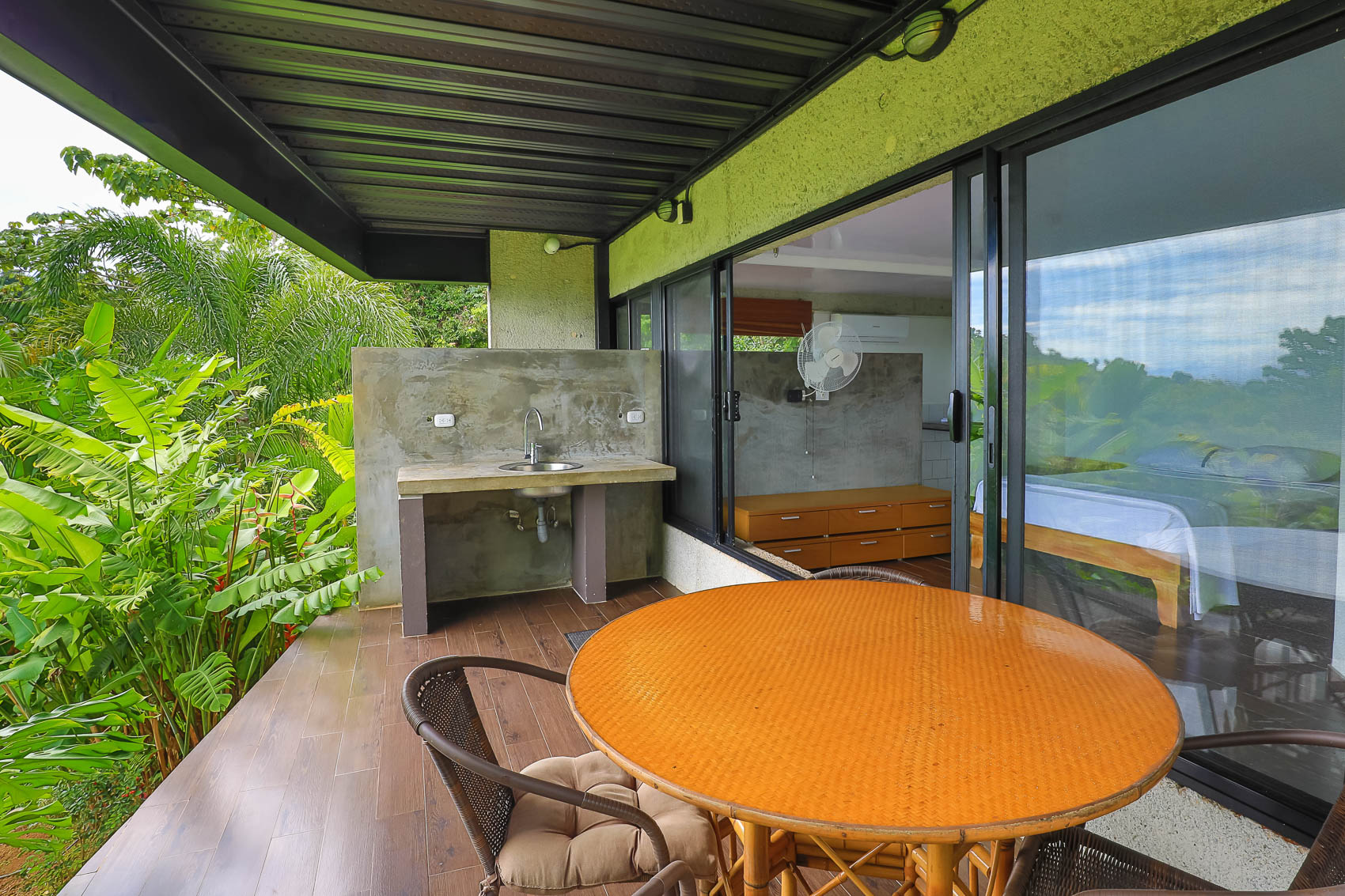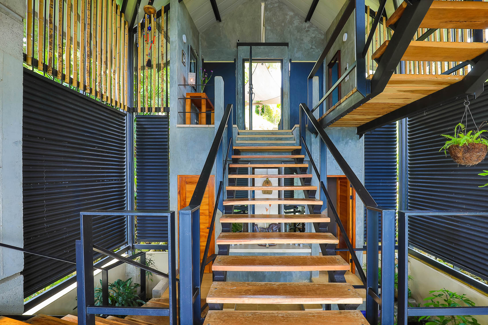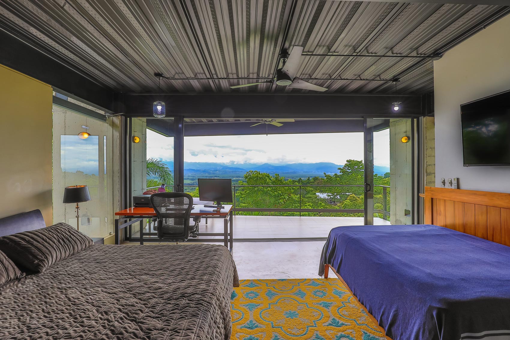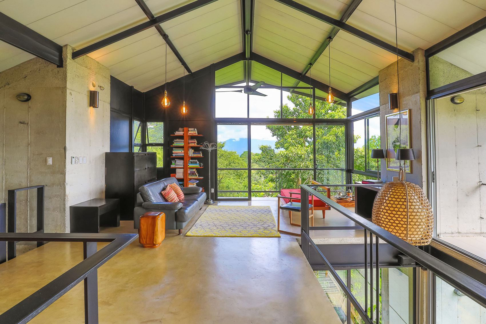 This property is an amazing new offering at an incredible price point for a luxury villa. this 3 bedroom, 3.5 bathroom home is located in the El Salto gated community which offers up spacious lots, all over an acre in size which ensures that each and every property has privacy, wildlife, and serenity, but all within the heart of Manuel Antonio. The home itself is a magical combination of steel, wood, glass, and natural stones which fuses modern lines and architecture with the organic elements of the region and the panoramic mountain, valley, and Ocean views. When you enter the home, beneath the unique rooflines and bridged entrance, you are bathed in natural light and a split floor plan. the upper level is host to one of the master bedrooms, complete with a suite bath and open-air shower, along with a lofted living or workspace with amazing views. The level below hosts the modern kitchen area, dining space, and another living area with the same panoramic views. There is a half bath just off this space as well and the large sliding glass windows allow for seamless integration of indoor and outdoor space.