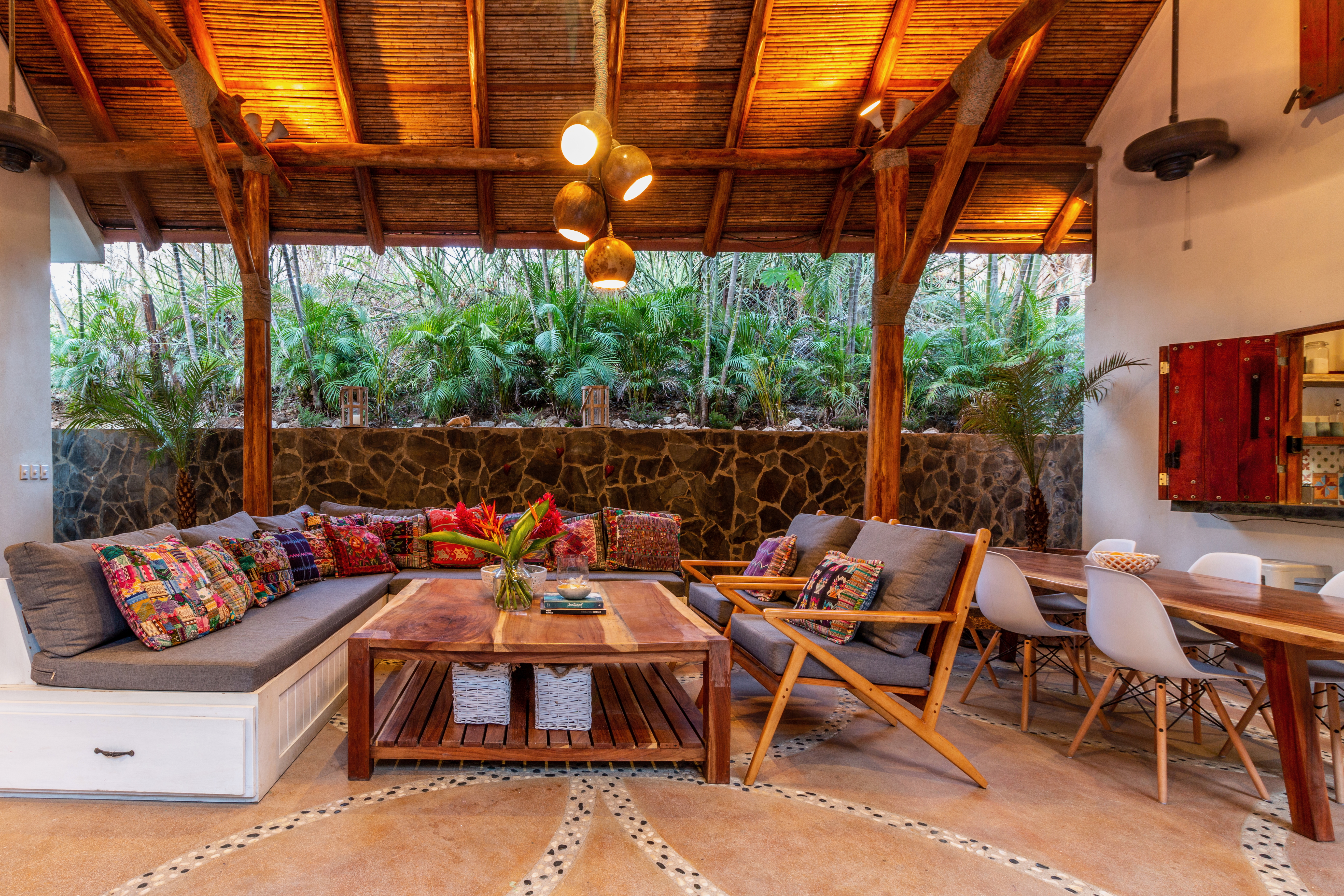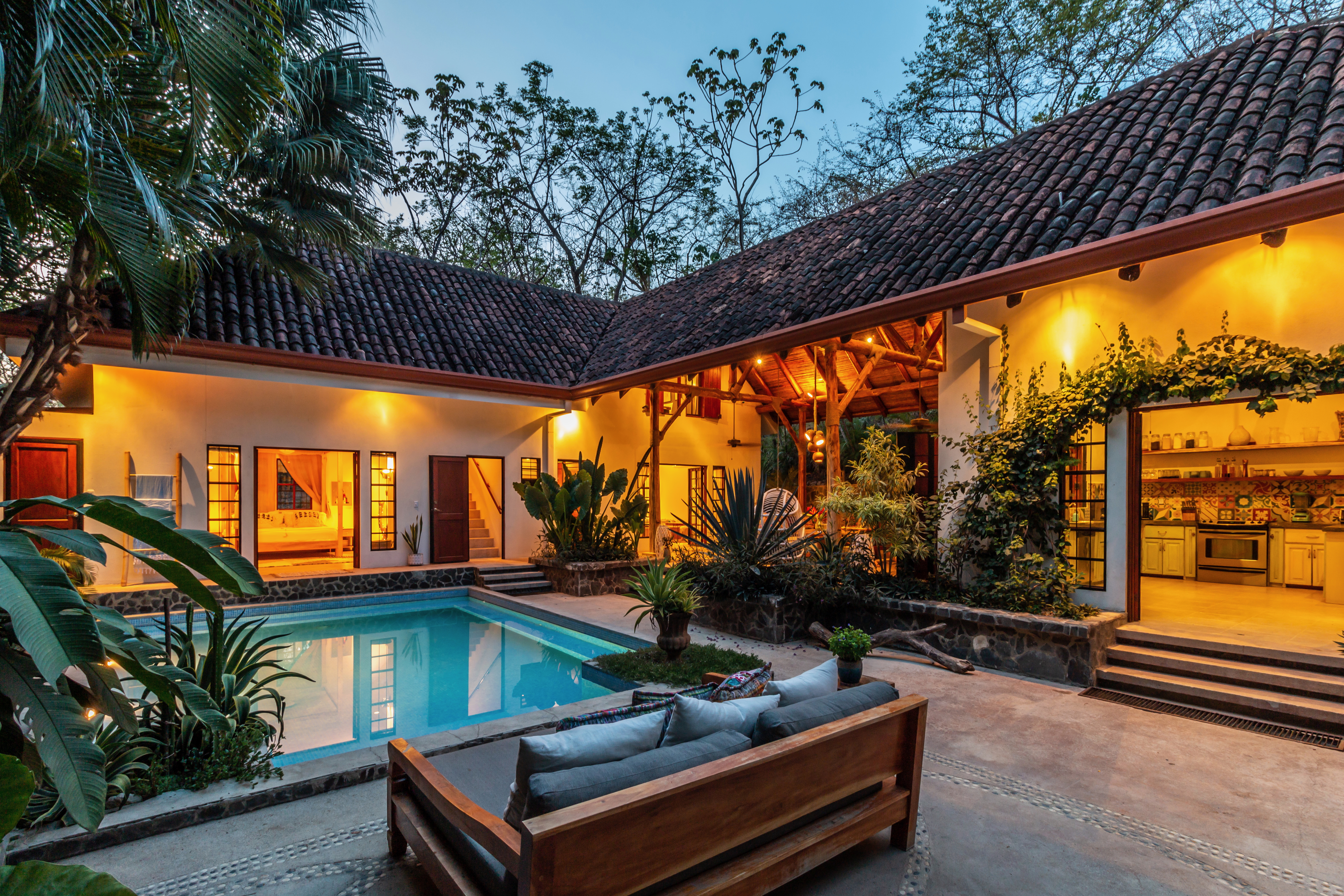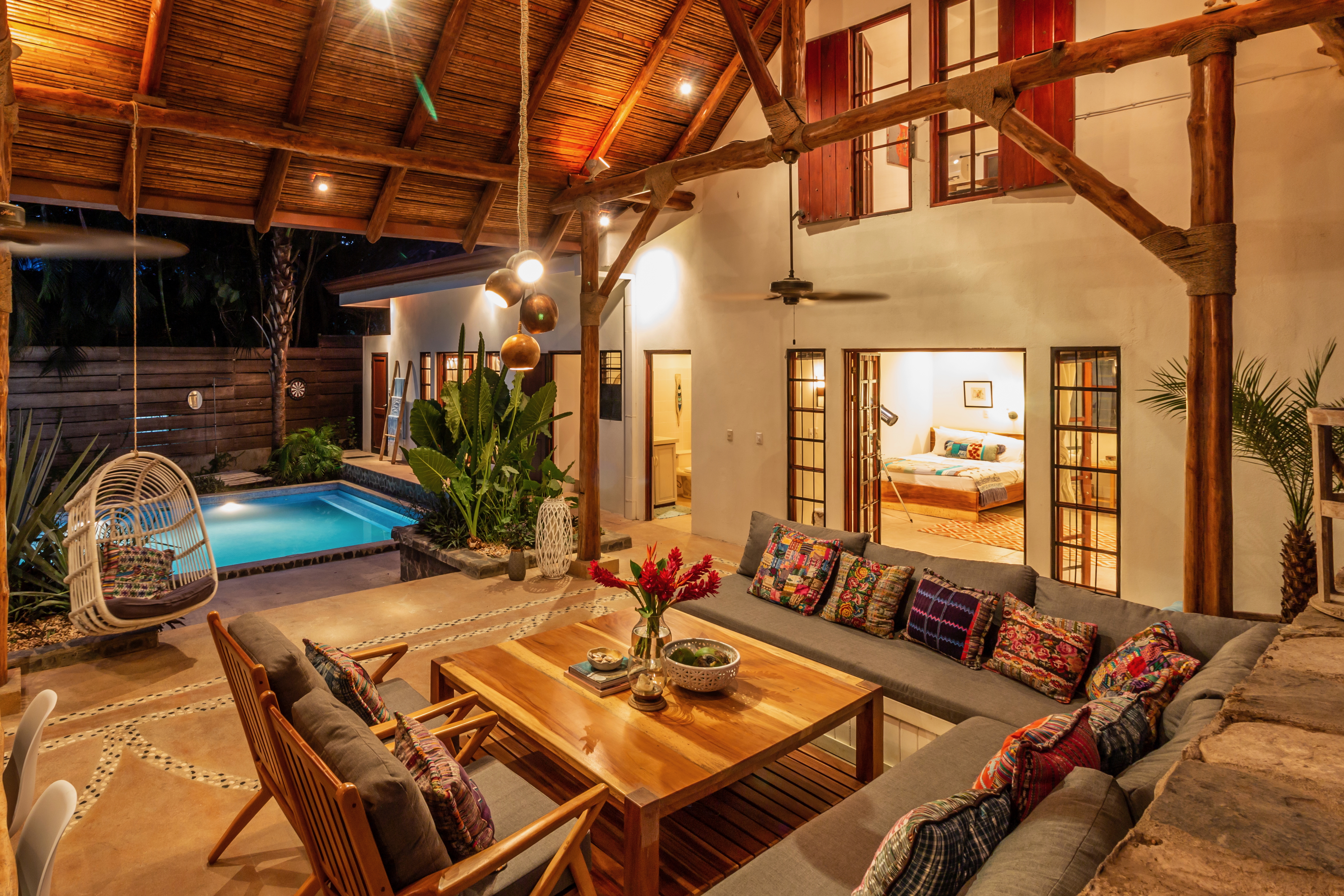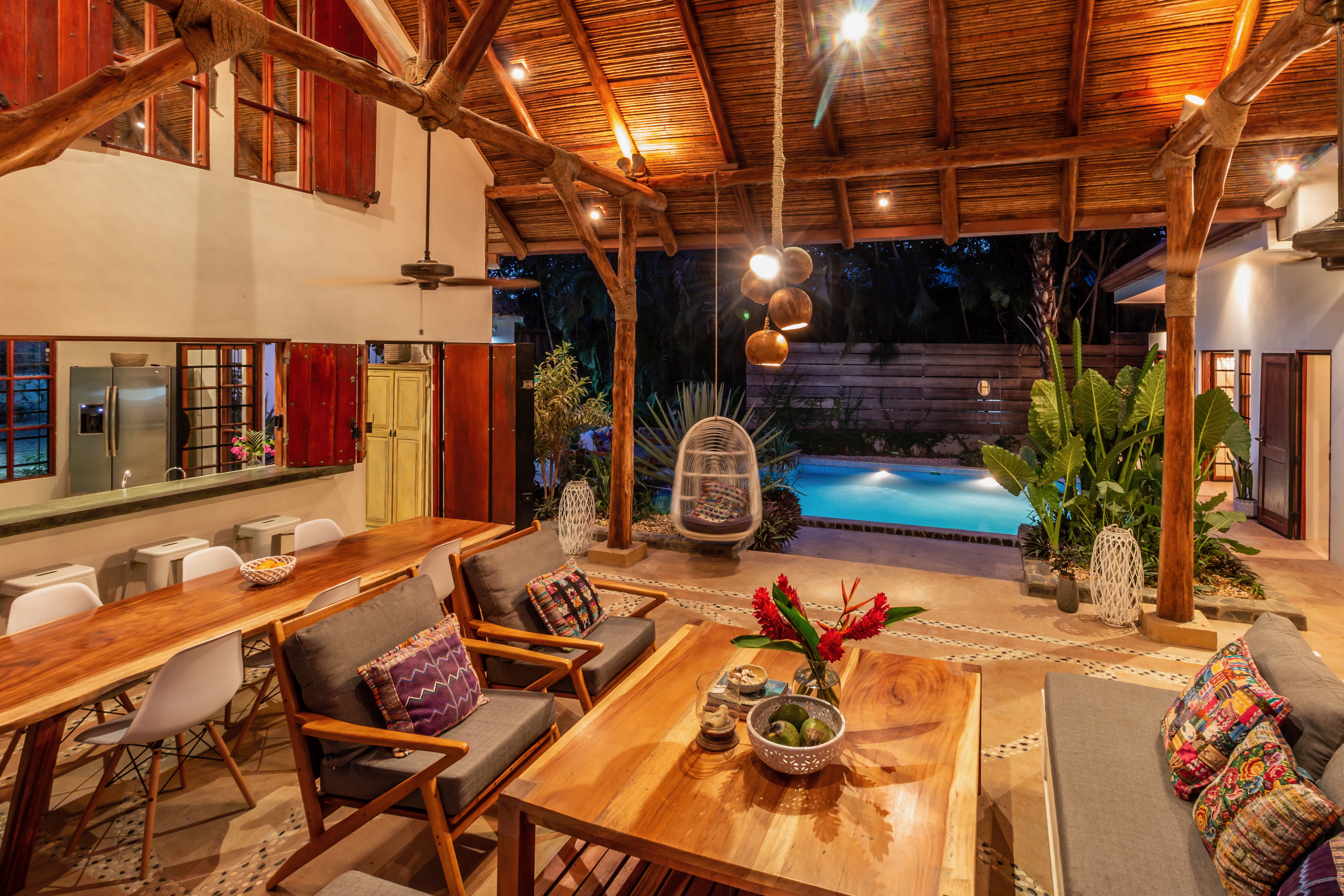Enjoy a unique inside/outside living space in this large Spanish style villa. Nestled within mature palm and mango trees, the villa offers an intimate and private space. Spend your days by the pool or under the shade of the open air palapa, where a large outdoor lounge and dining area awaits you. Listen to birdsong or the howler monkeys while relaxing after a surf or a yoga class at one of the many studios in the area.
