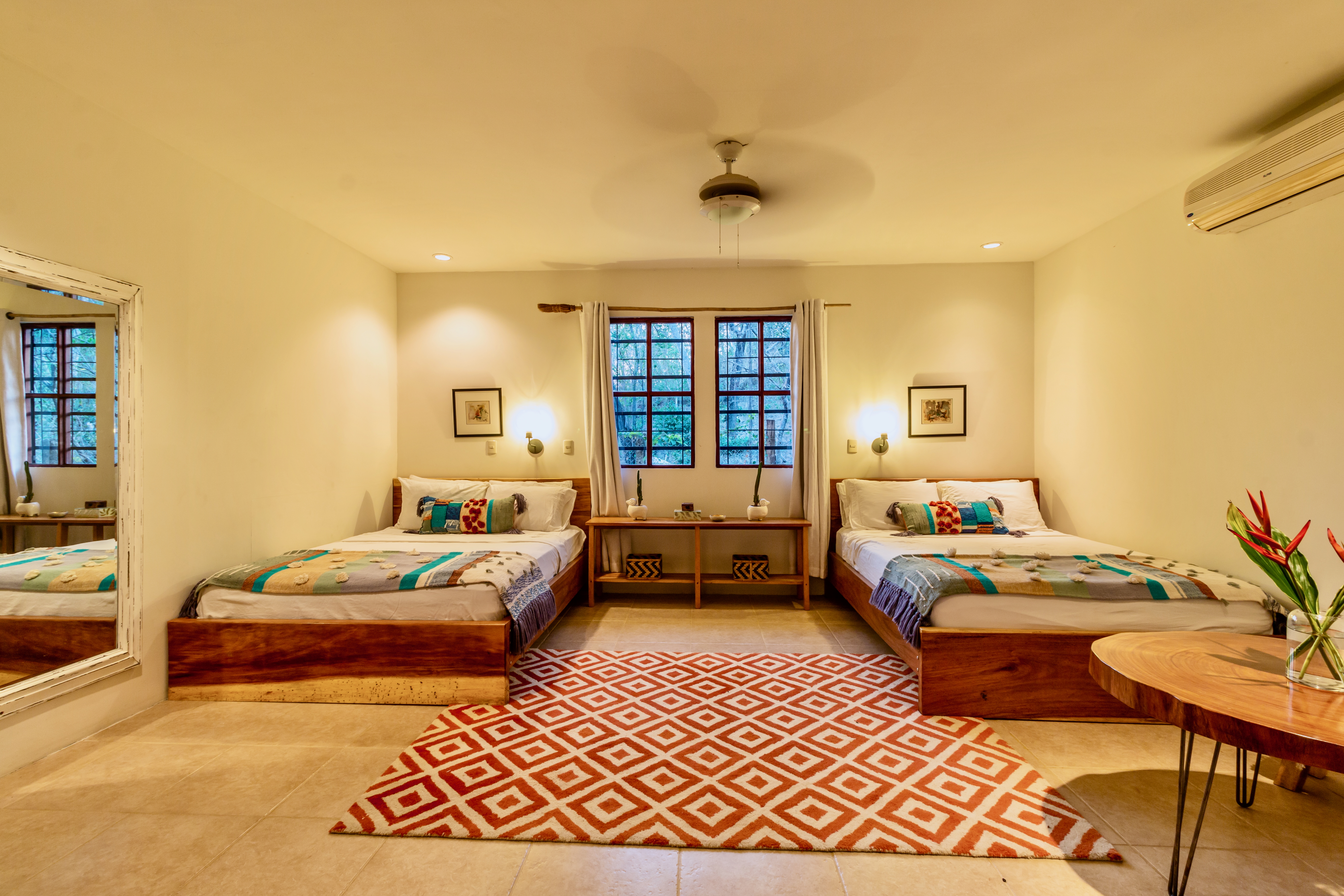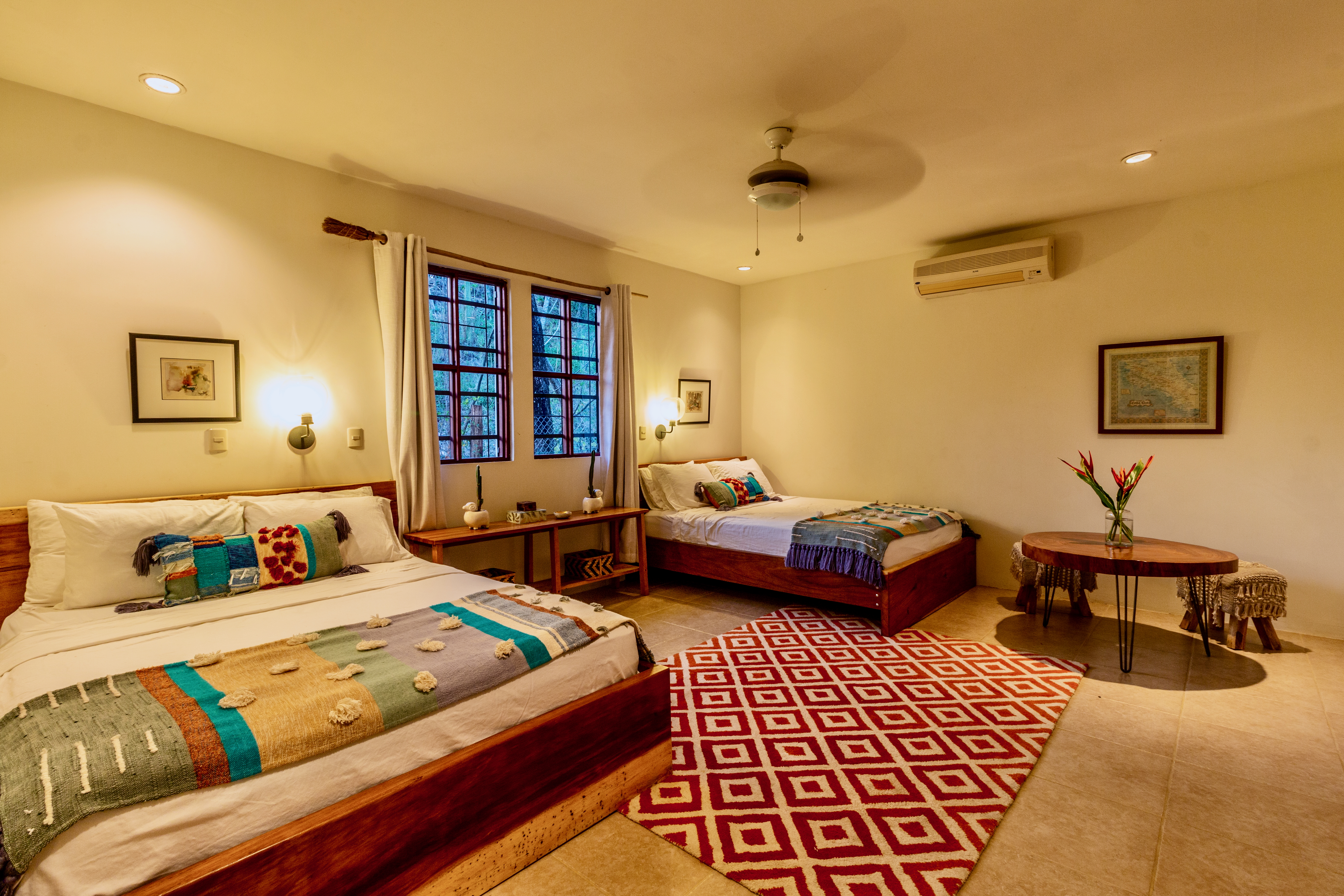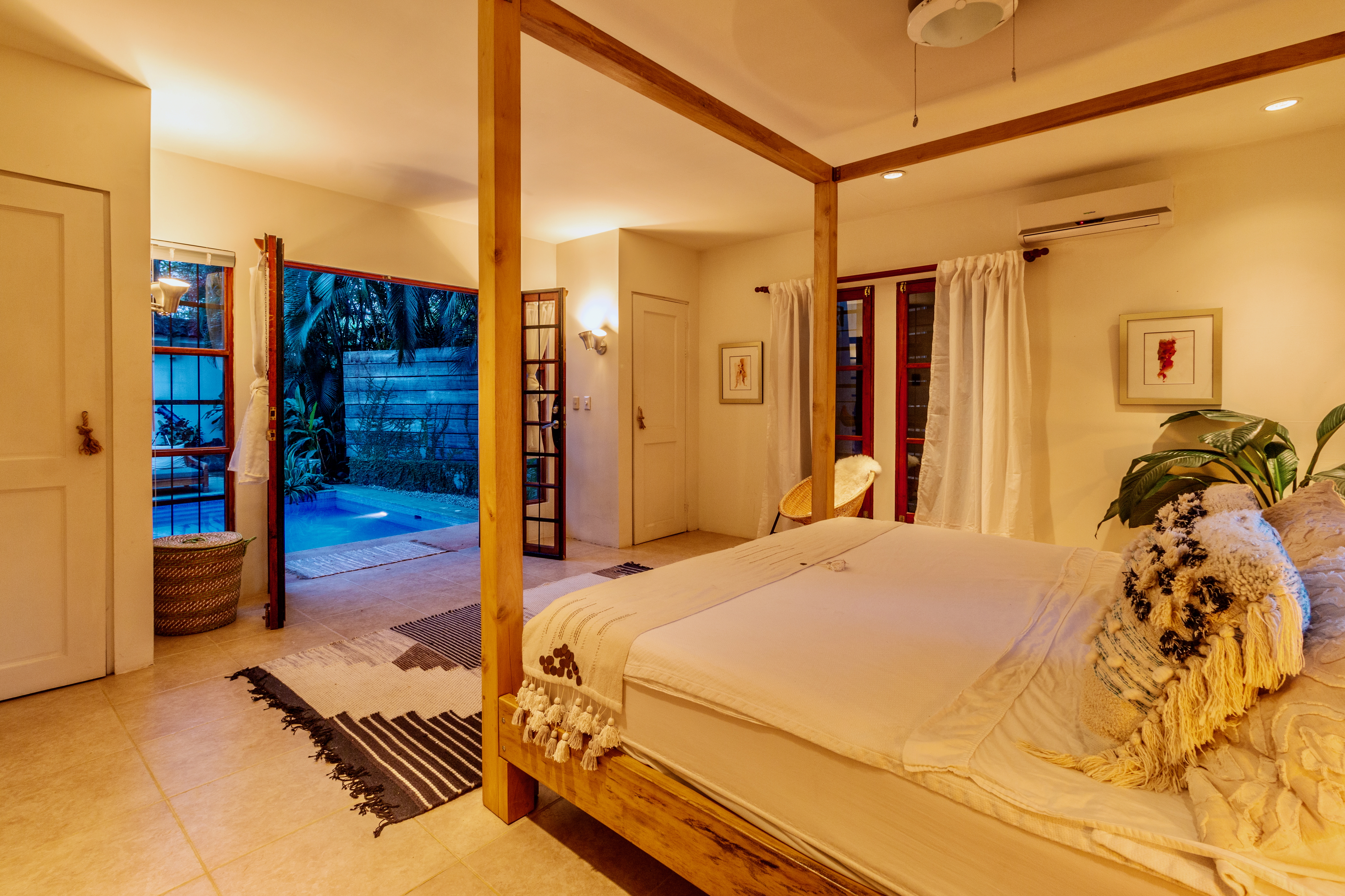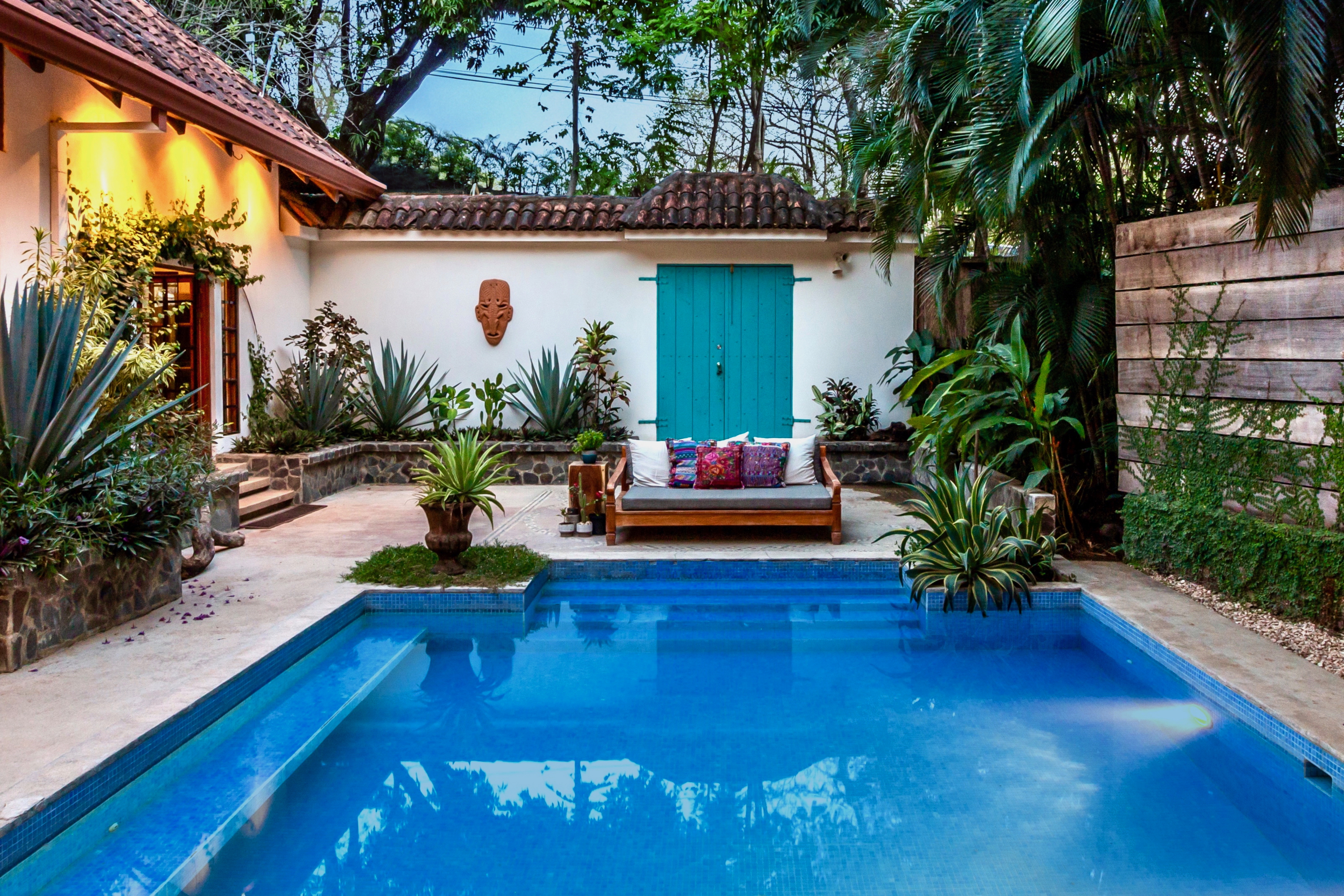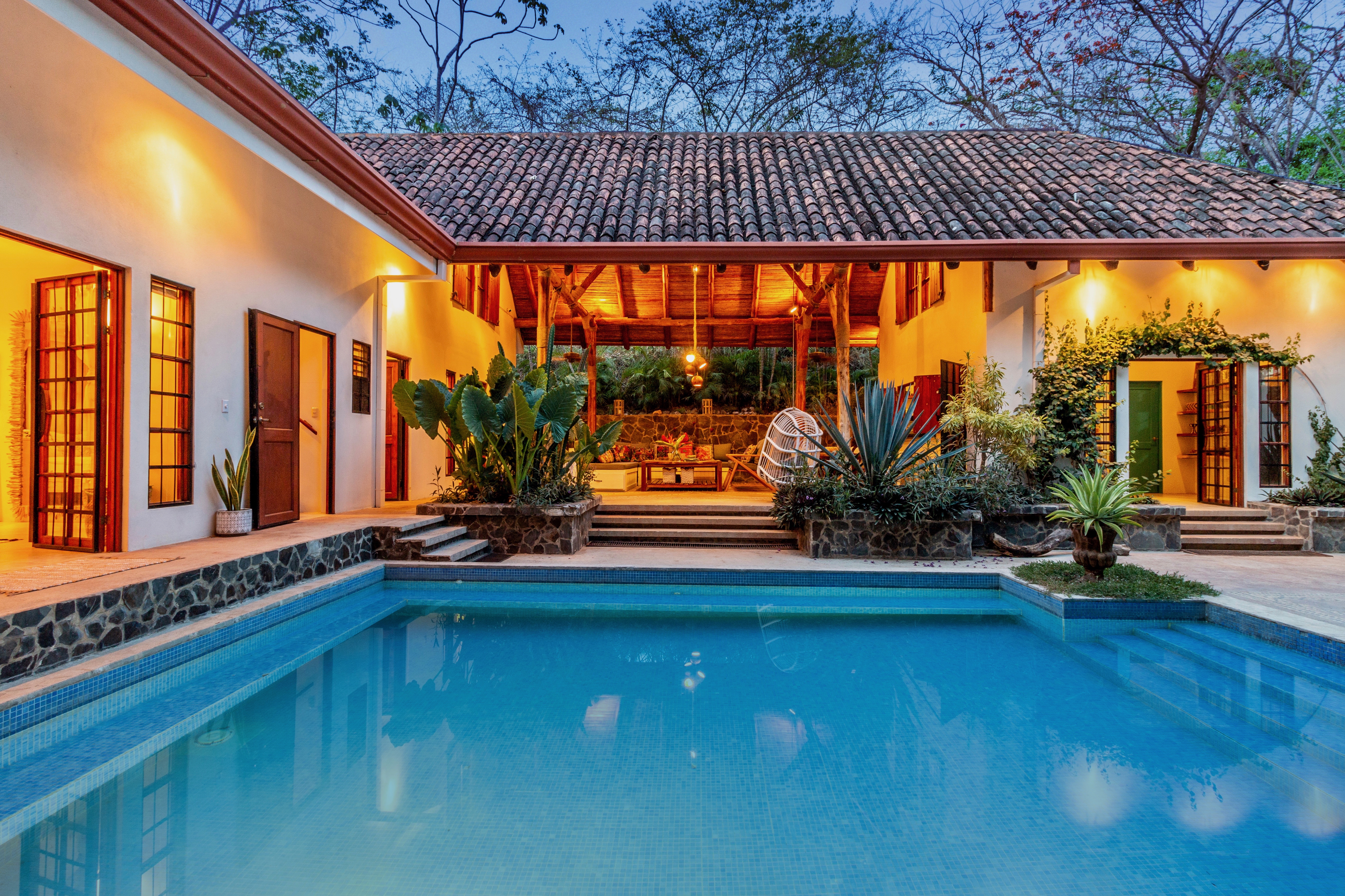 Enjoy a unique inside/outside living space in this large Spanish style villa. Nestled within mature palm and mango trees, the villa offers an intimate and private space. Spend your days by the pool or under the shade of the open air palapa, where a large outdoor lounge and dining area awaits you. Listen to birdsong or the howler monkeys while relaxing after a surf or a yoga class at one of the many studios in the area.