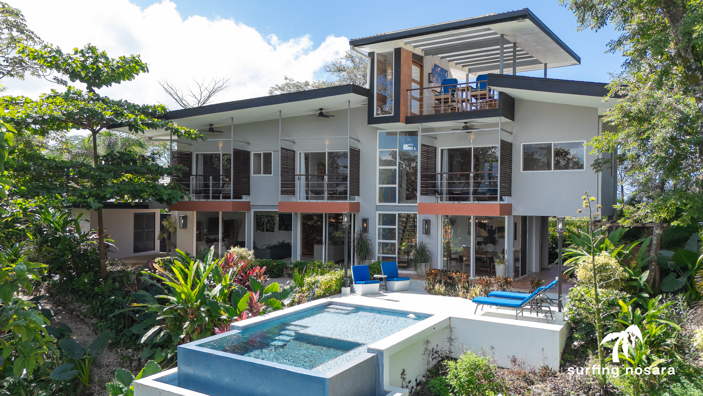 Set high above the canopy, this residence sits along a protected natural reserve and opens to sweeping ocean and mountain views along with cooling breezes. The setting feels peaceful, private, and deeply connected to nature. The home offers three spacious ensuite bedrooms, each with a private balcony. A completely private infinity pool overlooks the preservation area and creates a serene retreat surrounded by greenery. Inside, the open living spaces feel bright and airy, with large windows that bring the outdoors in and frame the landscape from nearly every room. A third-floor sky lounge captures dramatic sunsets and wide open sky views, adding a luxurious place to unwind. A short three-minute walk brings you to Lagarta Lodge, where exceptional dining and a full spa elevate the experience even further. The beach is only minutes away, making the location both convenient and peaceful within a quiet residential area.