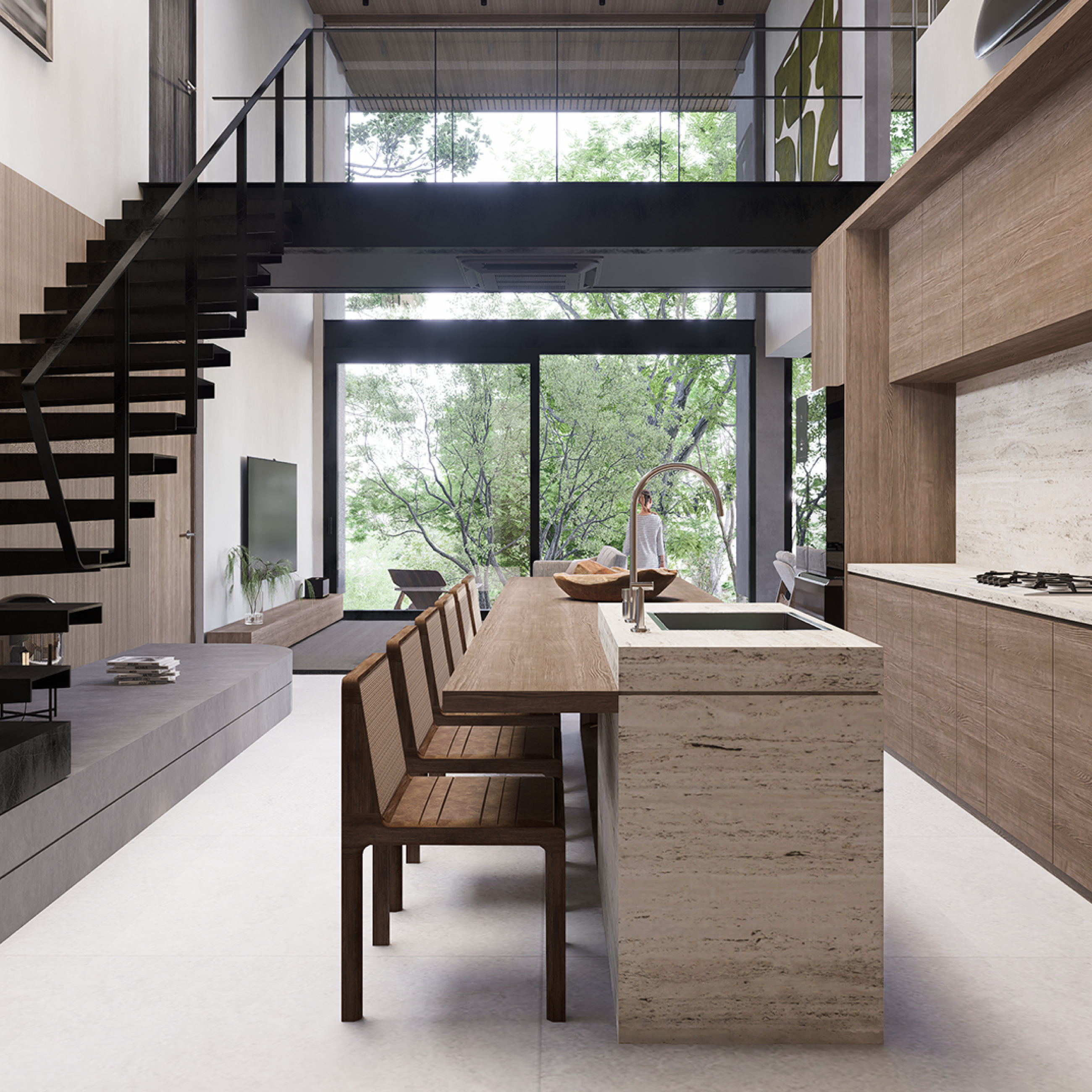 The philosophy behind Casa Iki emphasizes balance, functionality, and serenity. Thoughtfully arranged spaces create a sense of calm, using geometry to integrate seamlessly with the landscape while fostering a connection to nature. The home reflects Shift’s vision of a space where sophistication meets nature. Every detail is crafted to provide a lifestyle rooted in elegance, sustainability, and a deep connection to the environment—inviting you to experience a balanced and intentional way of living.