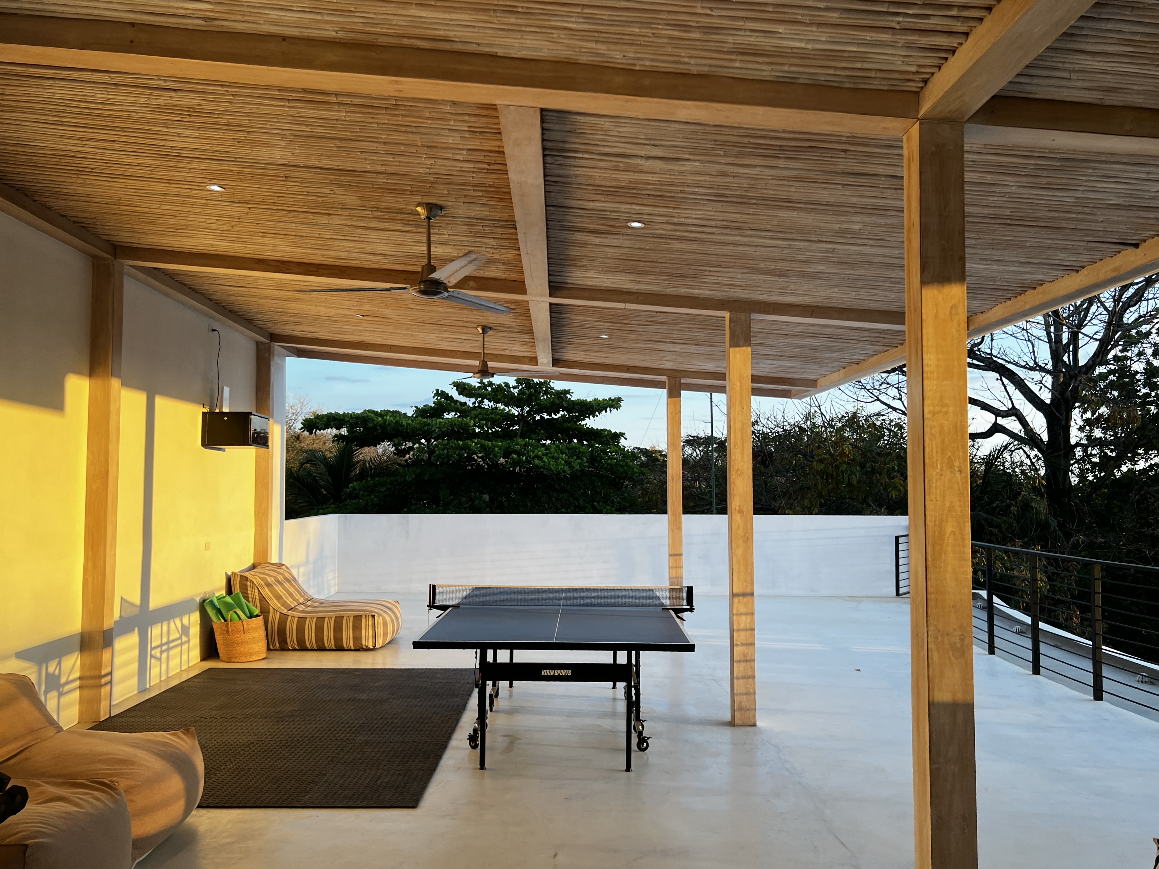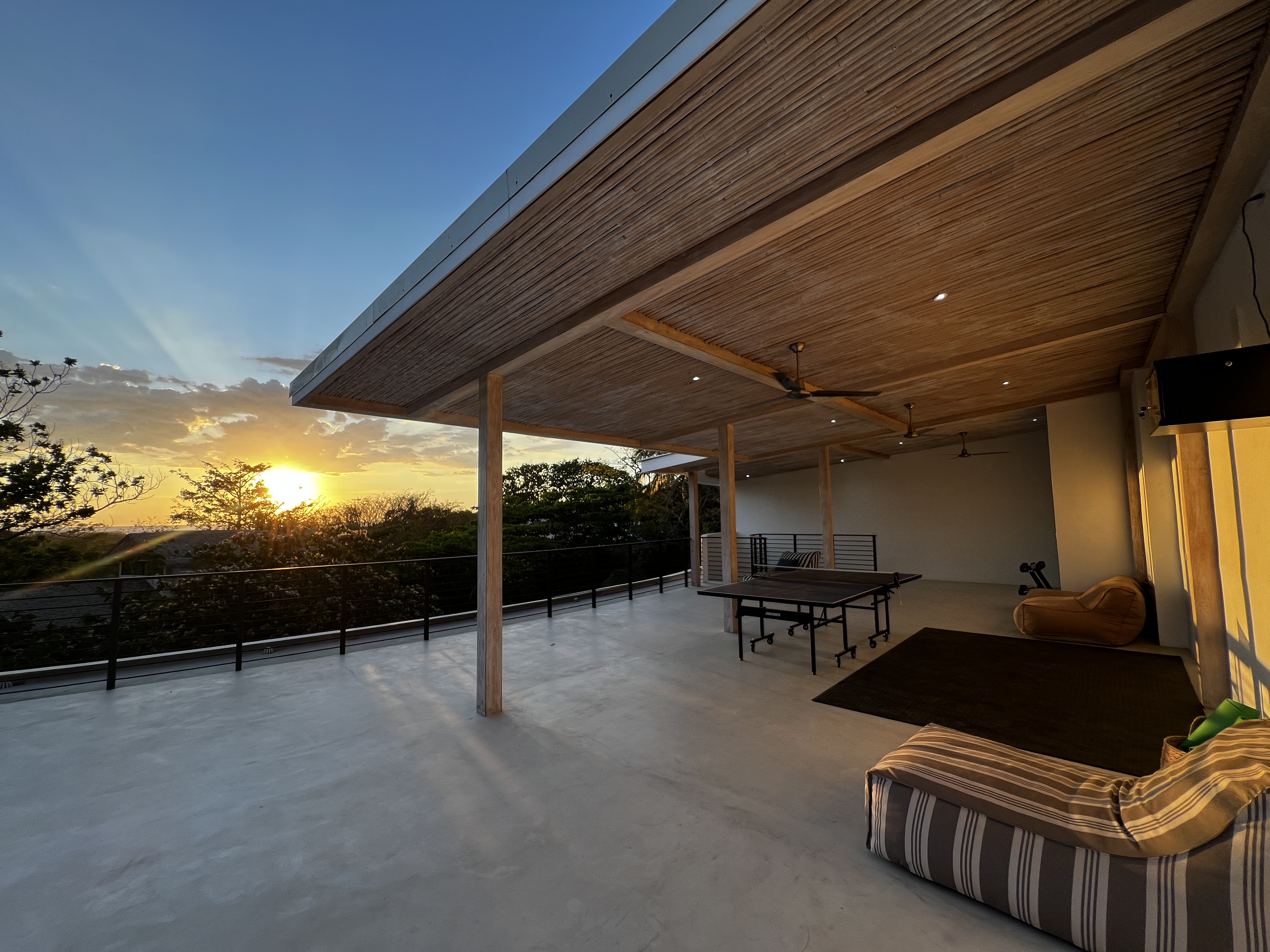 The crown jewel of this home lies on the top-floor ocean view terrace. This expansive space is perfect for morning yoga sessions, ping-pong matches or simply relaxing with a glass of wine as you take in breathtaking sunset views over the lush canopy. It’s the ideal spot for memorable evenings with friends, creating lasting memories in your own private escape.