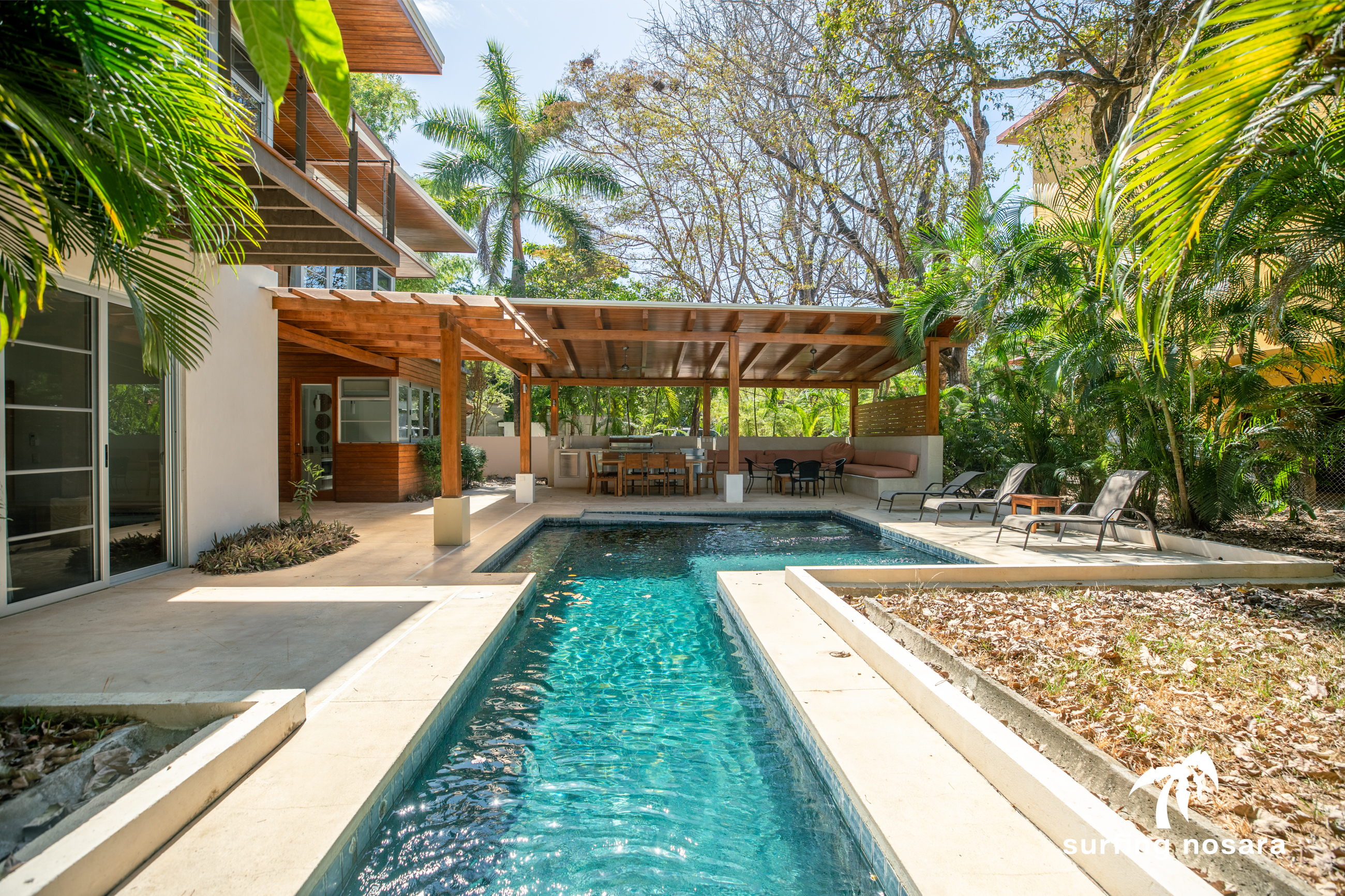 Location! Casa Nueva Vida is the perfect property for those wanting to be walking distance to the beach. Less than a minute to the beach path, you will have your toes in the sand in a 3-minute walk from the front door. This modern style build has a solid rental history, providing both a great investment as well as a perfect family home. With 3 bedrooms and 3 bathrooms and a very open concept living area design, there is room for all to enjoy. The property comes fully furnished and ready for you to enjoy. The pool and patio area brings it up another level, providing expanded living area, a fantastic workout patio, or room to relax for those wanting a more leisurely day. While close to everything, the property sits well back from the road, providing privacy and quiet. This location cannot be beat as it sits in the heart of North Guiones, meaning it is just minutes to walk to the best restaurants and amenities. Email for more information or to set up a private showing.