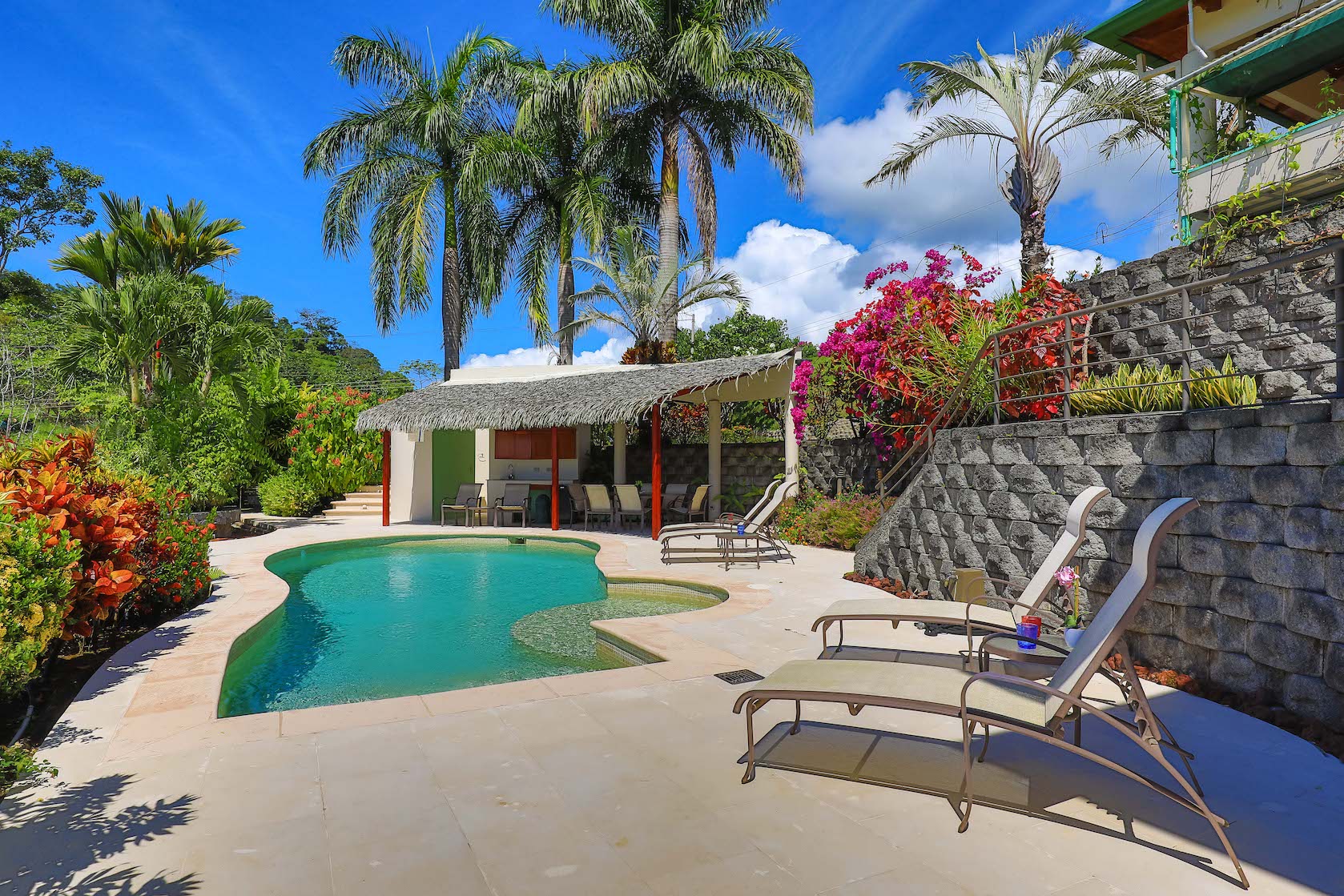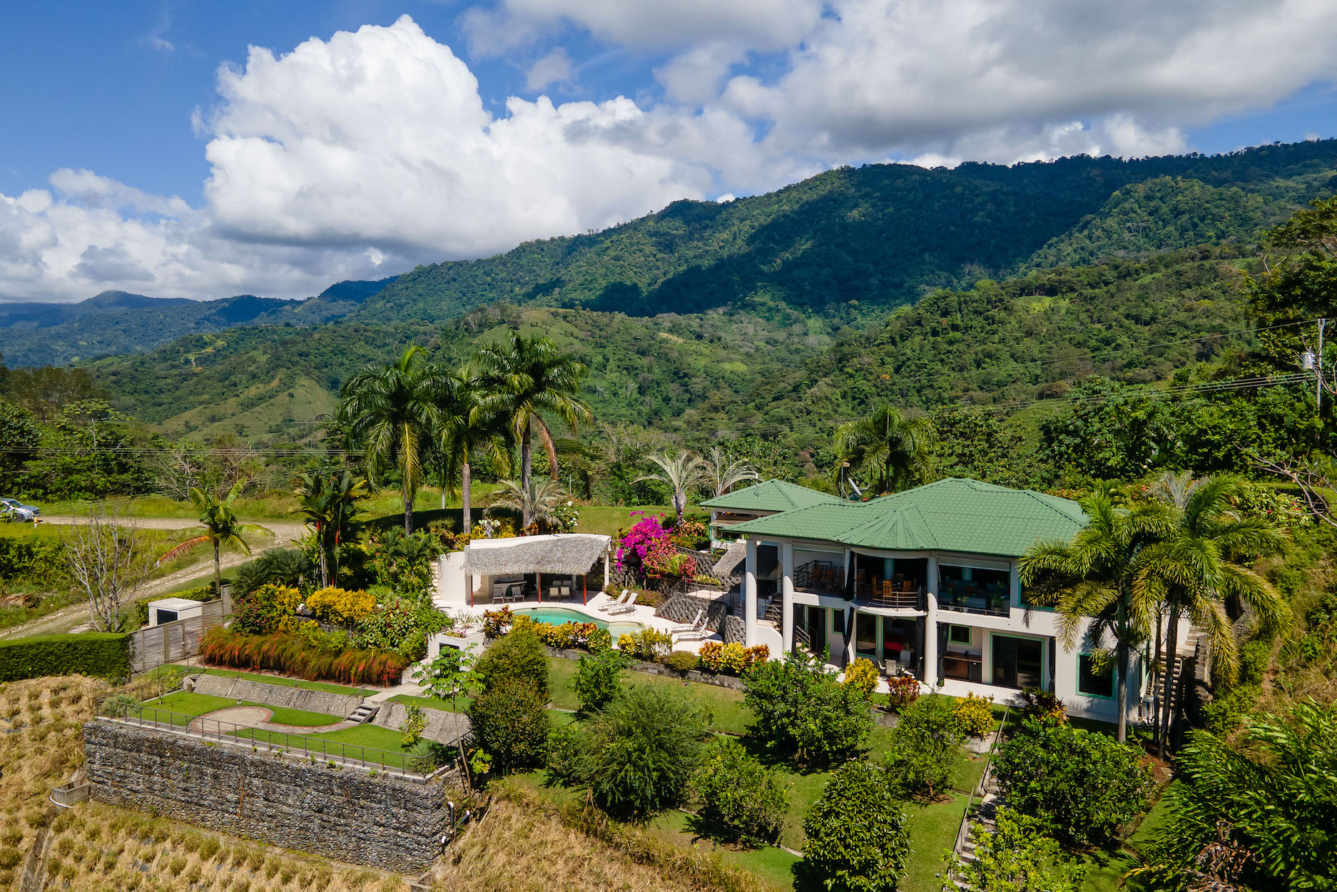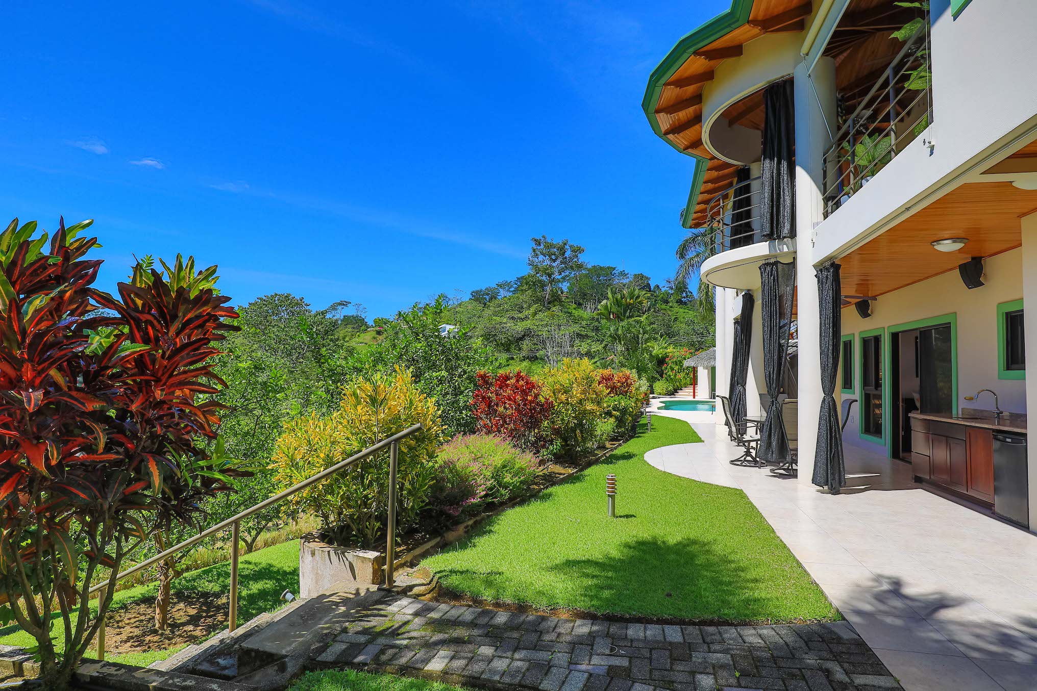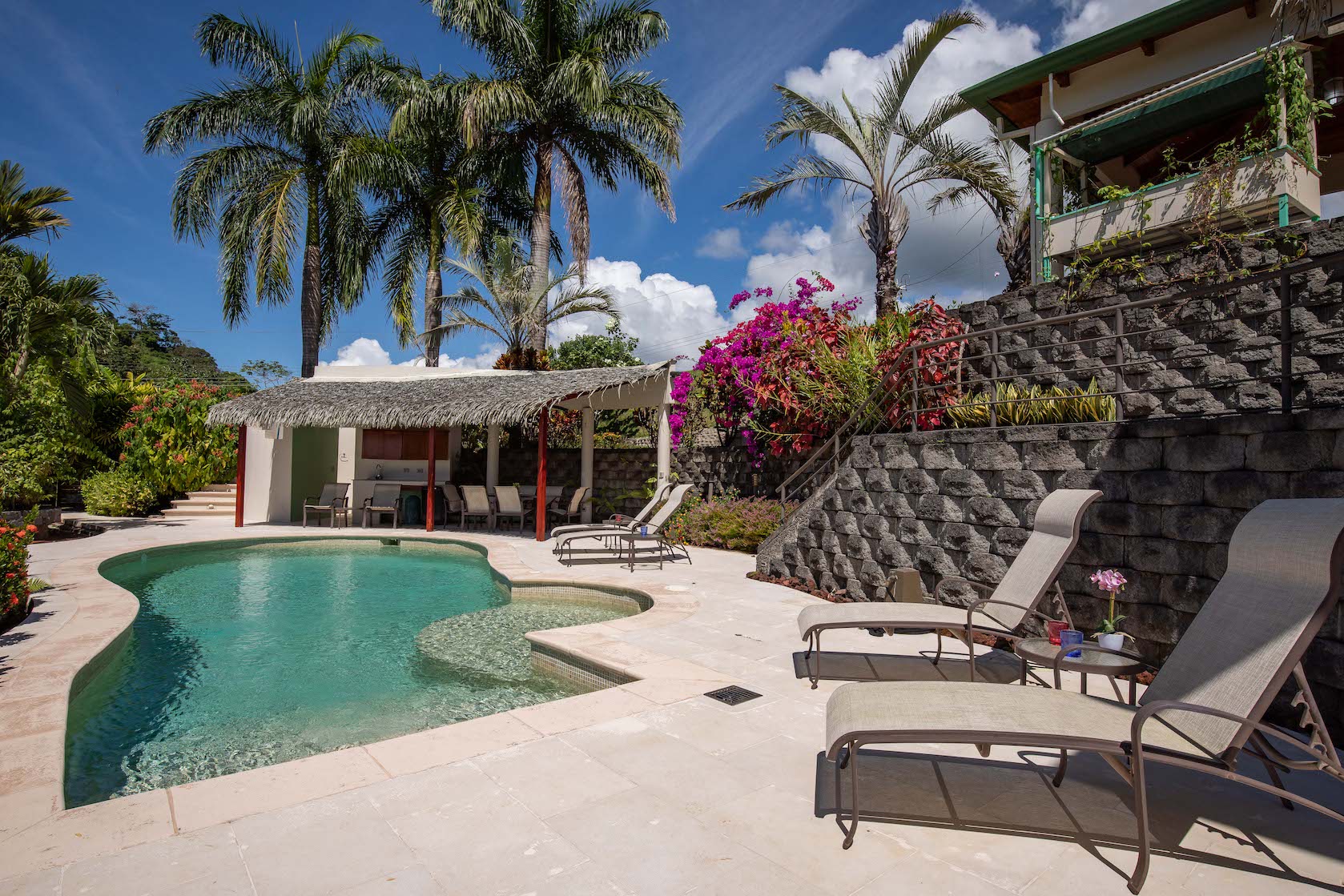 The immediate area is covered by a tropical rain forest which attracts the famous Costa Rican wildlife - colorful birds, scarlet macaws, toucans, parrots, monkeys and beautiful Blue Morpho butterflies (amongst many others) these will be your new neighbors! Currently the beautiful Montezuma Oropendola birds have built their hanging nests in giant Royal Palms which surround the house.