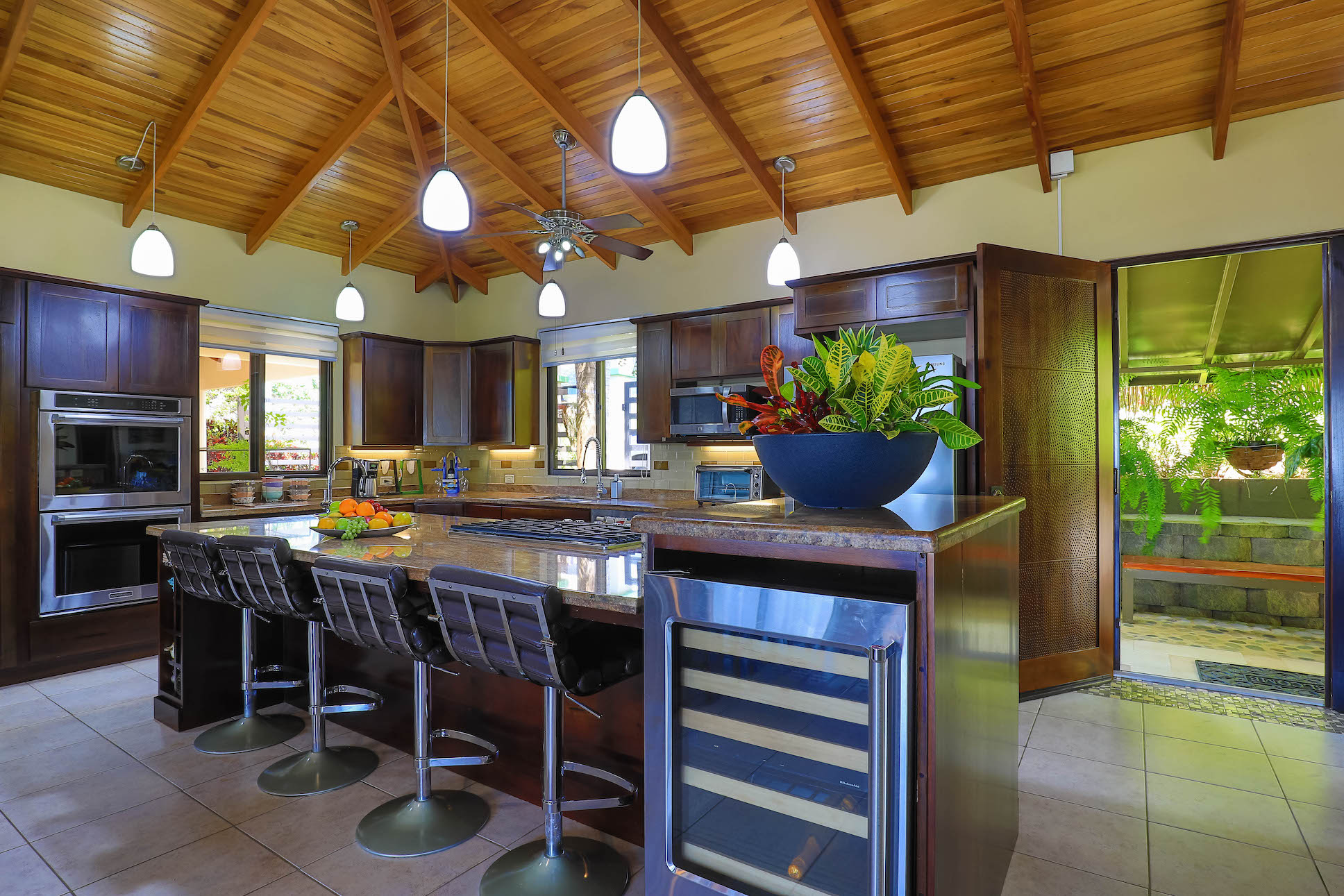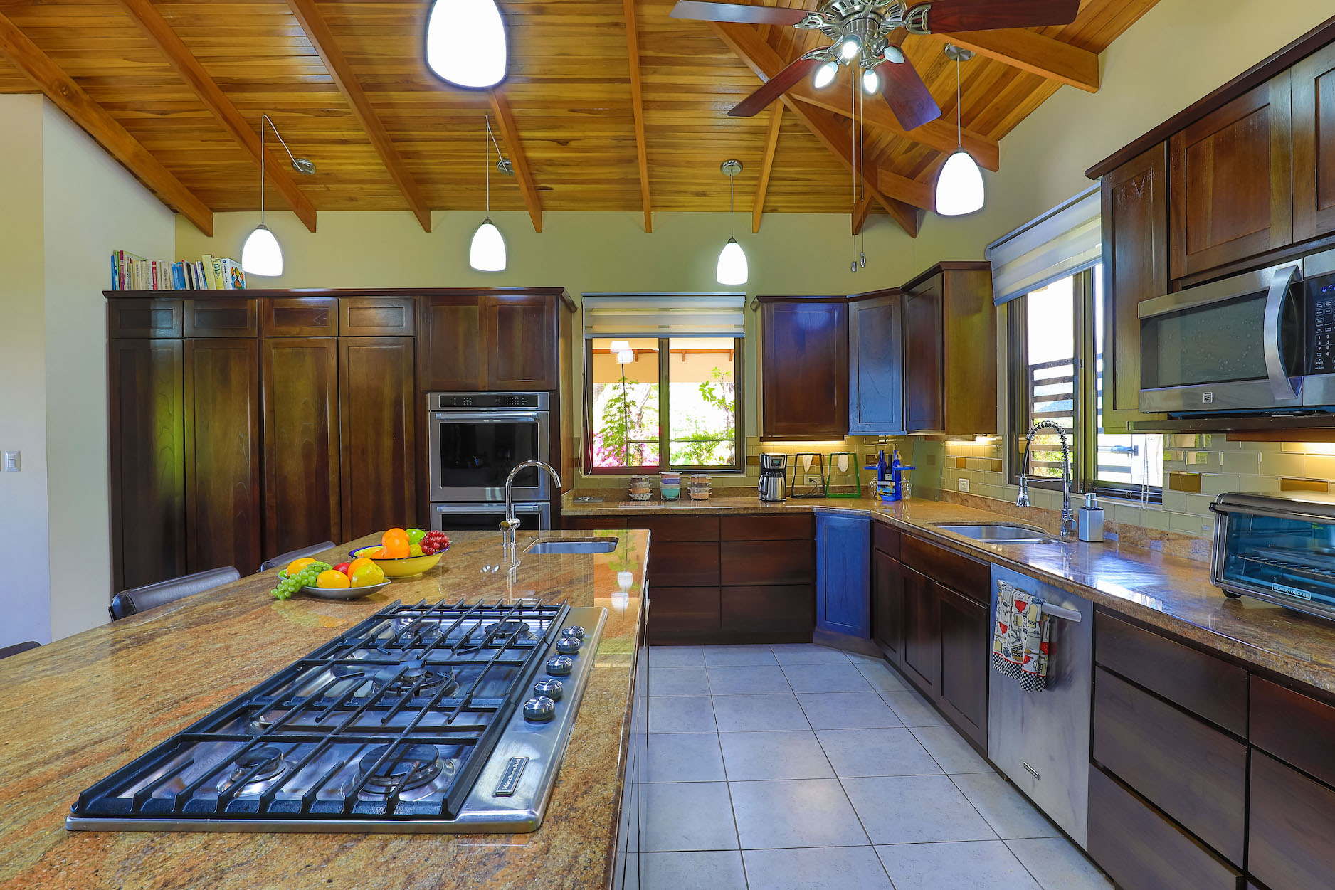 Beautiful mountain and ocean views project from every part of the kitchen and living room.