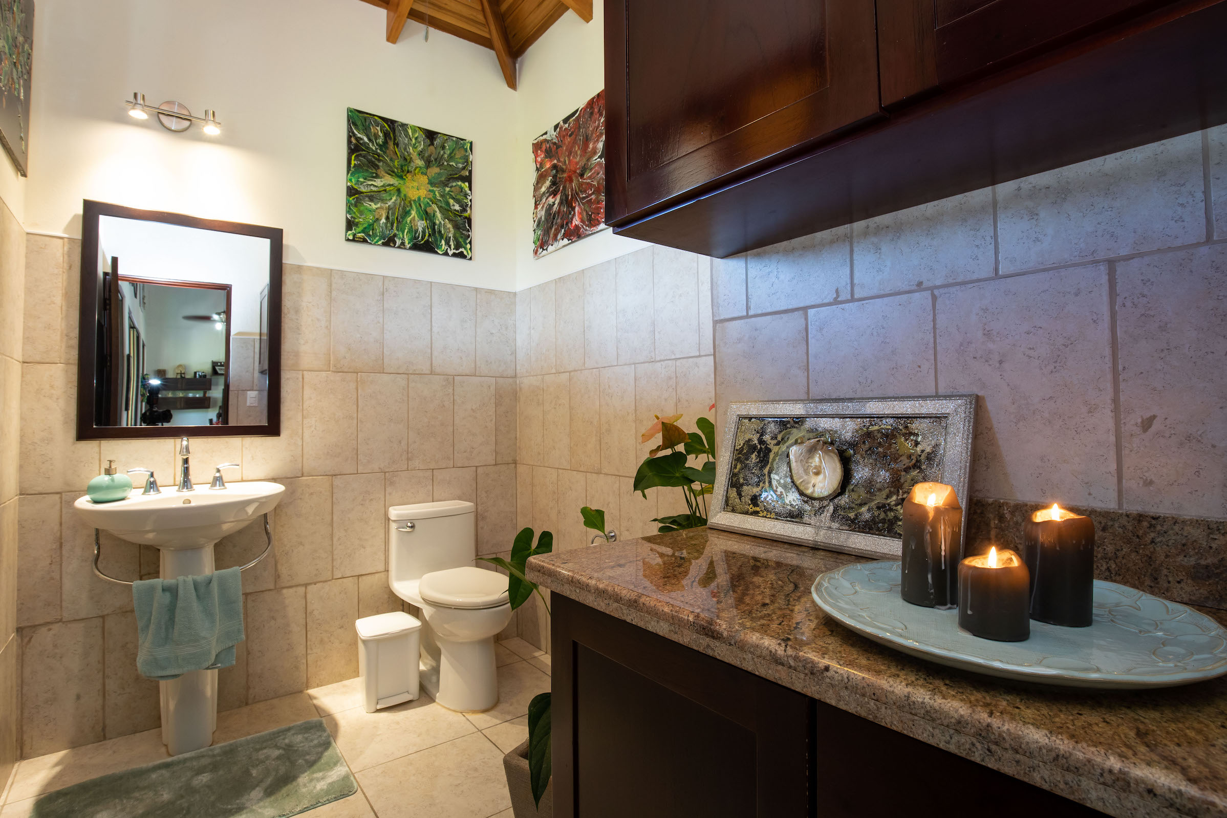 Walls throughout the house are decorated with art painted by the owner, the purchase of which can be negotiated - with more available from the owner’s collection, if desired.