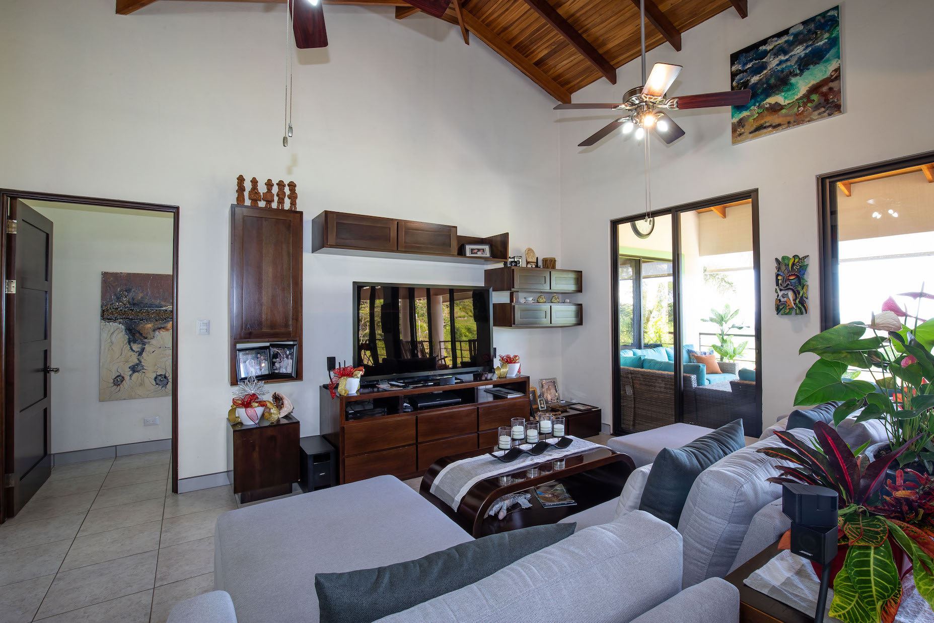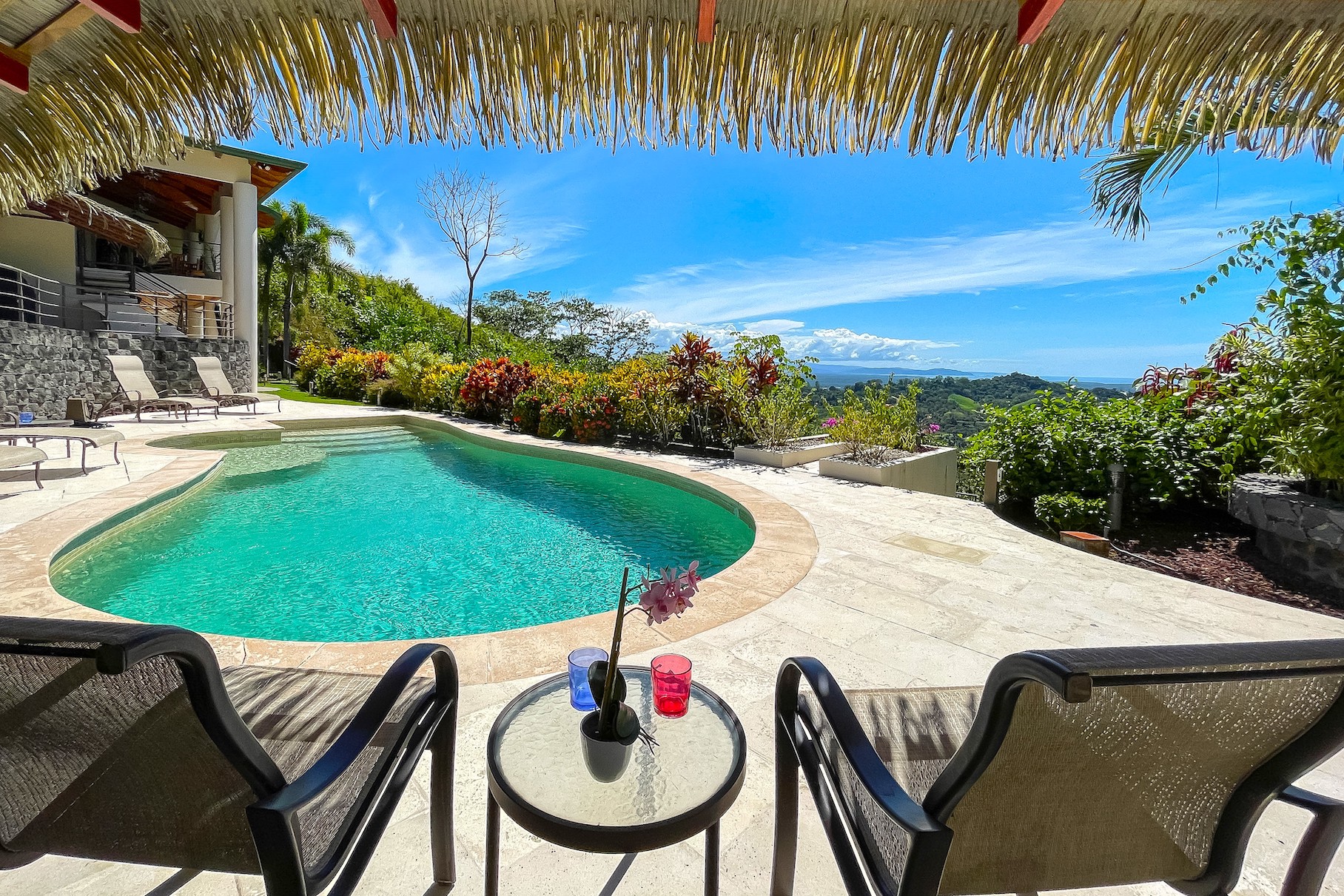 The property sits inside the most attractive location in the Chontales area, accessed through a beautifully designed masterpiece gate. This beautiful home showcases an individual and fresh architectural design where modern luxury and traditional touches intertwine to create a relaxing yet elegant home environment, perfectly blended to let you enjoy a natural setting, with stunning panoramic ocean and mountain views, in true comfort and style.