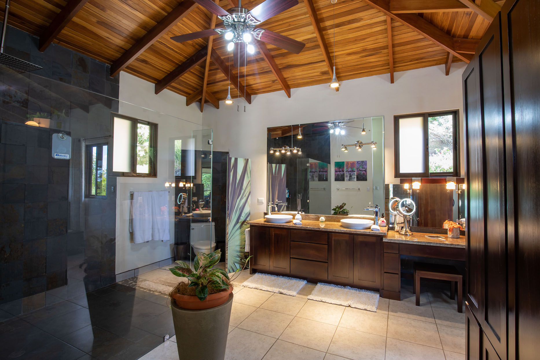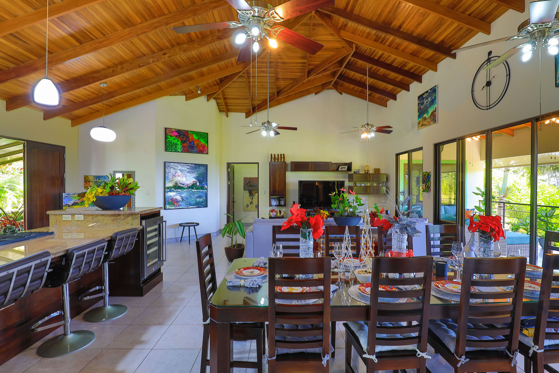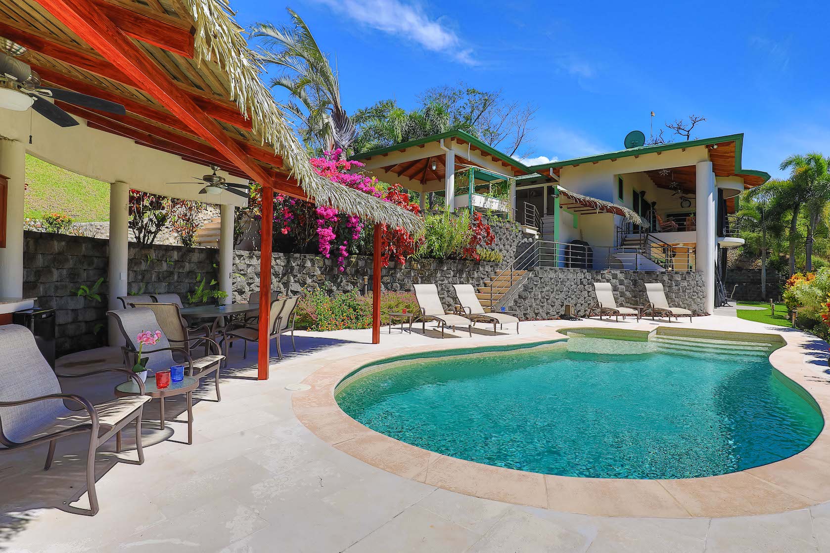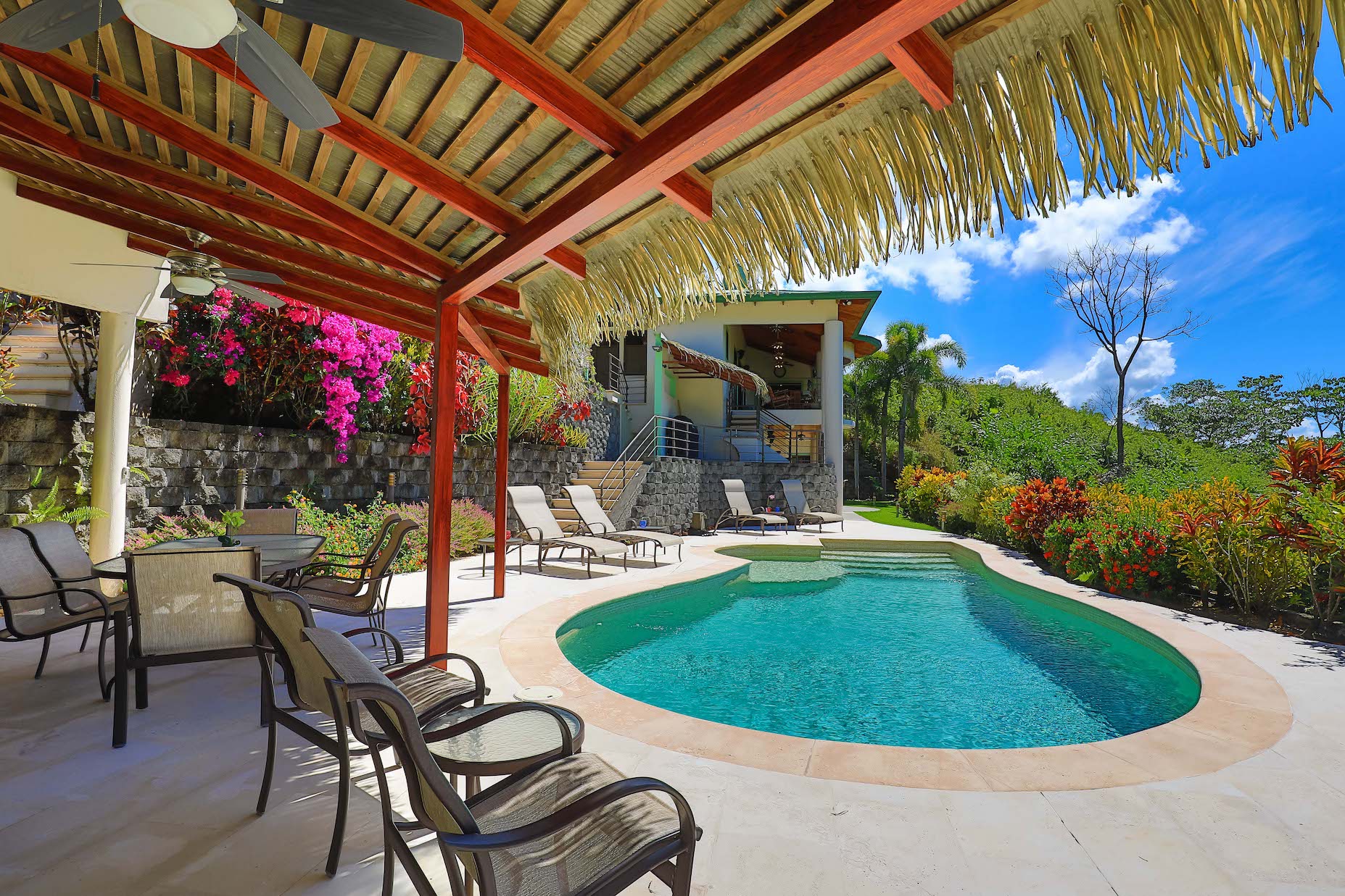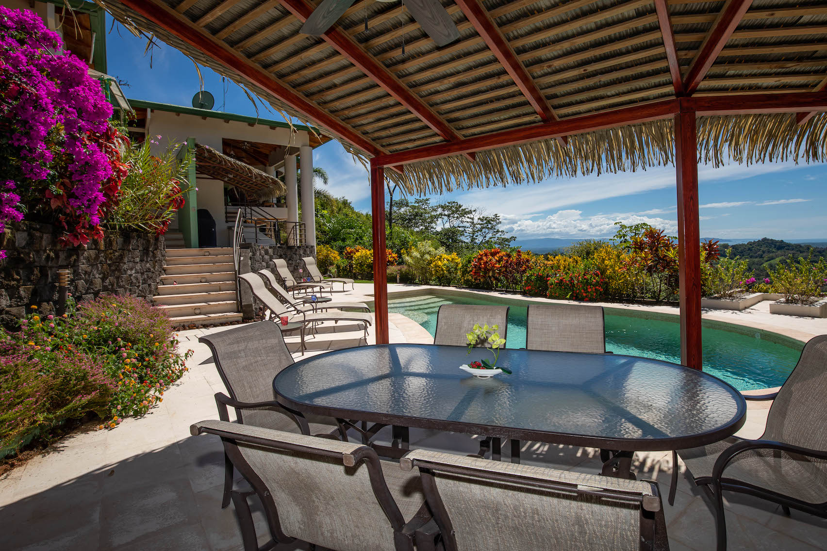 The swimming pool impresses with views of the Pacific Ocean, Cano Island, Osa Pennisula and unforgettable crimson sunsets – this will invariably attract owners and their guests to indulge in a refreshing dip. The oversized pool terrace includes a covered ranch with a kitchenette, a full bathroom, and a dinning table.
