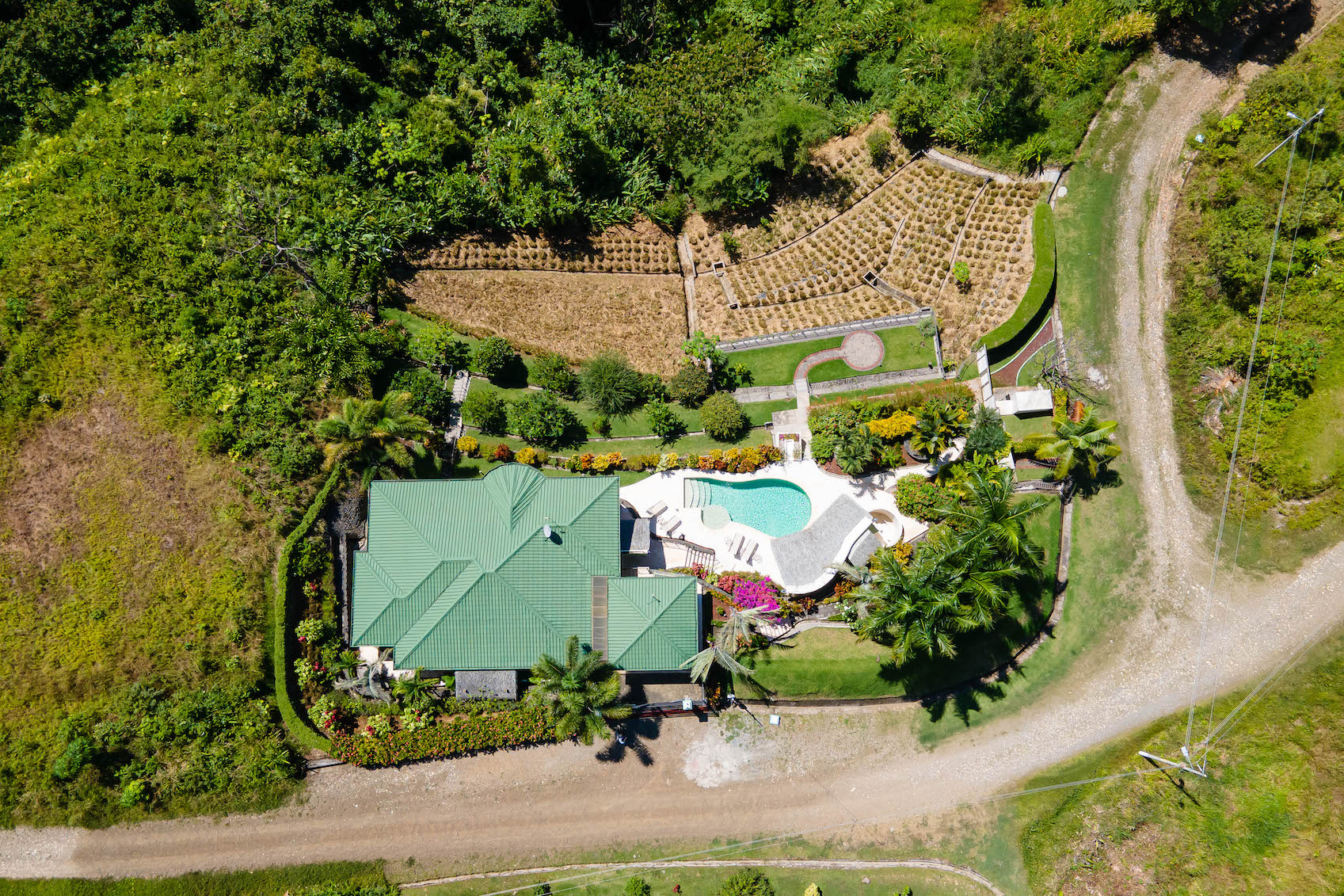 The bountiful gardens hold many blooming bushes, orchids, jungle plants and trees producing delicious tropical fruits. On the opposite end of the property there is a nice flat area which could be used to build a guest house, gazebo, jacuzzi, a yoga platform, or many other amenities – you are only limited by your imagination!