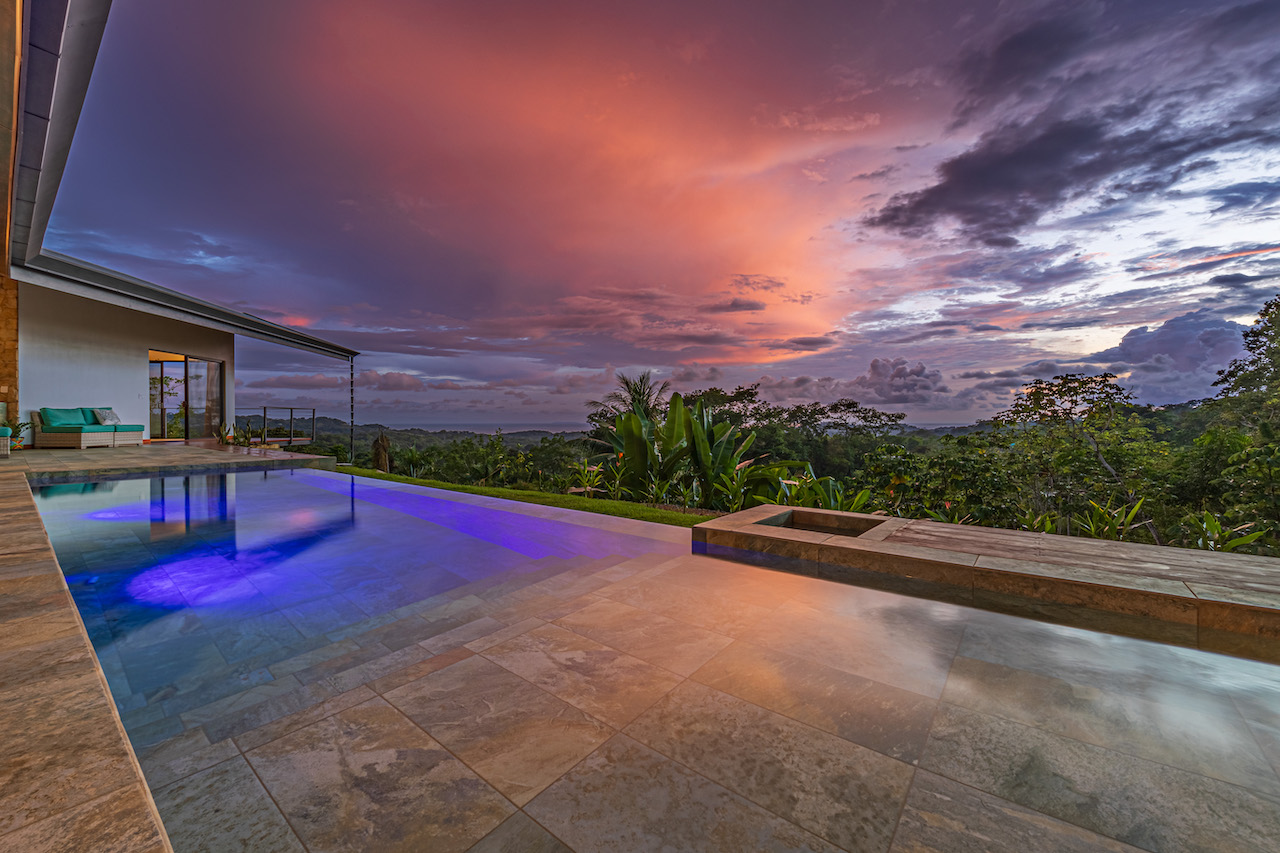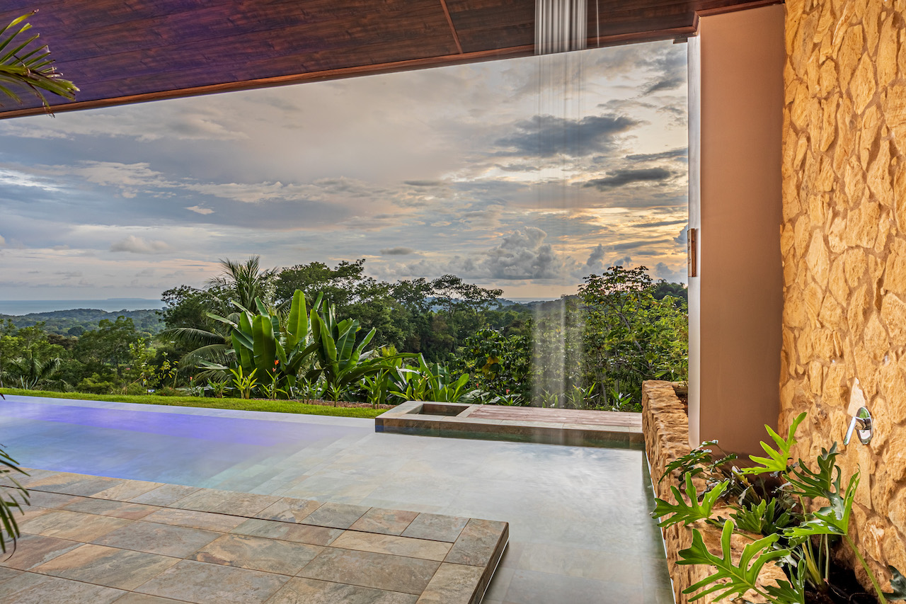 Welcome to Casa Espiritu de la Jungla. A custom home with luxury living in mind. Located in Ojochal, this brand new masterpiece is located at the end of a quiet easy access road. A lovely elevation for cool breezes it’s surrounded by jungle while the pacific blue shimmers in front of you. Views of Cano Island, sunsets, monkeys, toucans are just a few magical sights you will be able to enjoy.