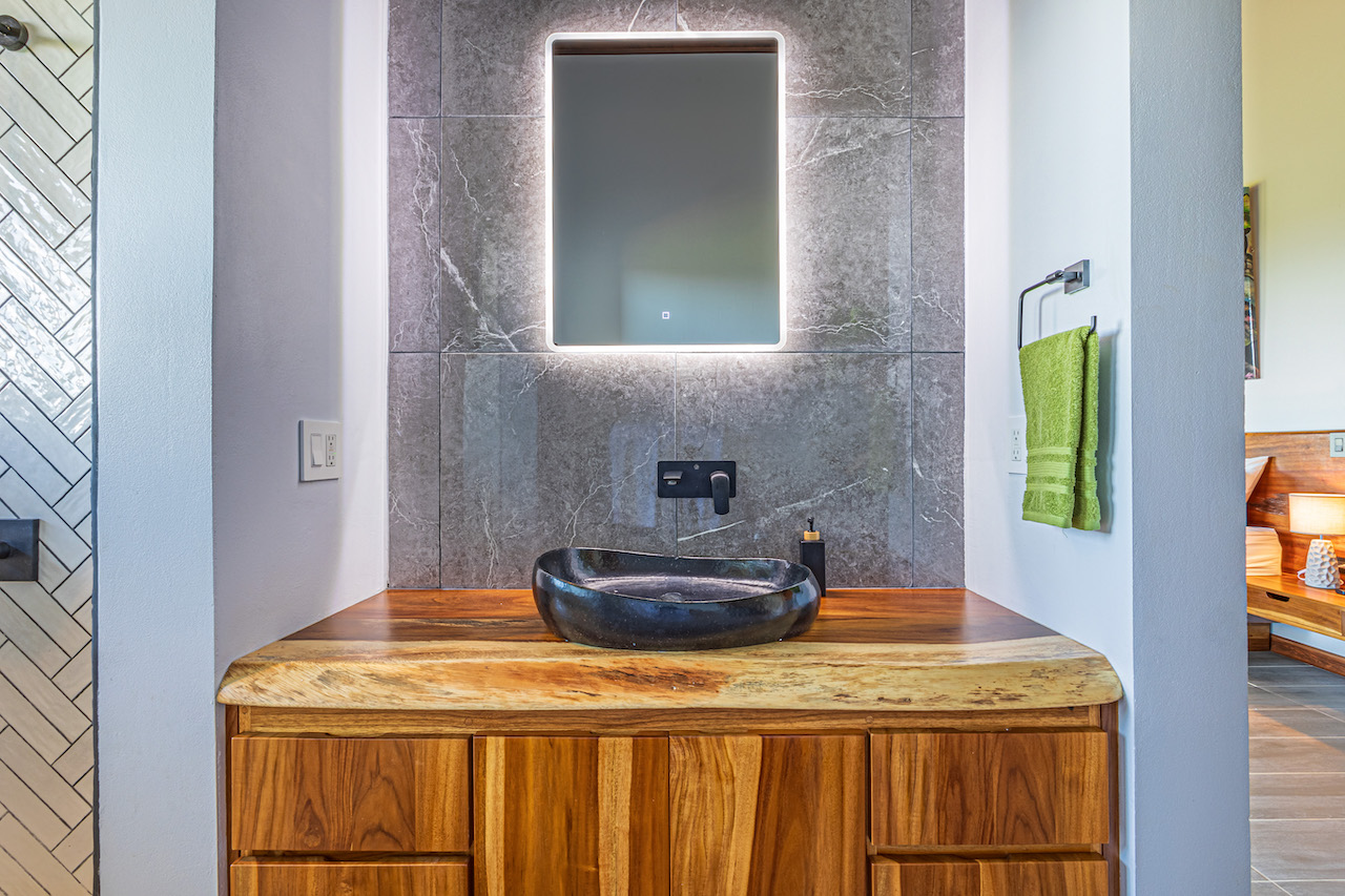 The entry to the home is magnificent featuring custom iron work fences and a perfectly planted back yard oasis. The roof is such that it allows for one to stay dry whether you are coming in with groceries or enjoying the back patio. Enter through the oversized laurel front door equipped with key pad to the homes entertaining delight. Large open concept with artesian guanacaste furniture, a large chefs kitchen featuring custom cabintry with an oversized granite island and counter tops. Enjoy the ability to fully open the accordion window above the sink to bring in those wonderful breezes. Hand crafted teak kitchen cabinets and wall decor are just a few features of this wonderful space. Conveniently located half bath is in easy access for entertaining featuring a guanacaste vanity. The gorgeous vanishing edge pool and decking that has been incorporated in the home is stunning. Simply unique and a show stopper! The outdoor bbq area with seating is sure to be one the the main areas one will enjoy daily. The home features three master bedrooms all with ensuites but the main principal bath an Integrated Bidet by Homary. The little things that can an owner can really enjoy. The guest master bedrooms feature large terraces, walk in closets and the ability to make the walk in shower inside or outside with a slide of a door. One features and soaking tub. Everything has been thought of! Planting for future abundance one will find two avocados trees- one Haas, one Fuerte, lemon tree, lime tree, mandarina, dwarf coconut and large coconuts. Ylang ylang, mimosa, lorita, rosemary and cilantro.