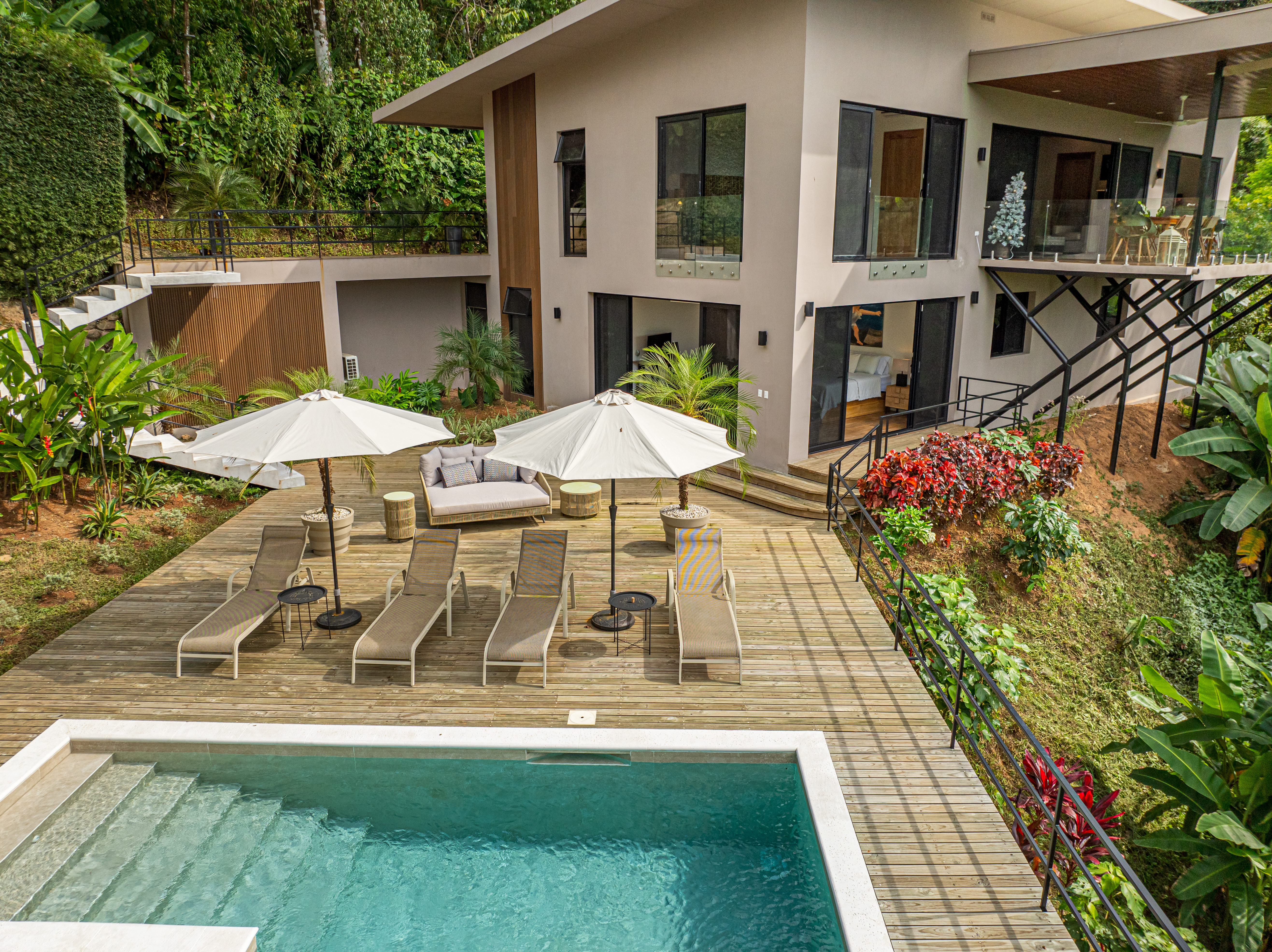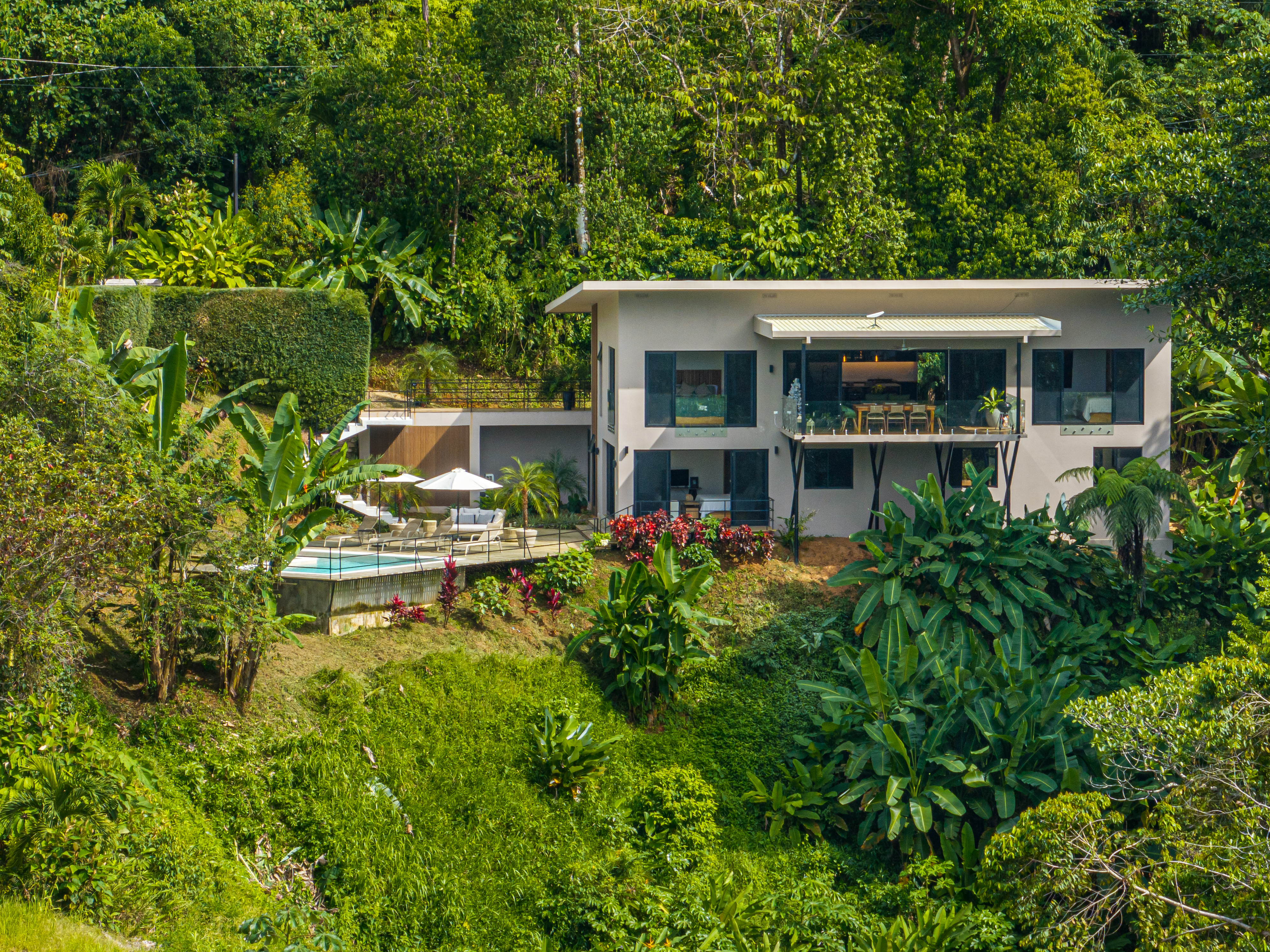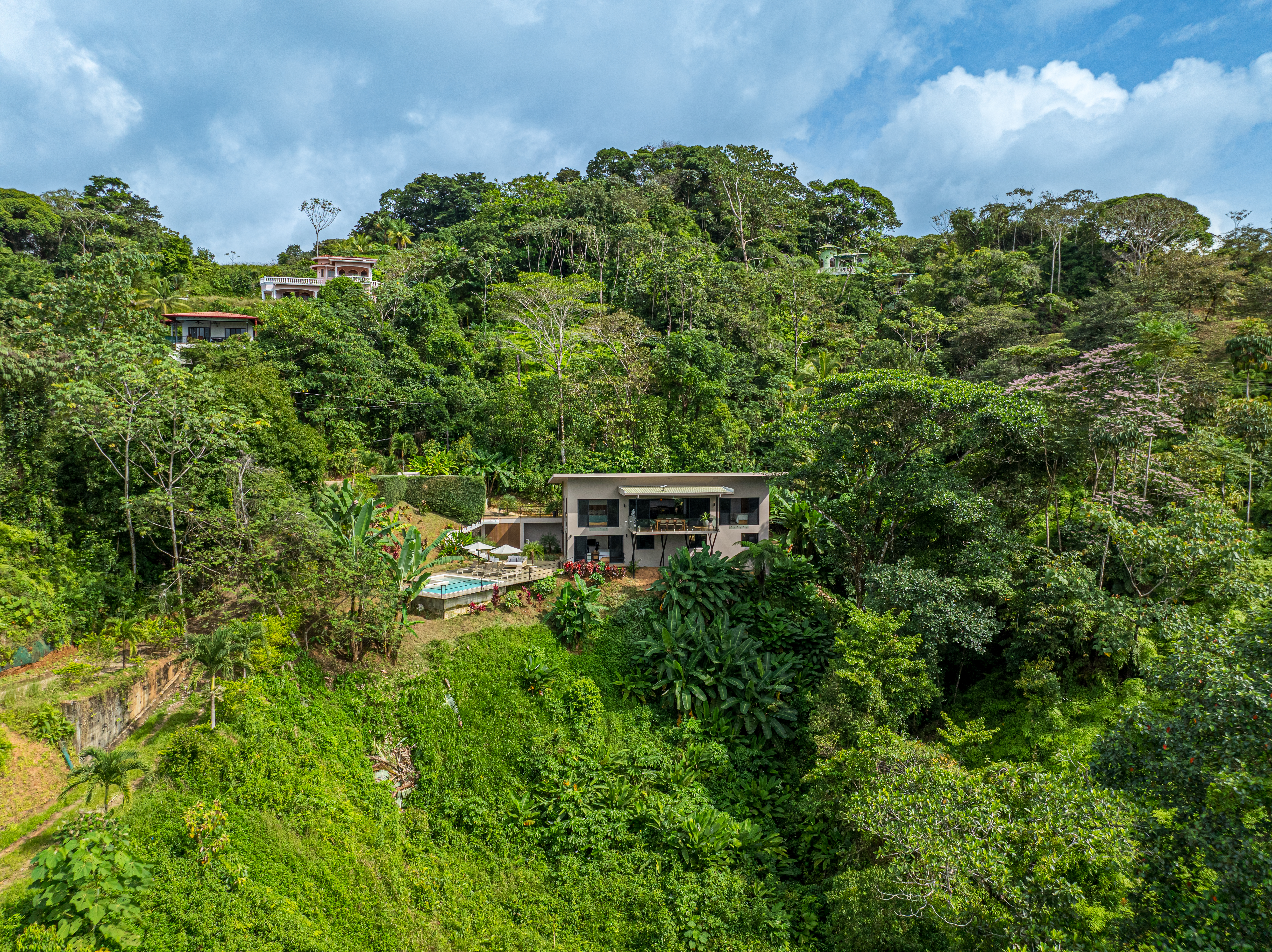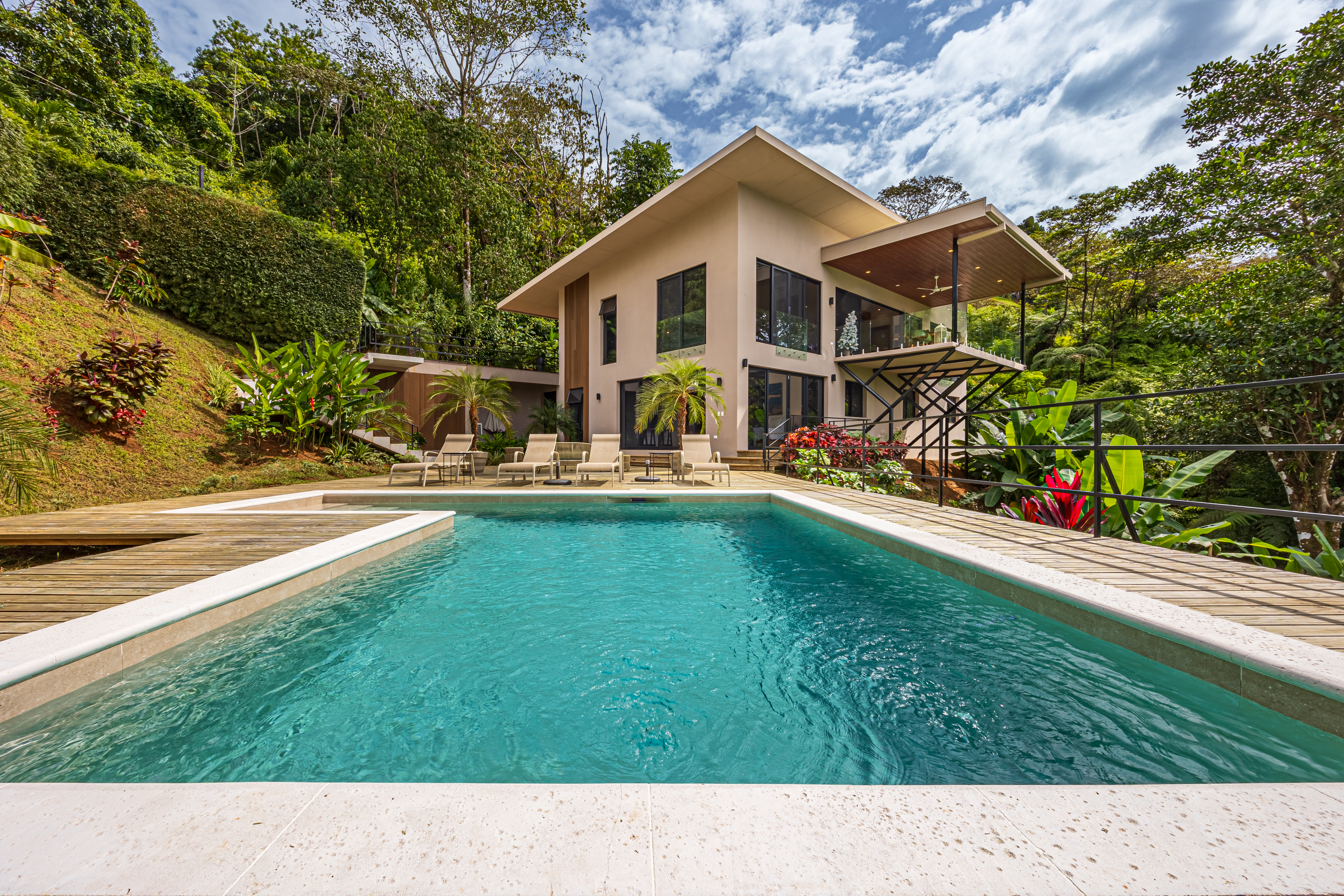 This luxury 3-bedroom home in Ojochal is perfect for those seeking comfort and convenience on Costa Rica's stunning southern Pacific coast. The house is designed with the potential to add a 4th bedroom downstairs, with easy and quick construction options, it is ready to move in, inviting you to indulge in its exquisite luxury.