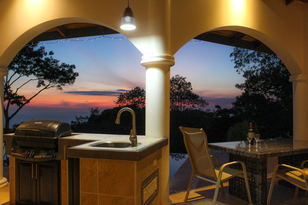 The main living area opens onto the huge covered patio, through wide French doors, amplifying the indoor-outdoor lifestyle. The terrace includes conversational seating areas, an outdoor kitchen with BBQ and pool loungers, where you can relax and enjoy the picturesque ocean and jungle views! The infinity pool has beautiful iridescent tile and lighting. The terrace tiles were specially chosen as they always remain cool, even on the sunniest days! A conveniently located outdoor shower makes it easy to rinse off after a dip in the pool or a trip to the beach.