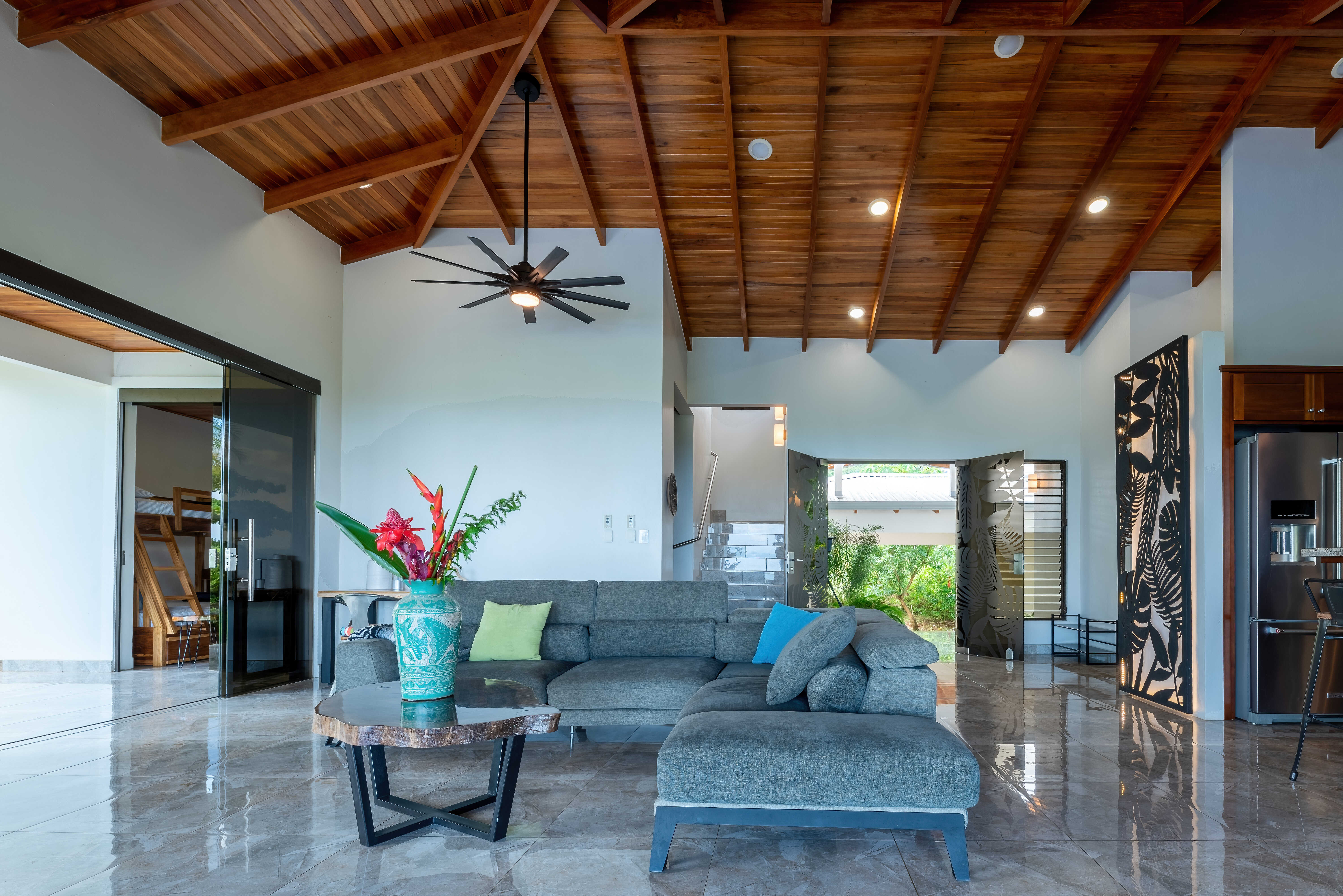 Two of the three lavish bedrooms boast private en-suites, ensuring comfort and privacy for residents and guests alike. The true hallmark of Casa Jaguar? Every room frames the endless blues of the Pacific Ocean, transforming daily life into a serene retreat. Whether savoring morning coffee with sunrise hues, harvesting fresh fruit from your private orchard, or hosting sunset soirées against a golden horizon, this home is a sanctuary where luxury meets nature’s grandeur.