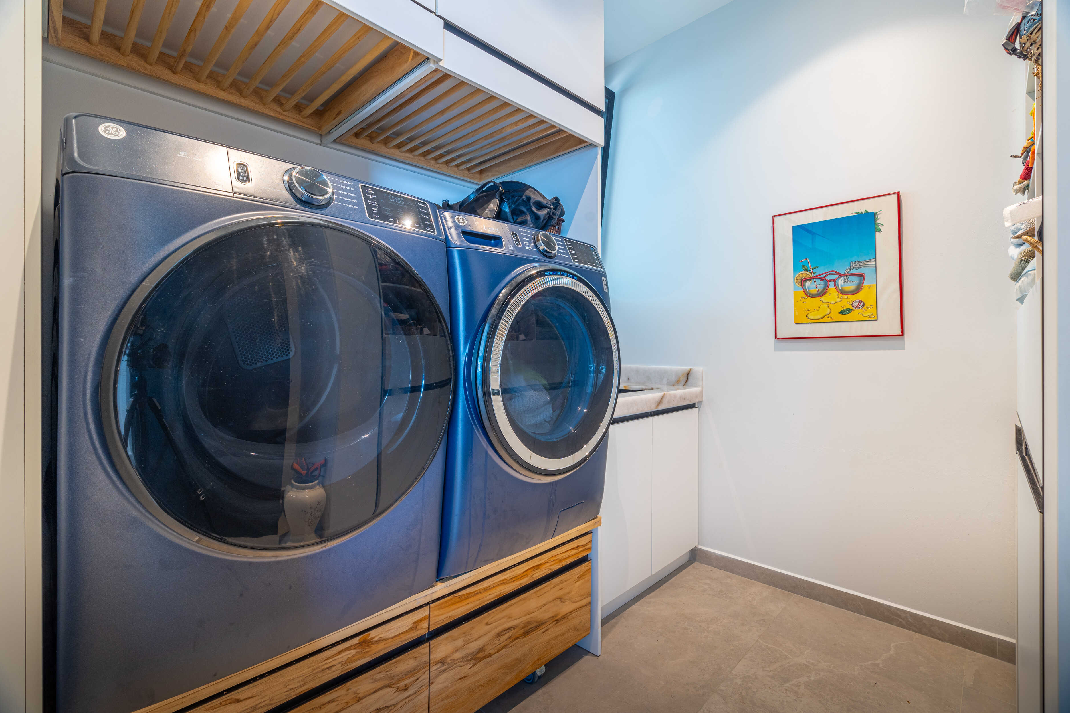 The estate includes a fireplace, outdoor shower with dog wash, and a beautifully designed laundry zone.