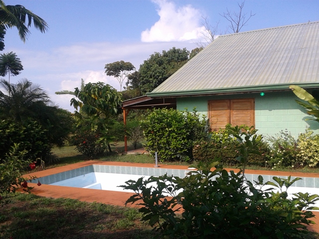 Included is a separate guest cabin with efficiency kitchen, bath and two terraces for sitting and absorbing the scent of the Ylang Ylang in the evenings and sunrise over the mountains.