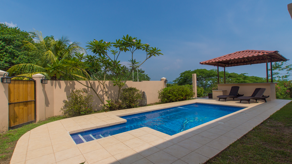 This is a unique ocean view property....a spacious 3 bedroom semi-detached house, half of a duplex, located within a condo community inside a secure development in the mountains of Ojochal. If you are looking for a turn-key vacation home or rental property with ocean views - this is it! Completely renovated in 2017, and featuring brand new furnishings and artwork selected by an interior designer, this place is tastefully decorated throughout. All new landscaping, a courtyard with exterior lighting and new pool rancho compliment the private outdoor living space which features a tiled pool, a covered terrace on the ground level and large balcony above.