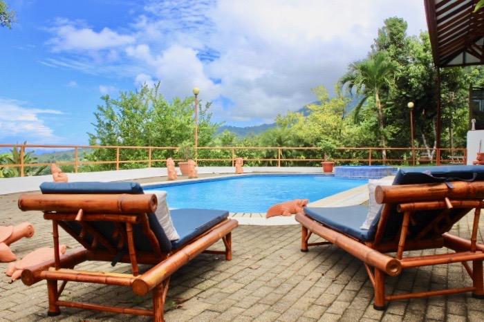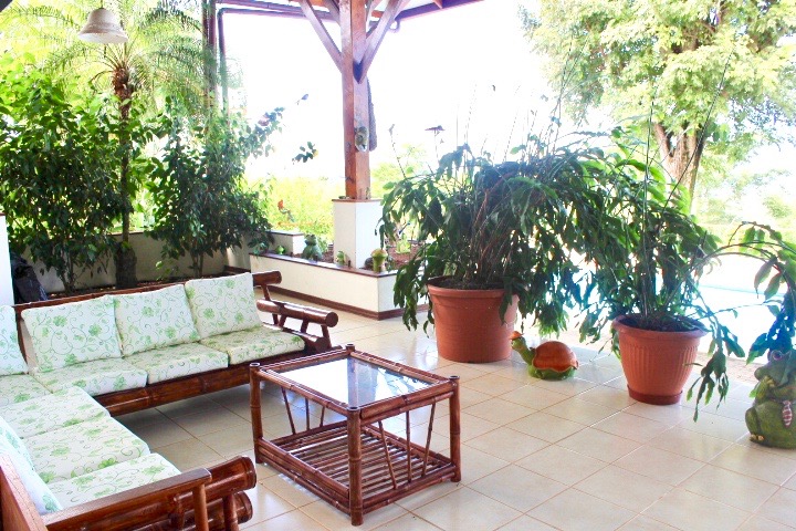 The ocean view will take your breath away as you walk through the doors from the covered and tiled parking area! This 3 bedroom 3 bath home is priced to sell quickly. Inside you'll enjoy the living, dining and kitchen areas all with immaculate and soaring bamboo ceilings and floor to ceiling windows looking out over the Pacific ocean with year round sunsets. The ocean view terrace has over 1000 sq. feet of covered living and dining space to host a few, or many friends. Mature trees throughout the property offer fresh fruit most of the year and the gentle slope would allow for a guest house to be added to this spacious 2 acre property. The manicured gardens are to be enjoyed and easy to walk through, attracting a tremendous amount of birds including toucans and hummingbirds. At the end of a hall you'll find the Master suite with private jungle and ocean view balcony and ensuite bathroom. Two additional bed rooms with large closets are perfect for guests. At this price, this home will not last long!