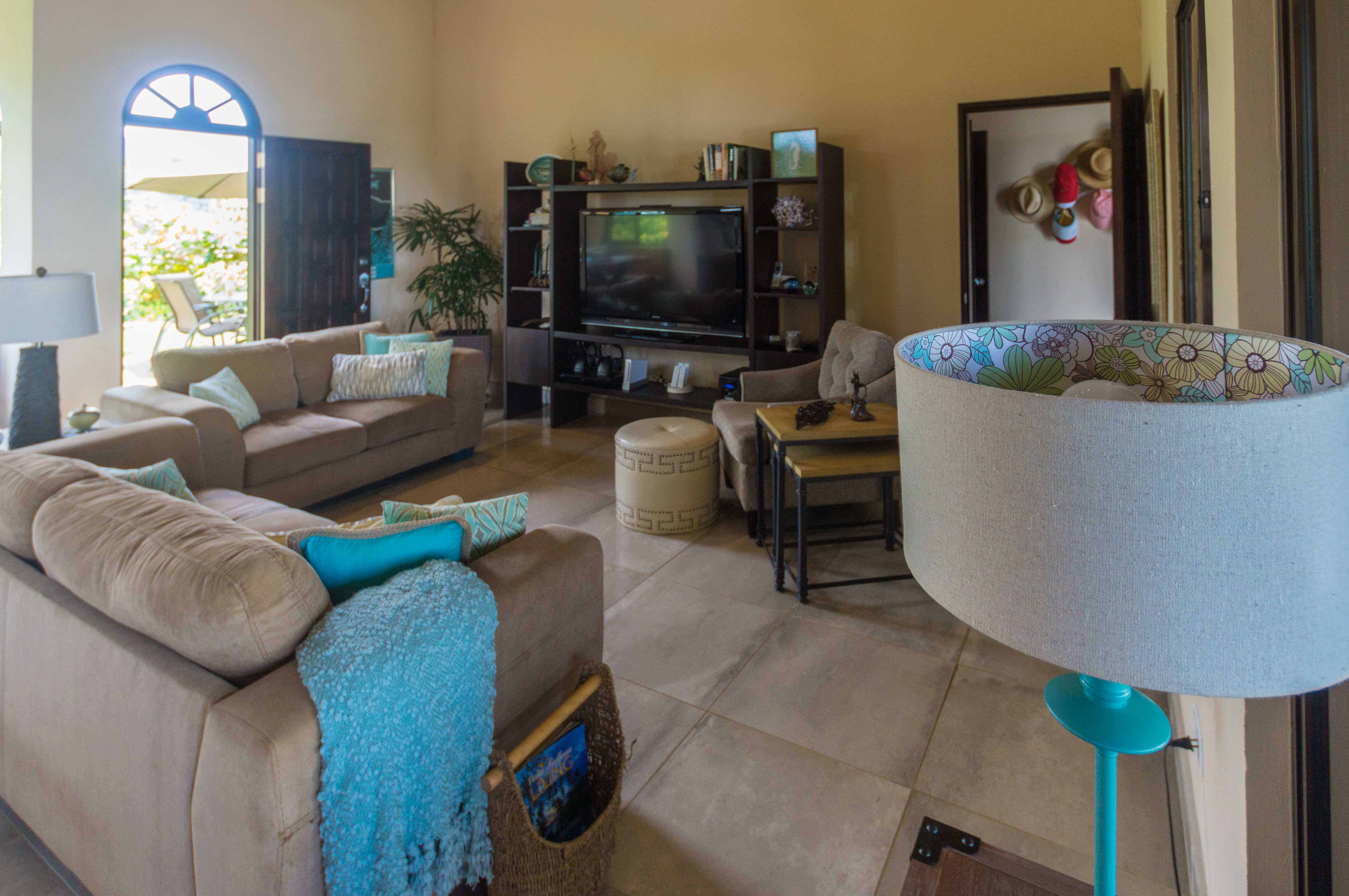 The freshwater infinity pool comes with the very unique feature of a dining table in the pool for cool entertaining on those hot summer days. The pool and DE water filtration system was designed by a water professional for the best swim experience. Coral stone tiles surround the pool for non-slip poolside fun, and the exterior of the home is done in beautiful ceramic tiles, while the inside of the home is tiled with extremely durable porcelain tile. The high ceiling decking throughout is made of solid teak and sealed with a waterproof membrane that provides an additional level of protection from the elements. Feel the fresh ocean and mountain breezes flowing in through the many screened windows and portholes situated floor to ceiling throughout the structure.