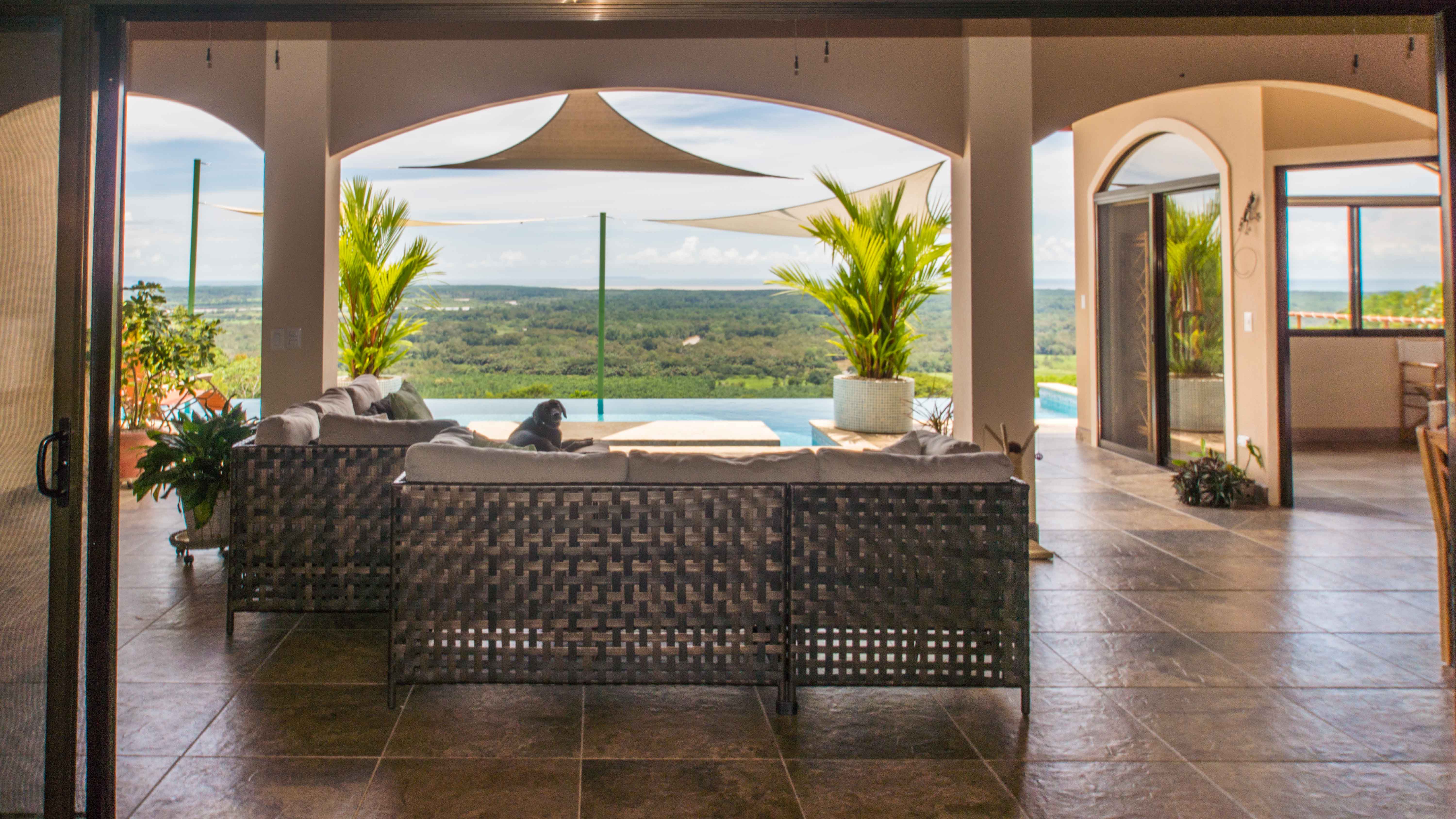 Two master bedrooms and one guest bedroom are all situated in different wings of this property… but all under one roof! Wet season or dry, you are going to feel snug and secure all year round in this well-designed home for function and comfort. There are numerous spaces to tuck yourself away in this beautiful retreat, situated only 600 meters from the highway and minutes away from nearby towns and local hotspots. Despite its close proximity, this property feels like your own private getaway, surrounded by primary rainforest and overlooking the lush river valleys below and the vastness of the Pacific Ocean. Sunsets from November to March are incredible! Río Terraba and Caño Island can be seen from your pool while you laze the day away. And if the urge strikes, the pool is long enough (nearly 40 feet) for lap swimming.