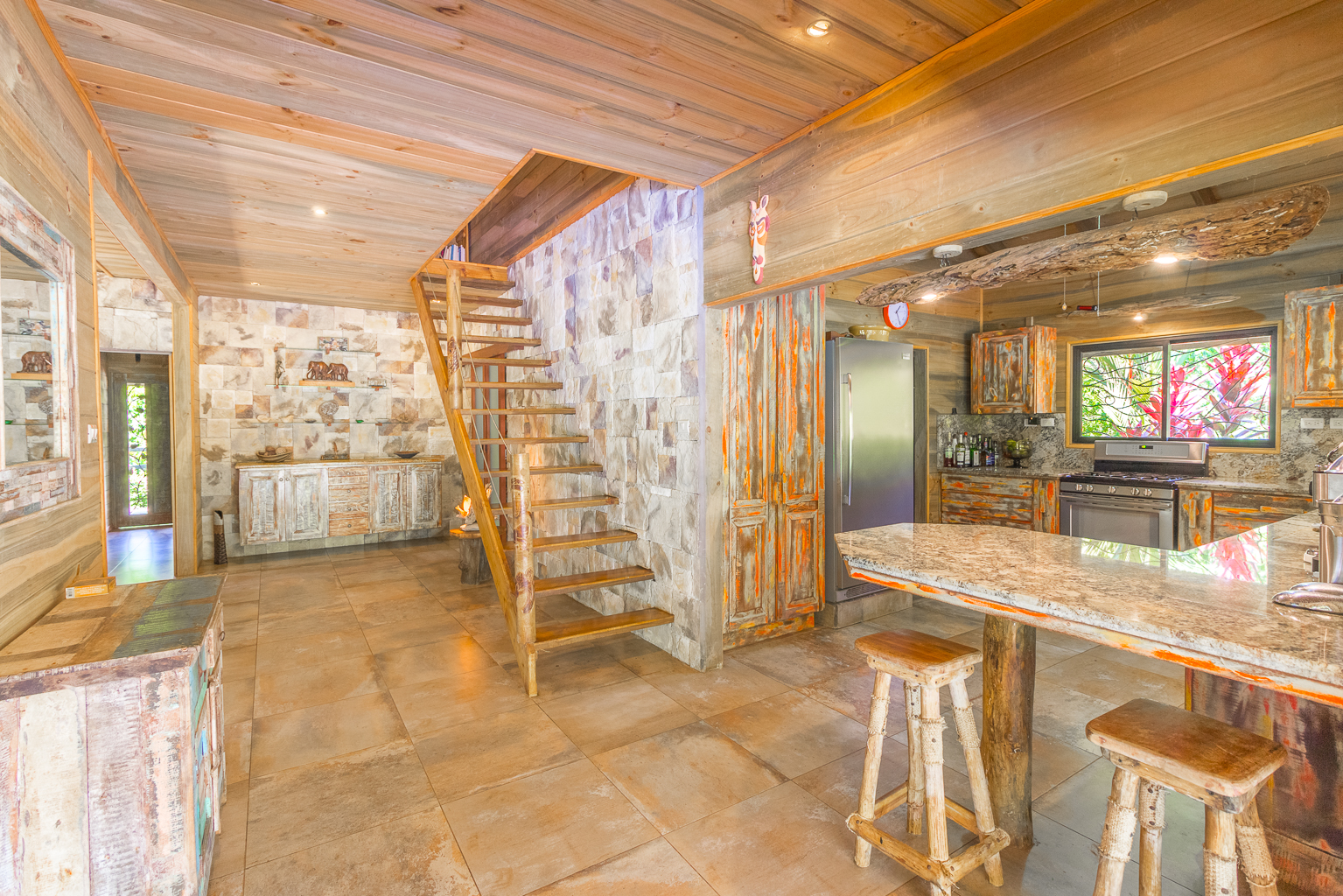 This home is all about peace and tranquility! Relax on the patio next to the pool and gardens, or lie in the hammock on the large suspended deck overlooking the river. Keep an eye out for the monkeys that frequent the trees along the river right next to the house! You'll feel like you're in your own private oasis, far away from it all. It's hard to believe that you're only a few minutes from the heart of Ojochal, restaurants, shopping, and beaches.