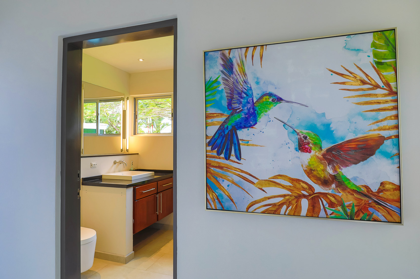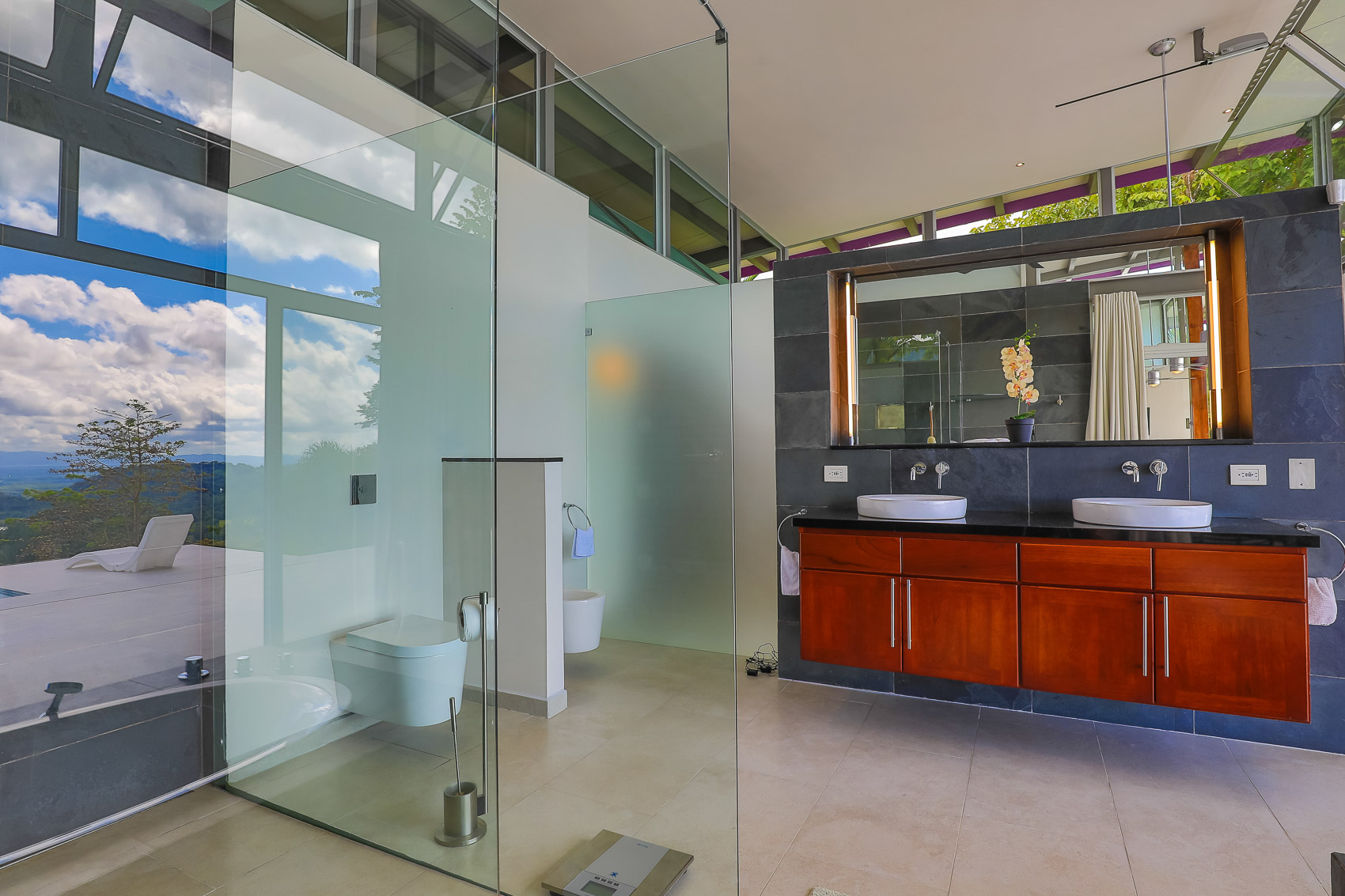 The forest concept of this lush property regularly attracts spectacular tropical bird species like scarlet macaws and keel-billed toucans. Outside the home is a separate bodega that matches the stylish aesthetic of the main structure. This currently acts as a full workshop and garden storage, which could easily be converted into a guest house. This winning combination of impeccable design, luxurious attention to detail, flawless execution, all with a mountain top view makes this property a one-of-a-kind home in Costa Rica.