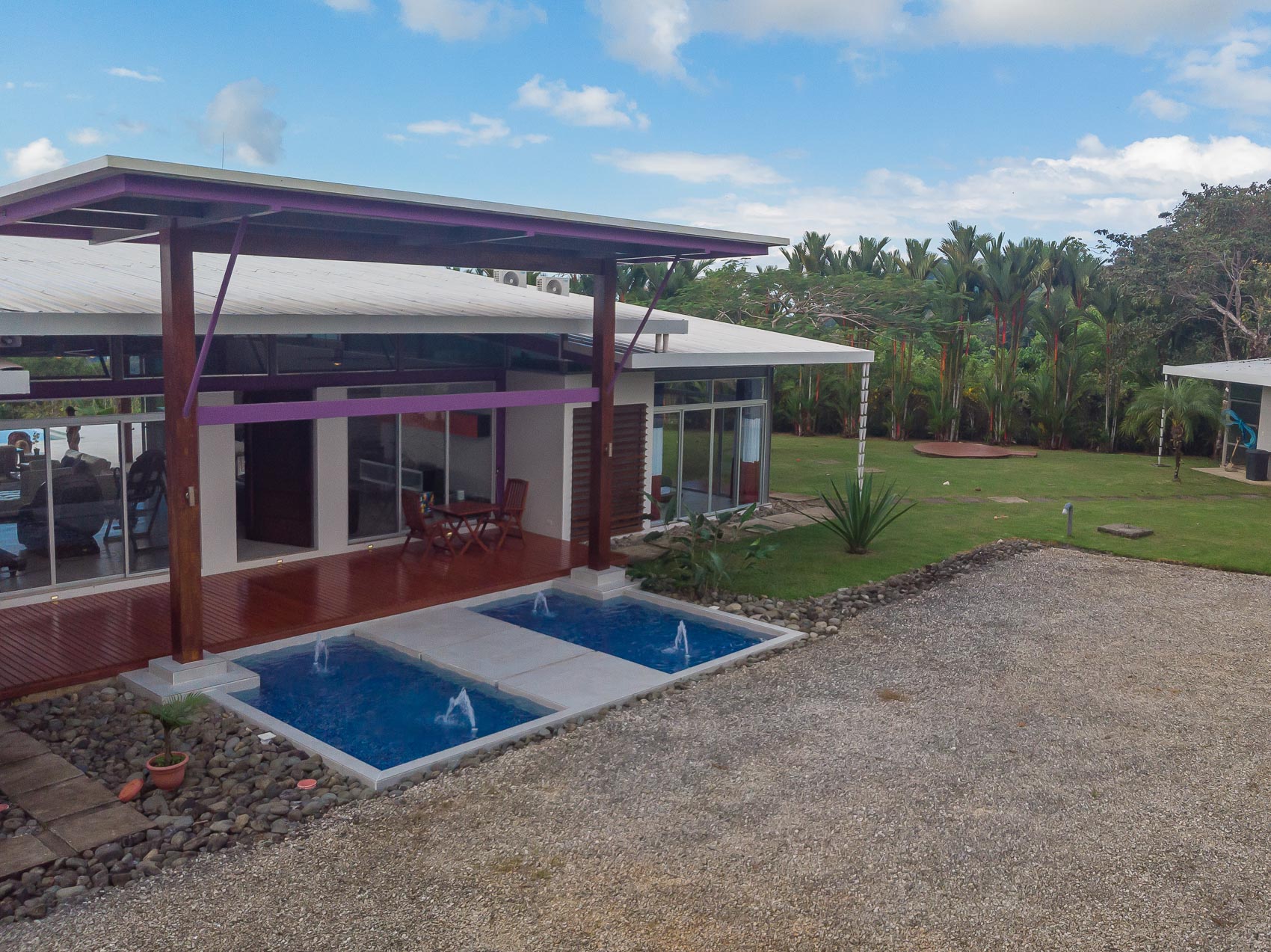 This is a signature luxury modern residence at the top of the private hills of Tres Rios. The design is a contemporary take on Bauhaus modernism, featuring steel and glass construction that uses clean lines and open spaces to create a natural flow between the domestic interior and natural exterior of the jungle.