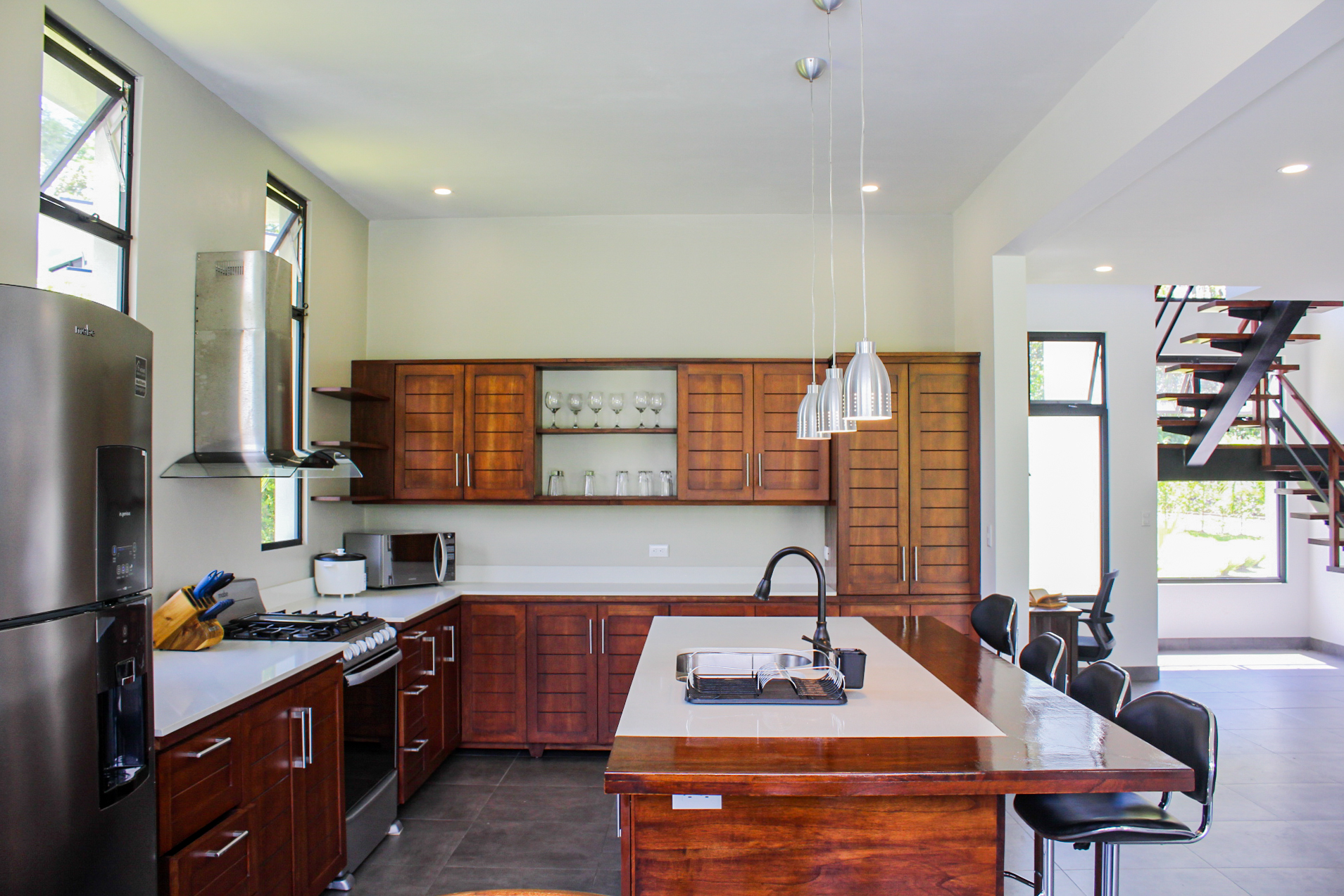 This home is a great example of modern construction in Costa Rica. The floorplan is a great design for a vacation rental for couples all desiring their own private space. Also perfect for private residence when you receive the many guests that will instantly want to visit you in Costa Rica! Come and appreciate this splendid residence, we will be happy to organize a visit for you.