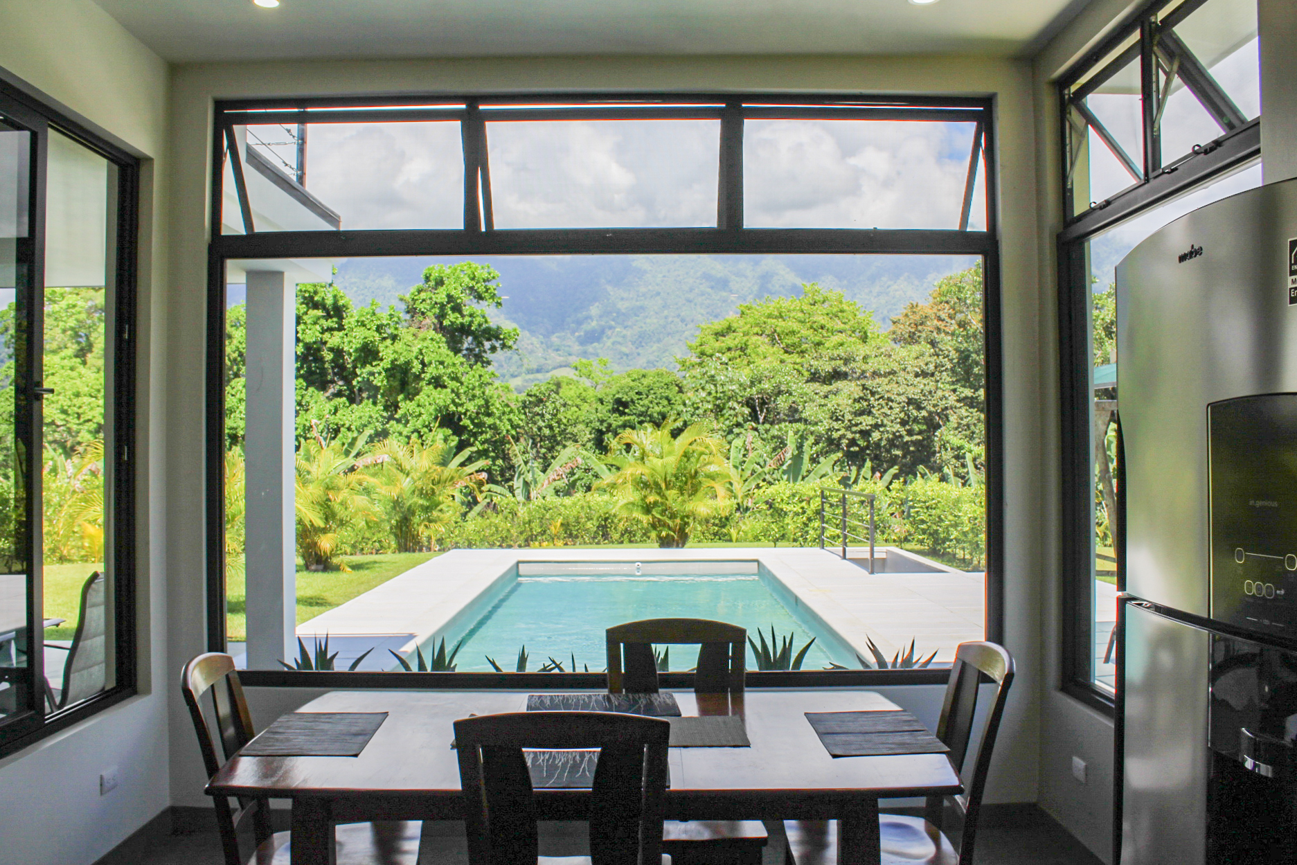 Be the first to own this modern brand new home. Located in the heart of Ojochal, less than 5 minutes from the highway, and all the amenities of the area such as restaurants, shops, supermarkets, pharmacies, doctors, hardware stores, and more. Within 10 minutes of 2 beaches, and several more not much further away. Sip your coffee while watching the sunrise over the expanse of mountains, and continue to enjoy the fantastic ever-changing mountain view throughout the day. The house is set on a 3⁄4 acre lot, backing onto jungle, within a boutique 4-home gated development.