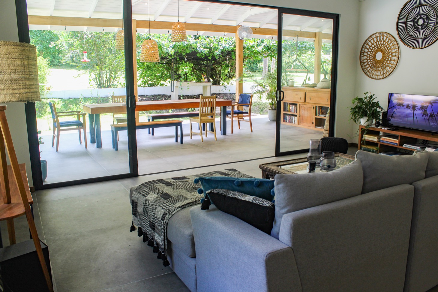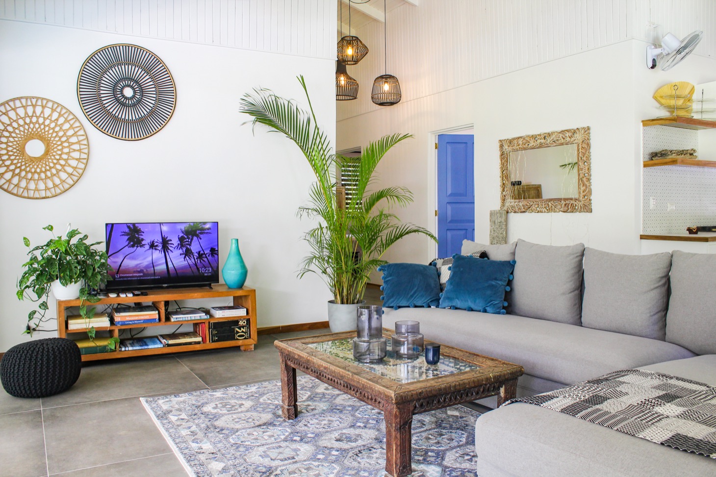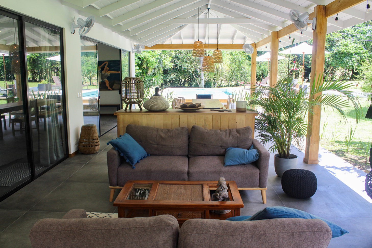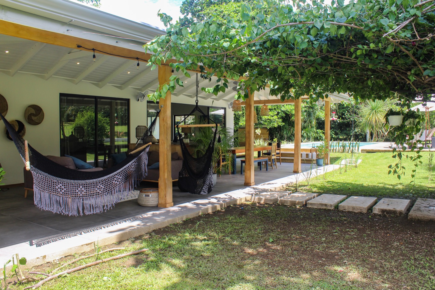 This boho-chic home combines the clean lines and muted color palette of contemporary design with exotic hardwoods native to this region for a simple architectural complement to the colorful tropical landscape surrounding this home. The décor creates a harmonious environment through which to experience the exhilaration of nature’s wonders, both inside and out. This home is a truly divine retreat! The highlight of this home is the simply gorgeous living spaces, with a spacious indoor living room that flows directly out to the huge, covered terrace which is luxuriously furnished. The outdoor living space with its’ large pool and deck is a wow factor!