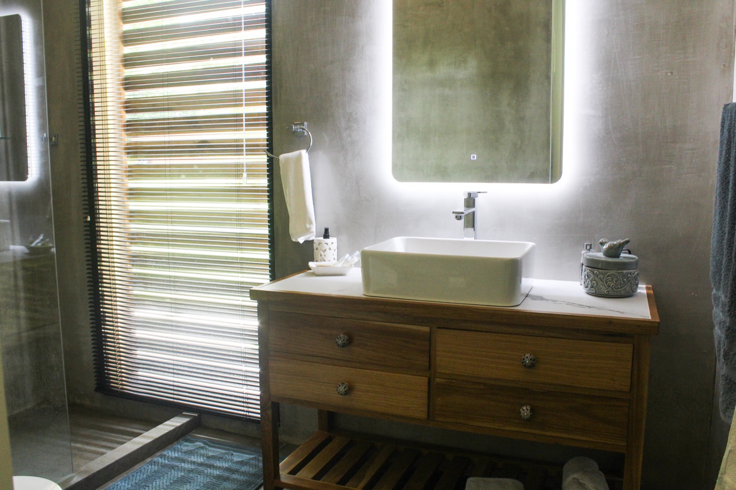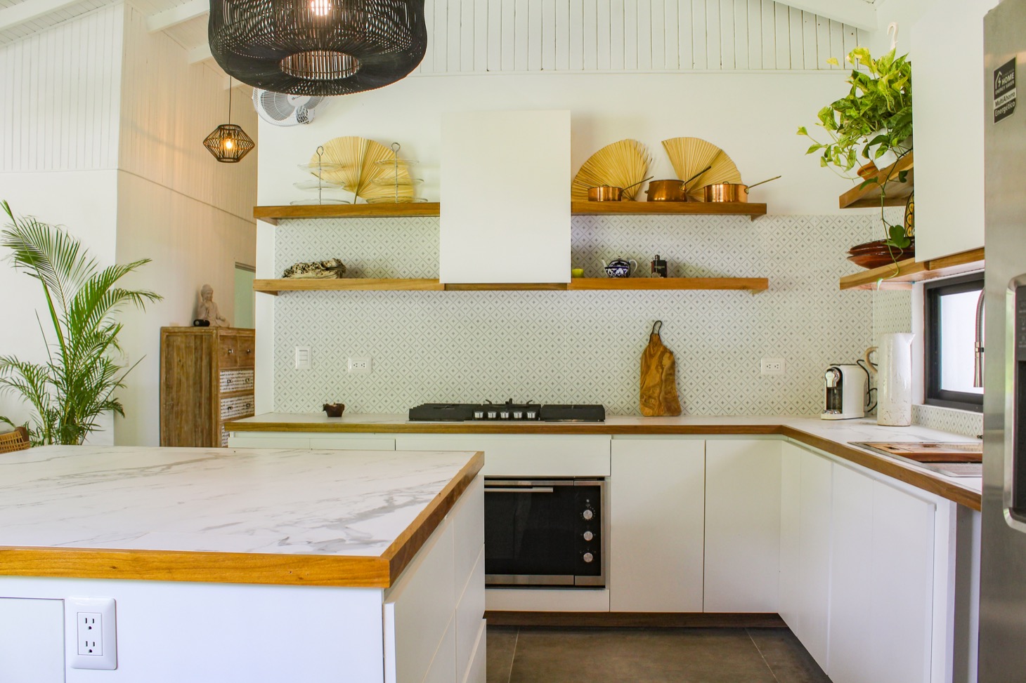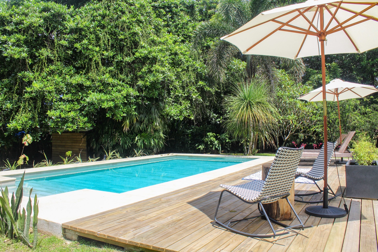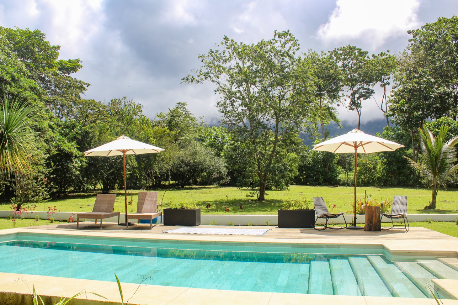 This boho-chic home combines the clean lines and muted color palette of contemporary design with exotic hardwoods native to this region for a simple architectural complement to the colorful tropical landscape surrounding this home. The décor creates a harmonious environment through which to experience the exhilaration of nature’s wonders, both inside and out. This home is a truly divine retreat! The highlight of this home is the simply gorgeous living spaces, with a spacious indoor living room that flows directly out to the huge, covered terrace which is luxuriously furnished. The outdoor living space with its’ large pool and deck is a wow factor!