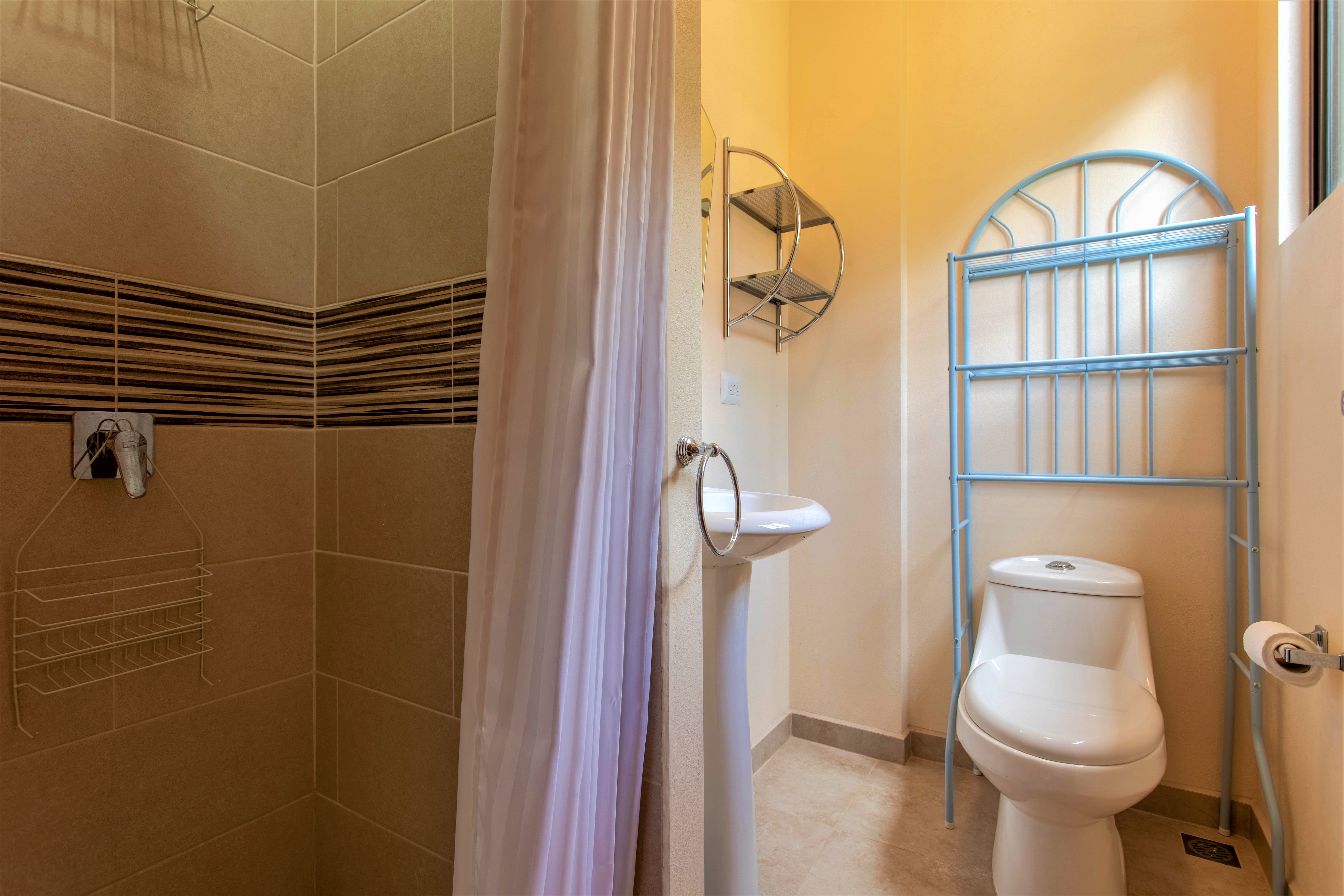 The third bedroom, with a private bathroom, is located below on the ground floor. It provides privacy and has its own relaxing patio overlooking the Zen Garden and, further beyond, a very well landscaped and maintained green area.