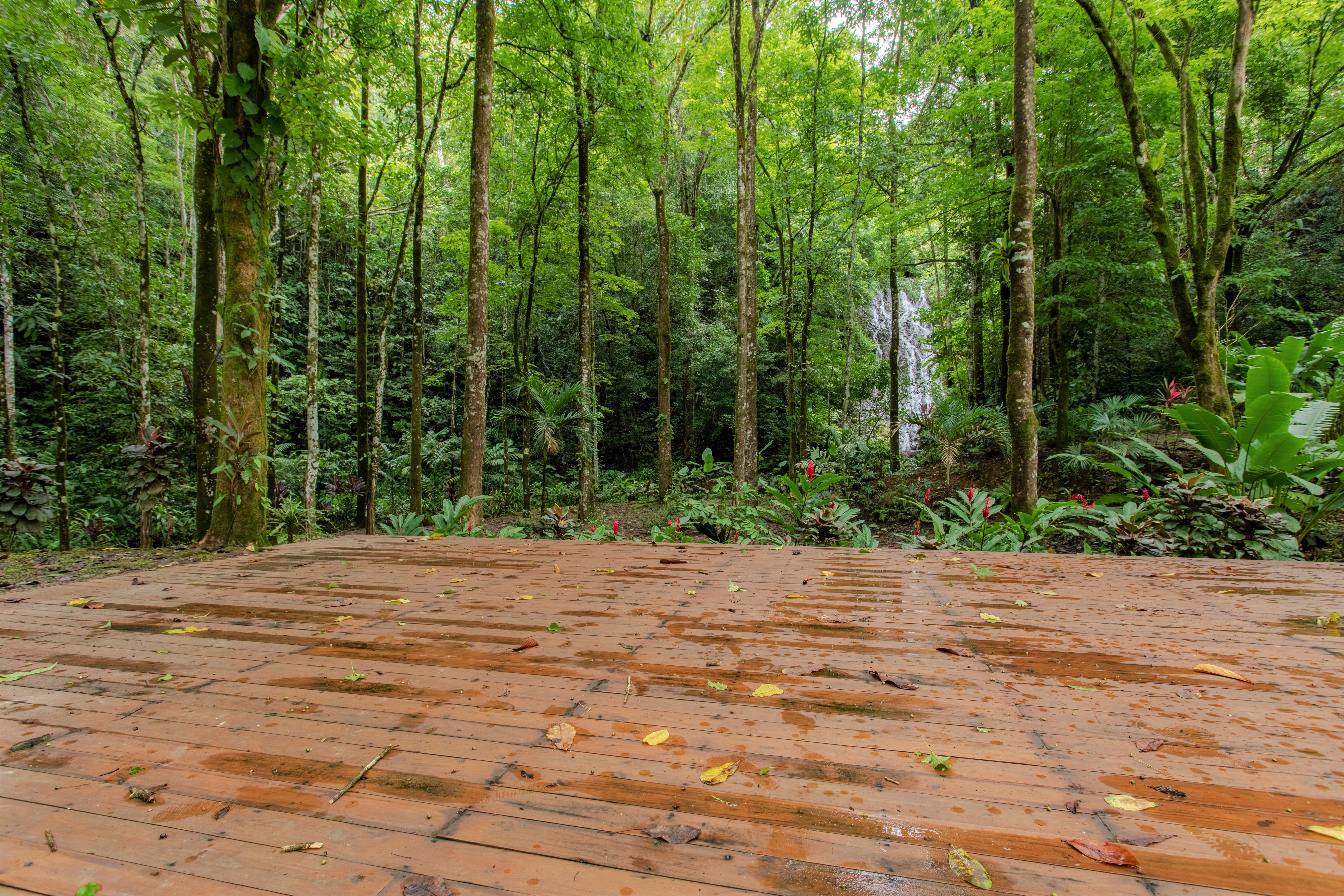 The house is located on the end of the access road – you will arrive home after passing a spectacular waterfall with a natural swimming pool just below the falling water. A yoga platform, situated amongst the trees in front of the waterfall, is one of the many attractions of this magical place.