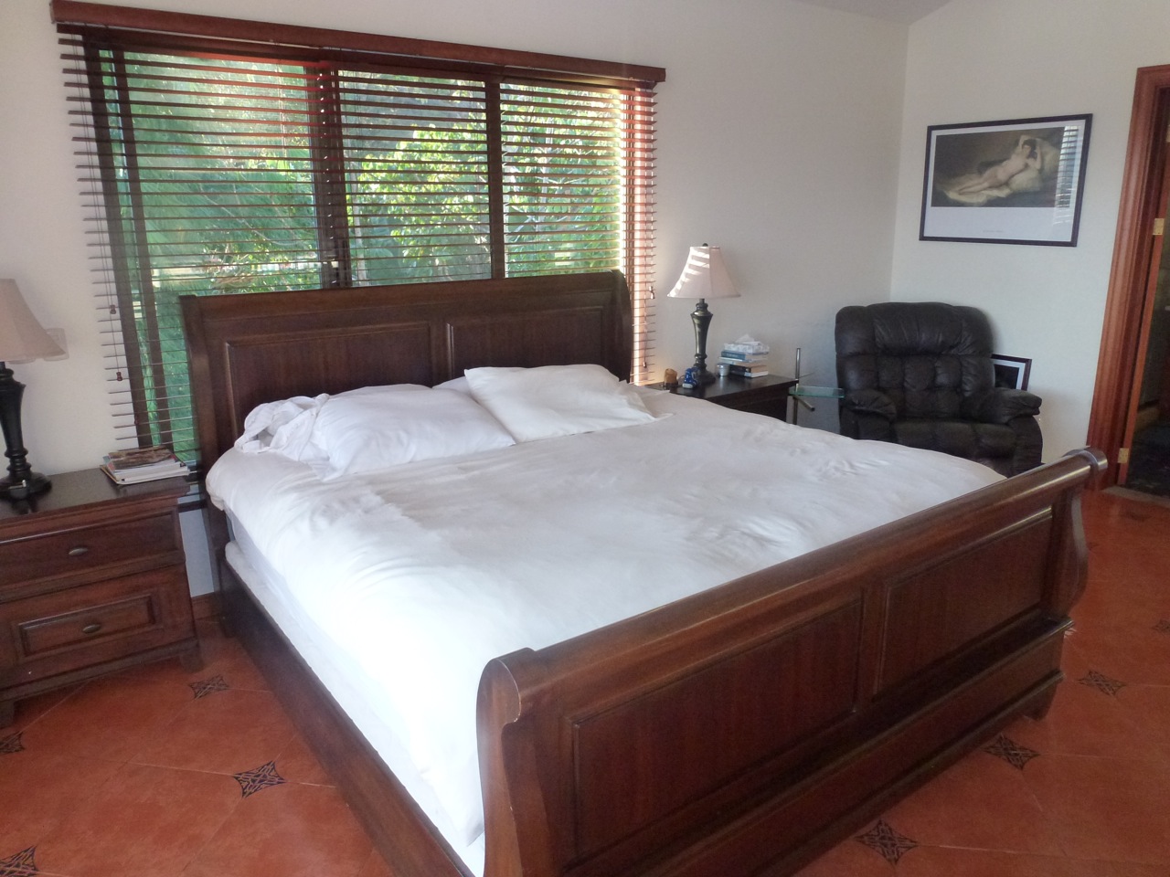 The house has 3 bedrooms and 2 ½ baths. A expansive master suite includes a California King bed and a custom bathroom tiled in Barcelona tile. Master suite includes a climate controlled walk-in closet with a dehumidifier.