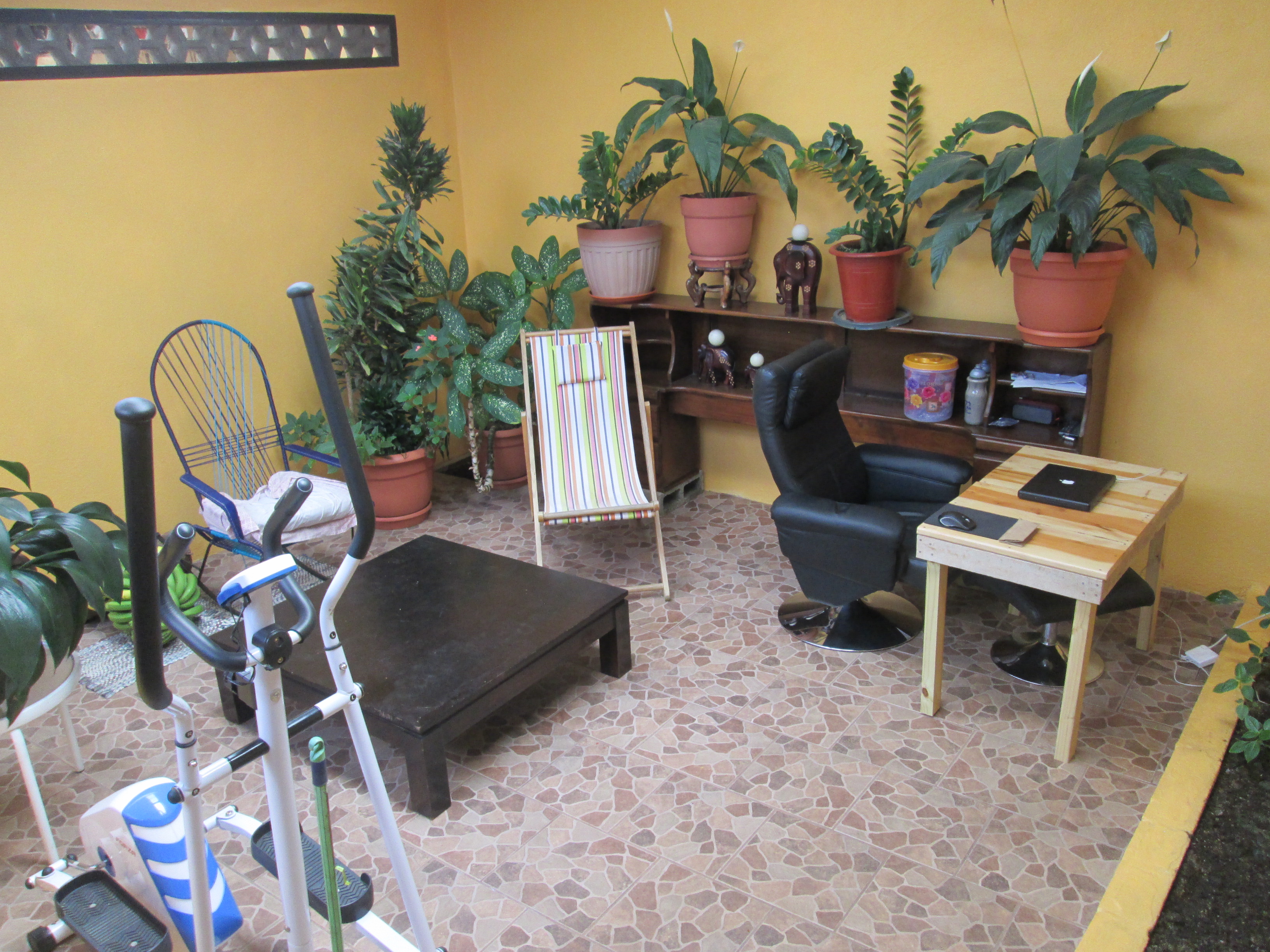 The green area is like a tropical paradise, with fruit trees, green plants and flowers.