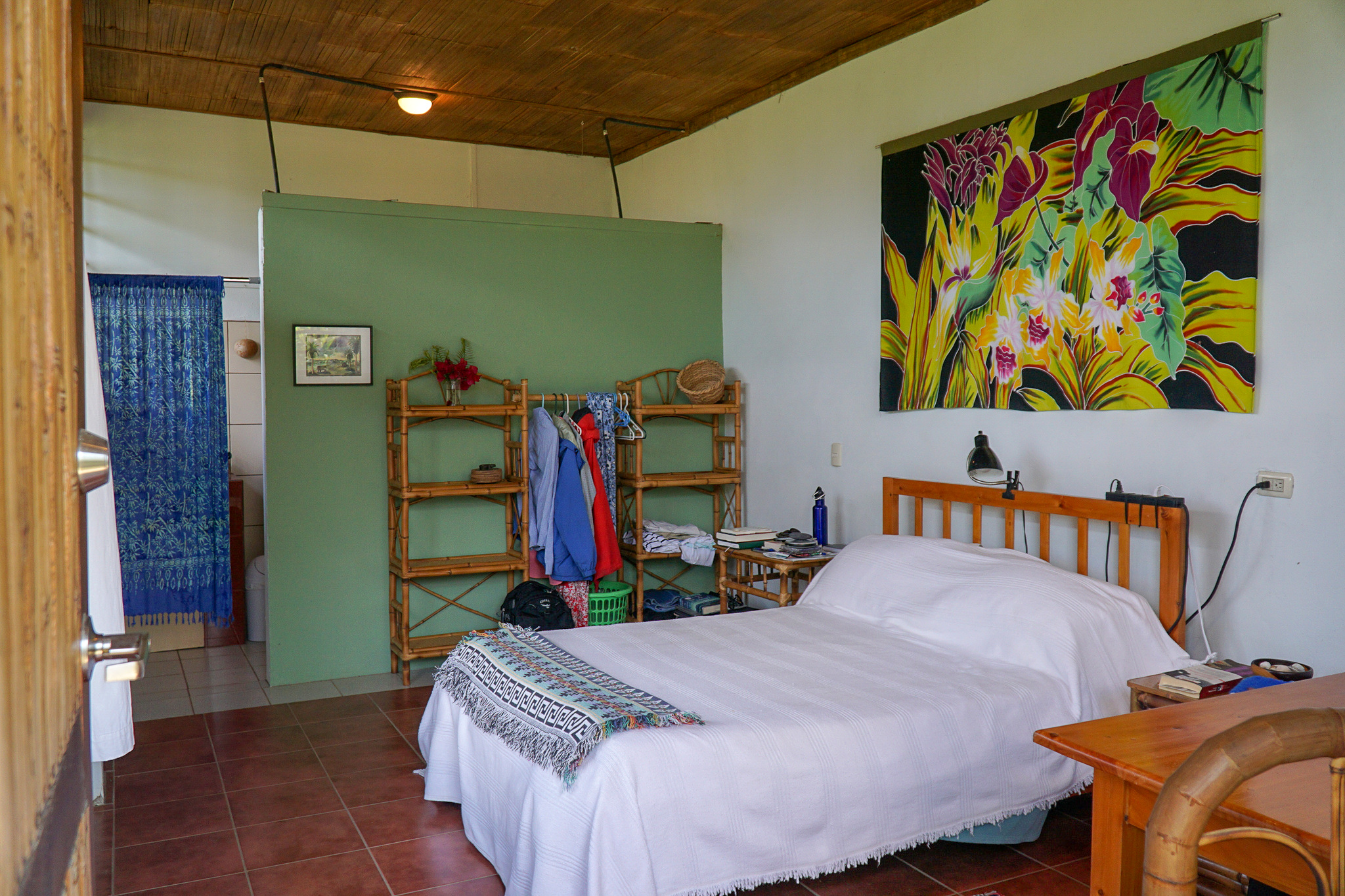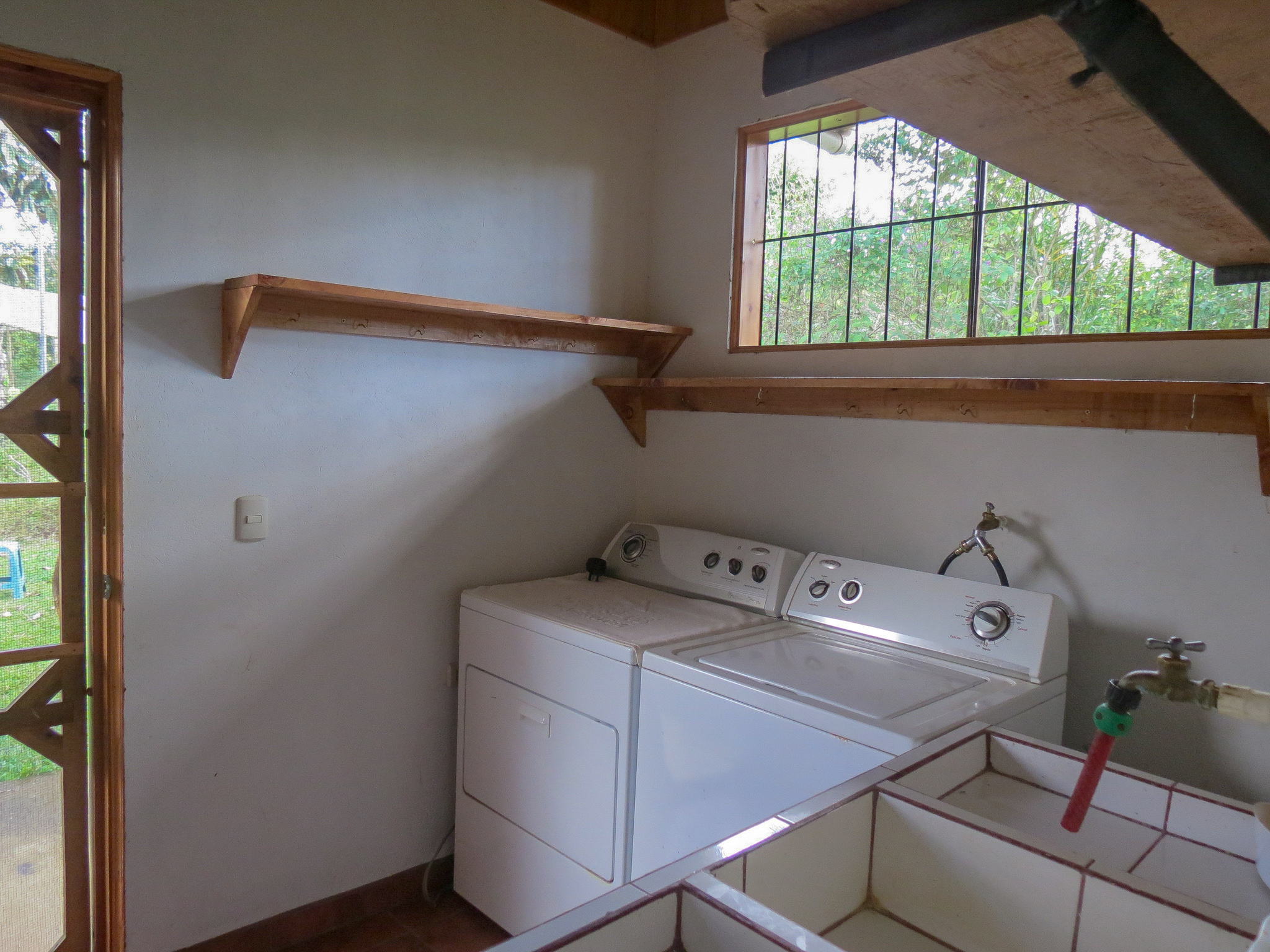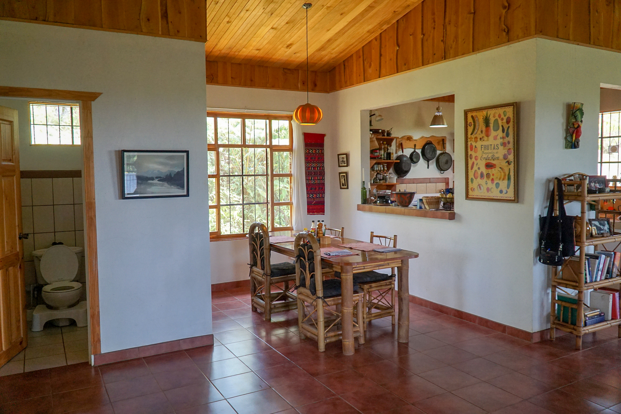 There is a storage room and also an enclosed studio/workshop of 400 square feet and all tools are included in the sale. The home also comes fully furnished with all appliances. The furniture was crafted locally from bamboo. The home features woodwork throughout, much of it in cypress.