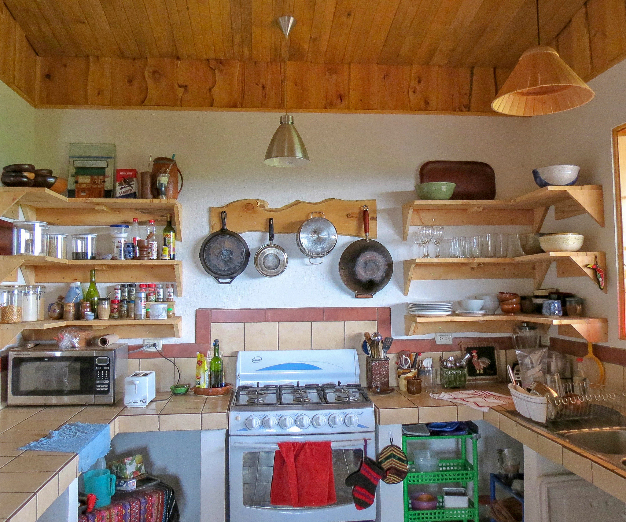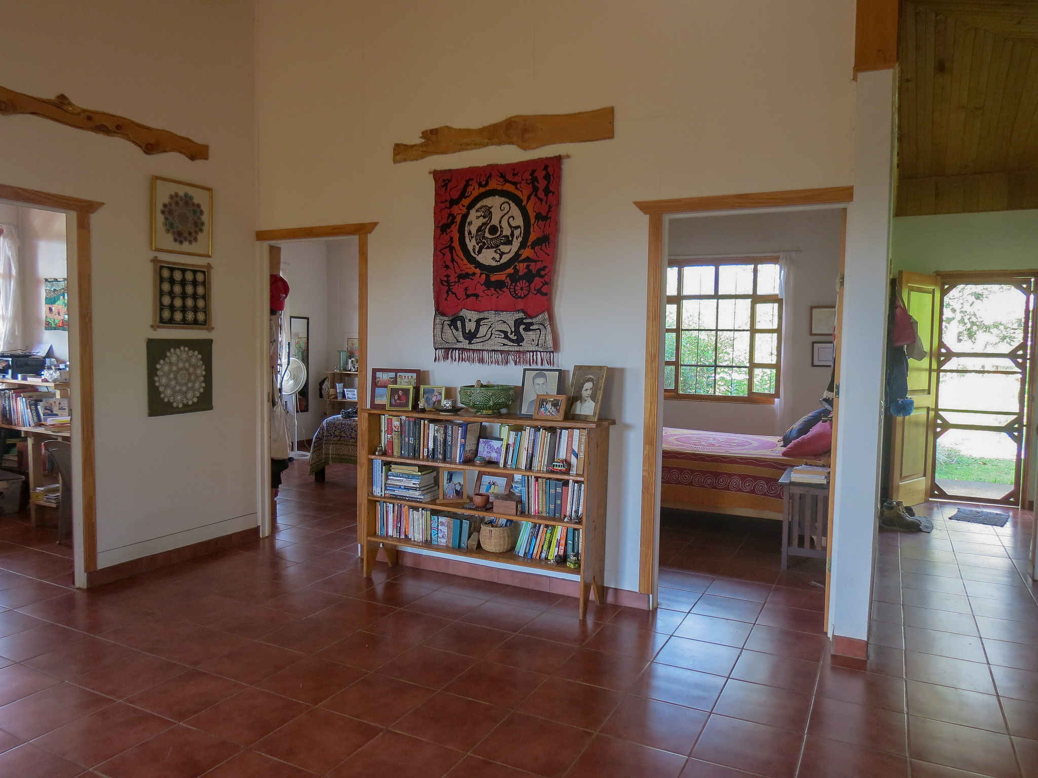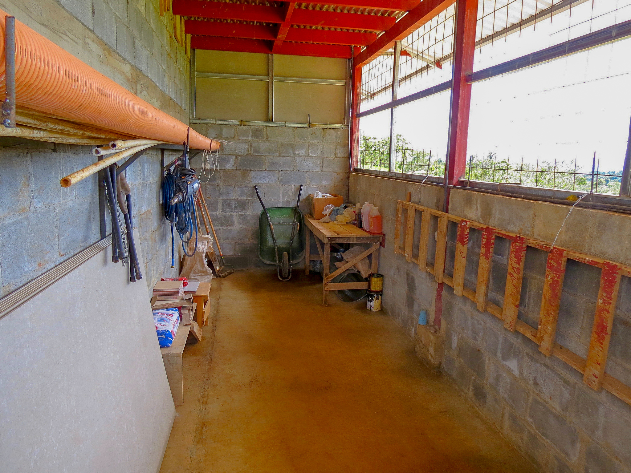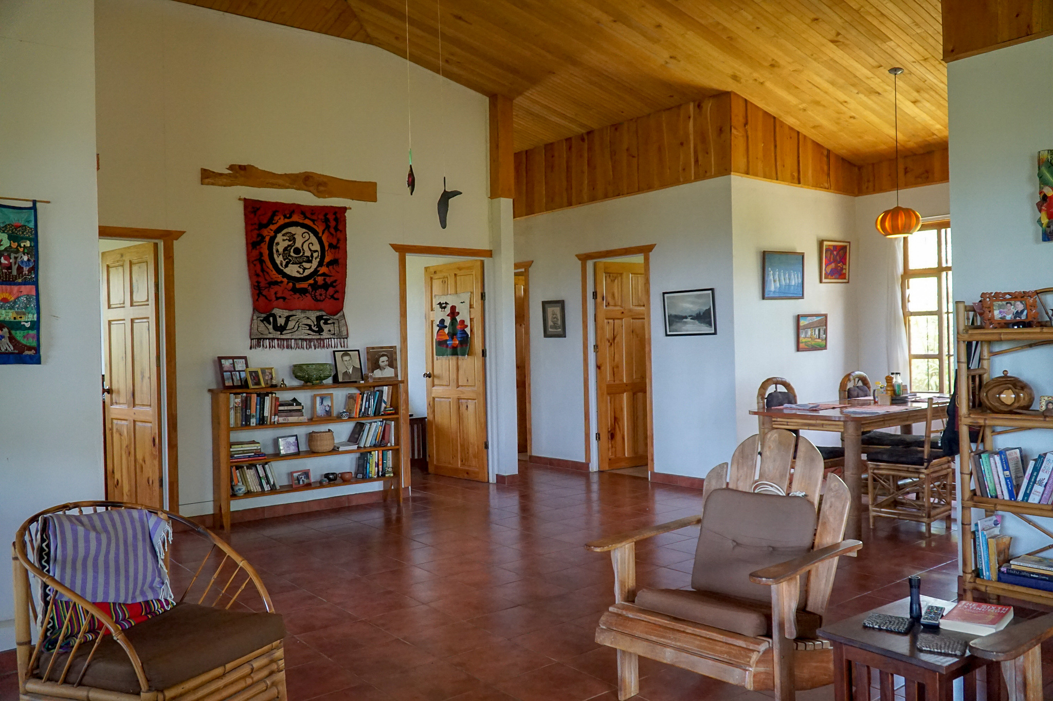 There is a storage room and also an enclosed studio/workshop of 400 square feet and all tools are included in the sale. The home also comes fully furnished with all appliances. The furniture was crafted locally from bamboo. The home features woodwork throughout, much of it in cypress.