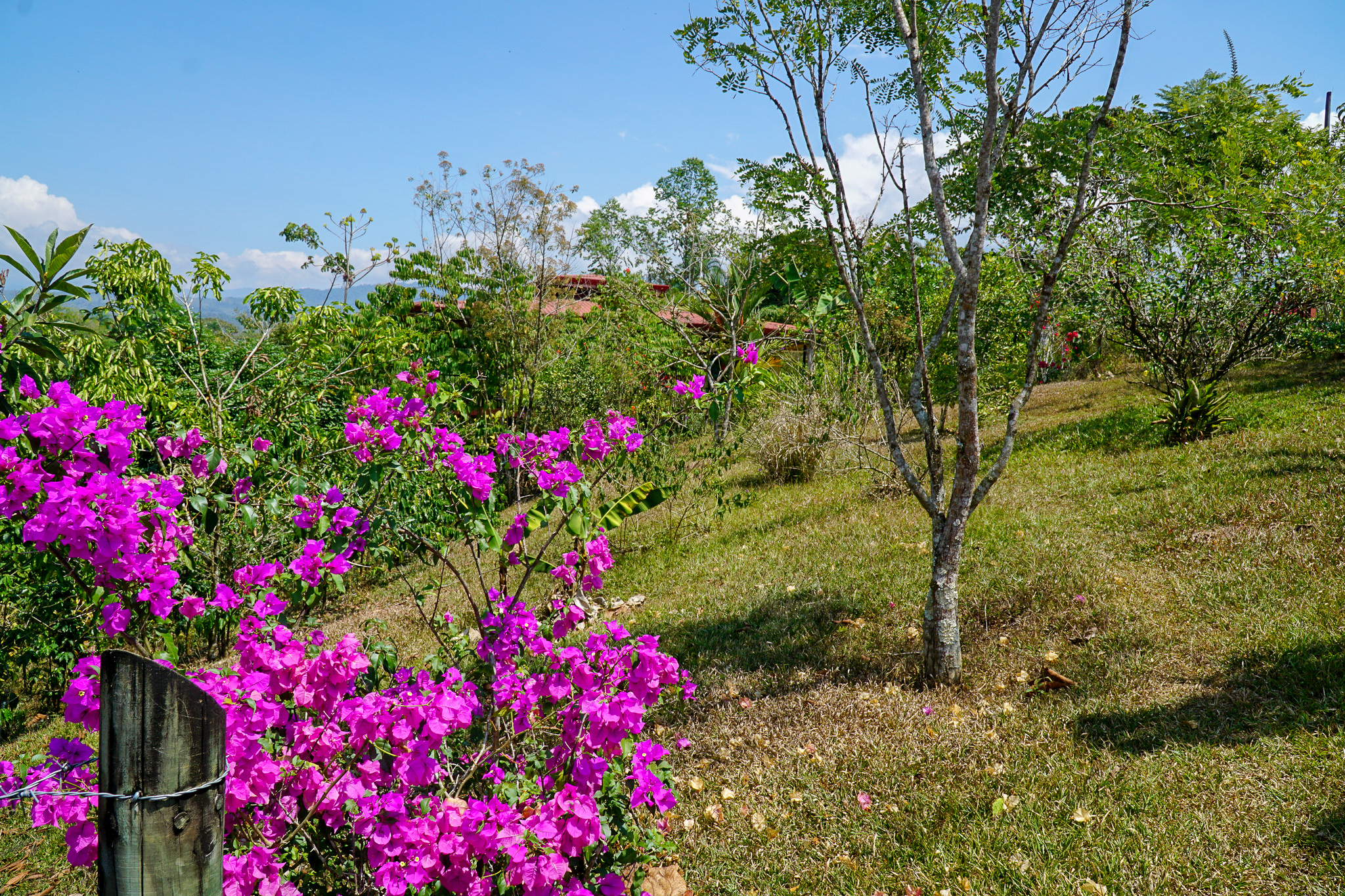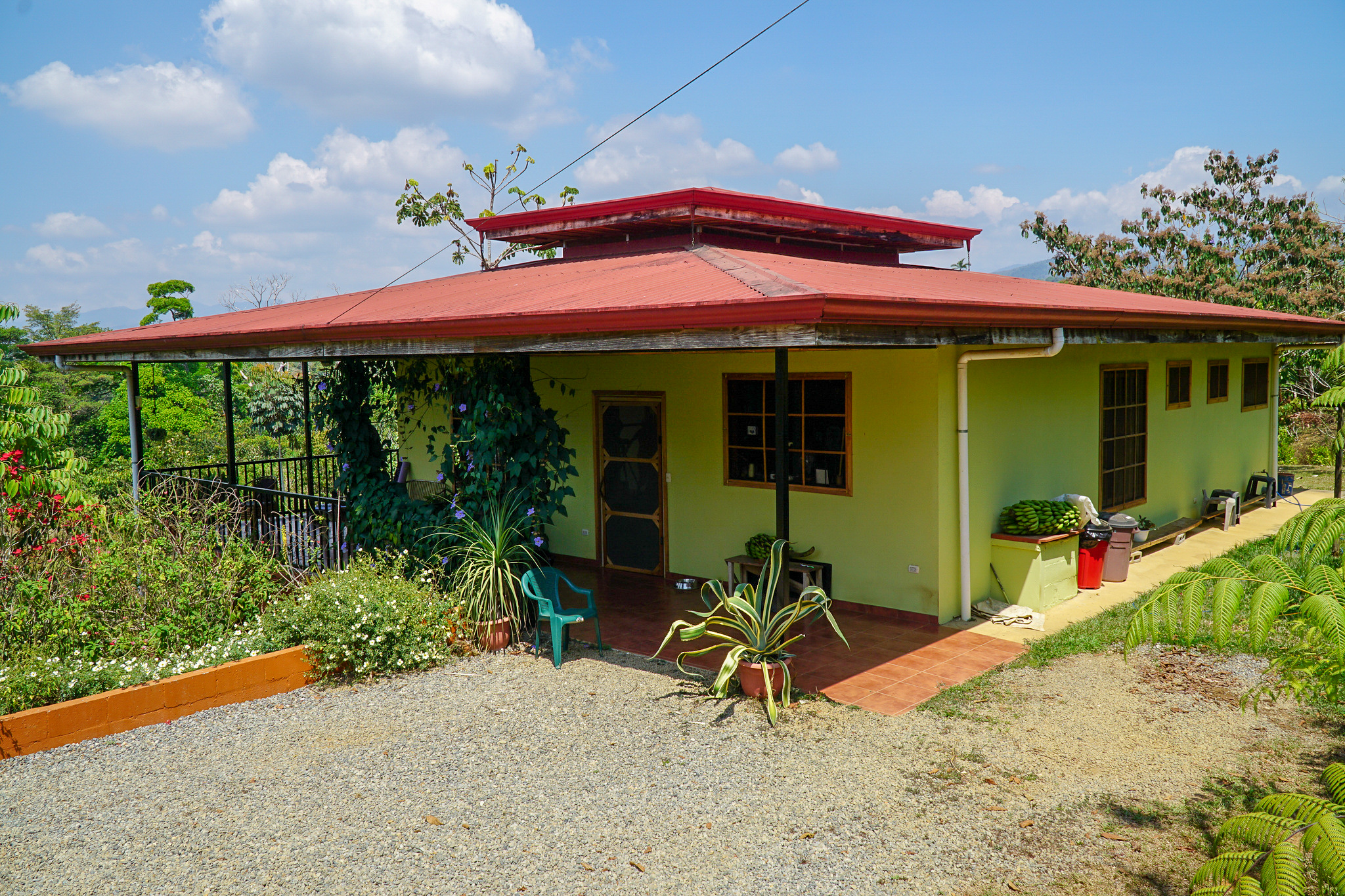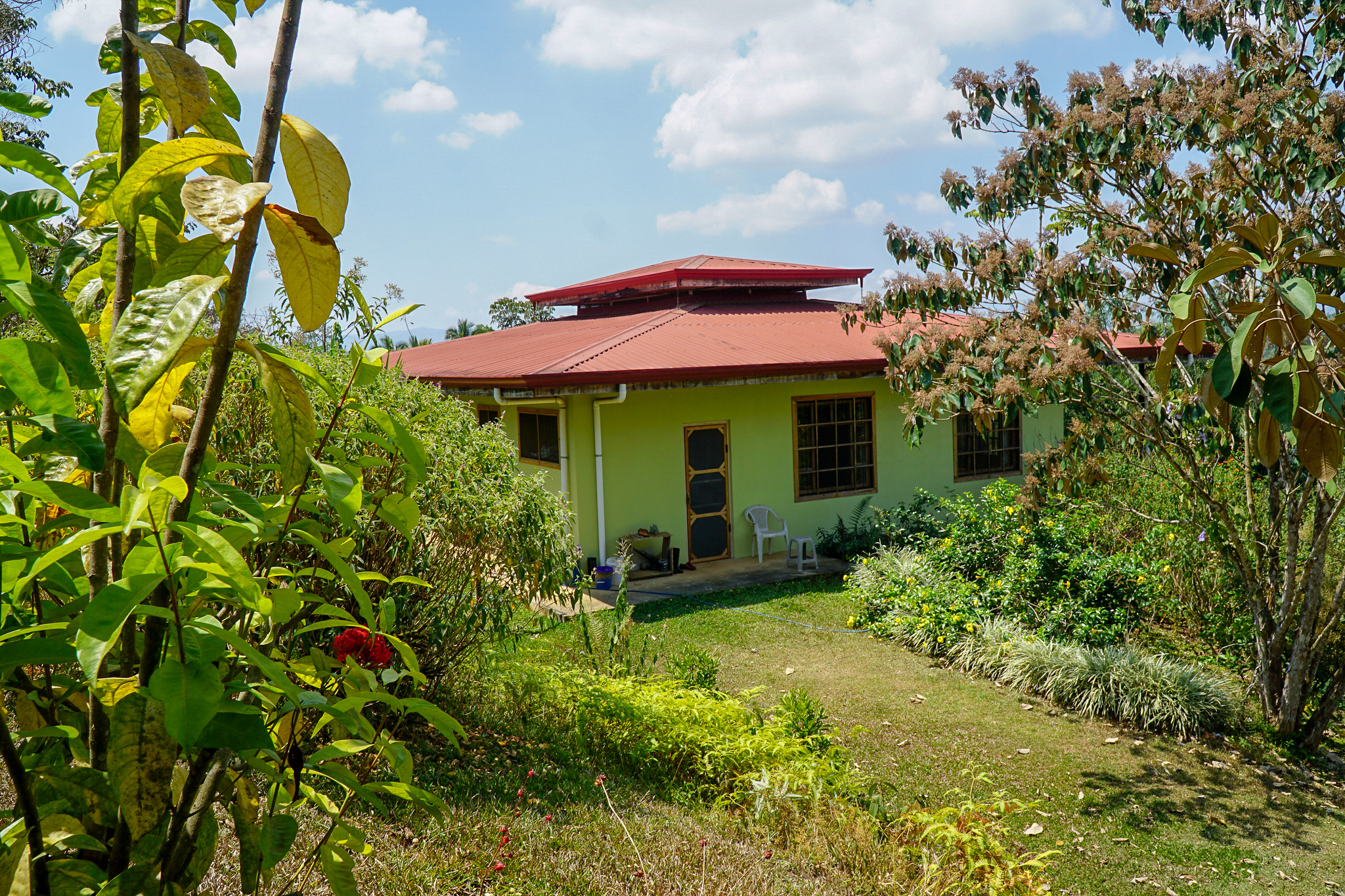 The owners have landscaped the entire property in order to attract as many bird species as possible. There are fruit and flowering trees galore throughout. There is also a small hobby coffee cultivation of 54 trees.