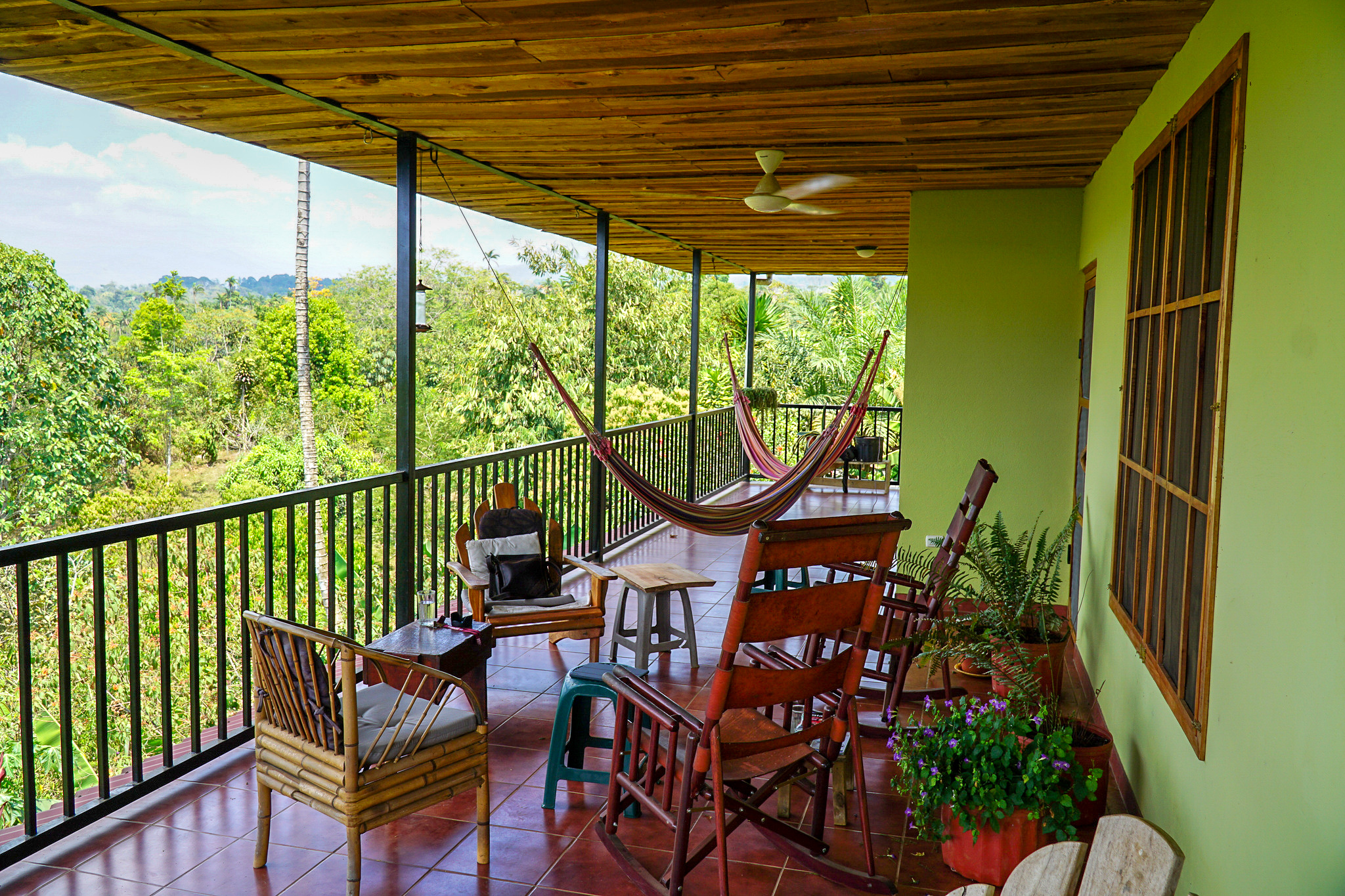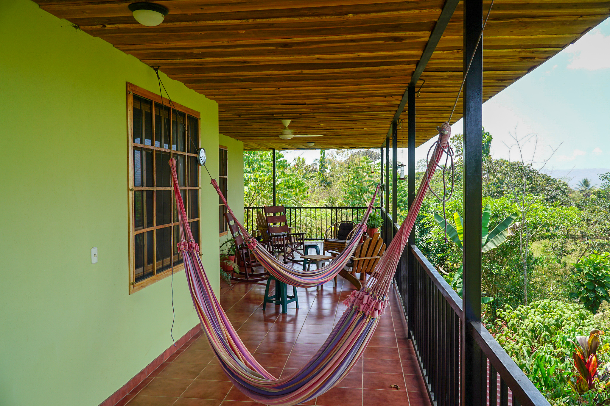 The main living area of the home has two bedrooms with a full bath. There is also a separate guest room with full bath. There is a large covered patio where you can sit and watch the abundance of flora and fauna, along with spectacular mountain sunsets over Cerro de la Muerte, one of Costa Rica's highest mountains.