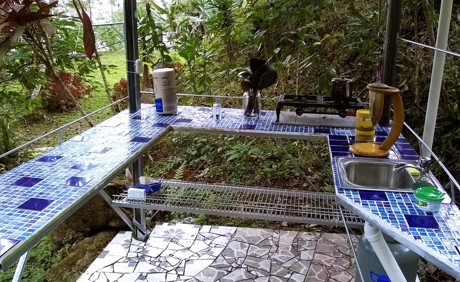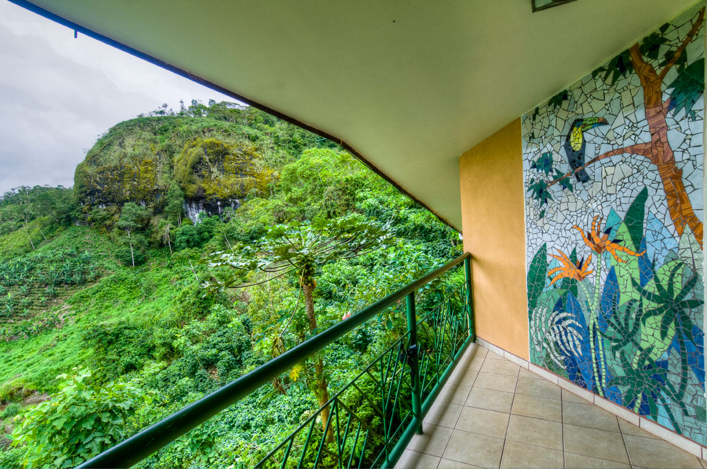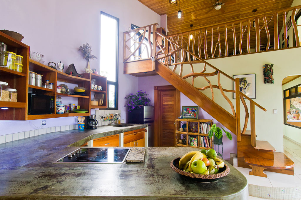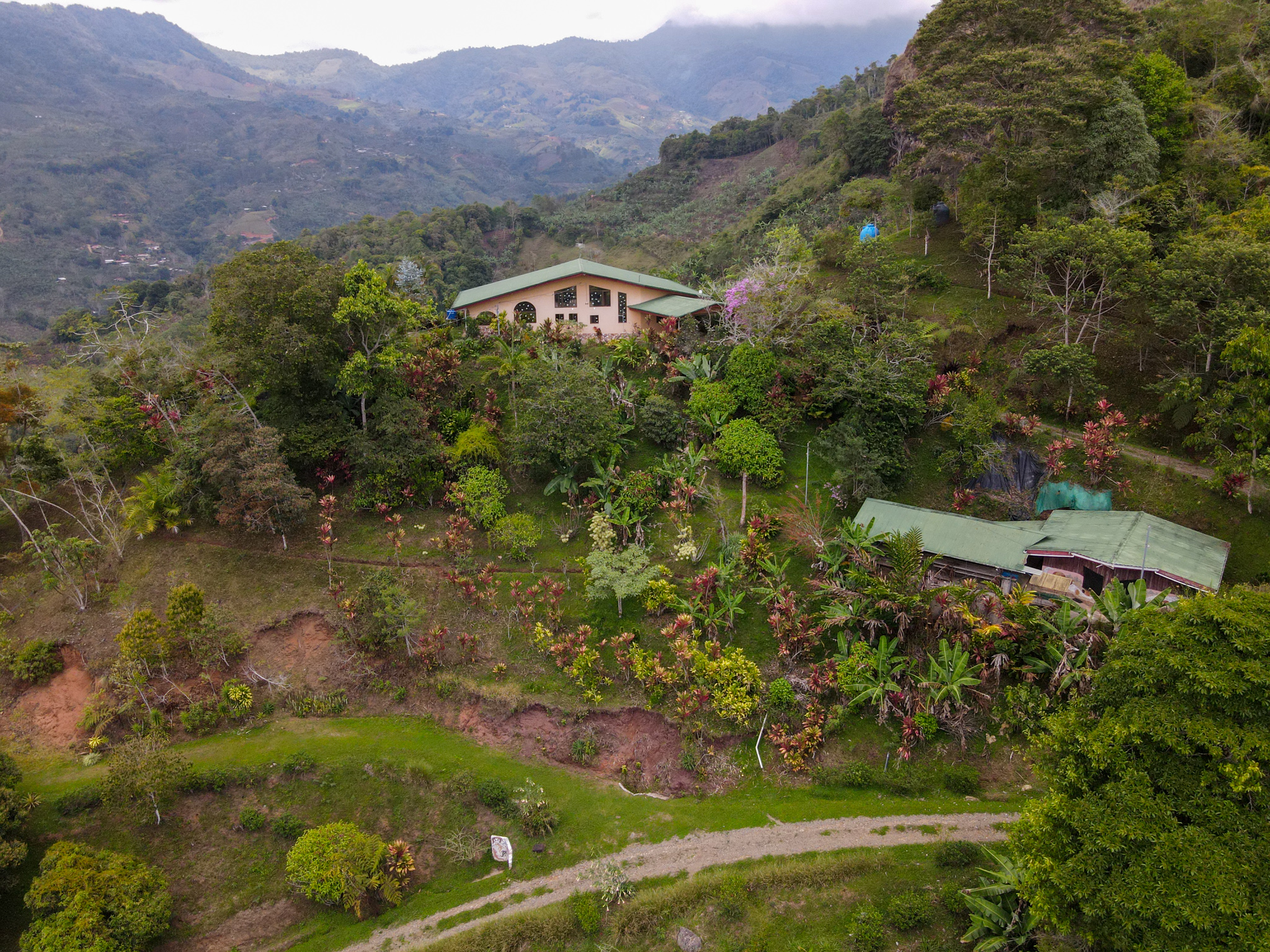 About half the land is unspoiled secondary forest. The home is surrounded by terraced landscaping including an abundance of fruit trees, organic coffee, and bananas.