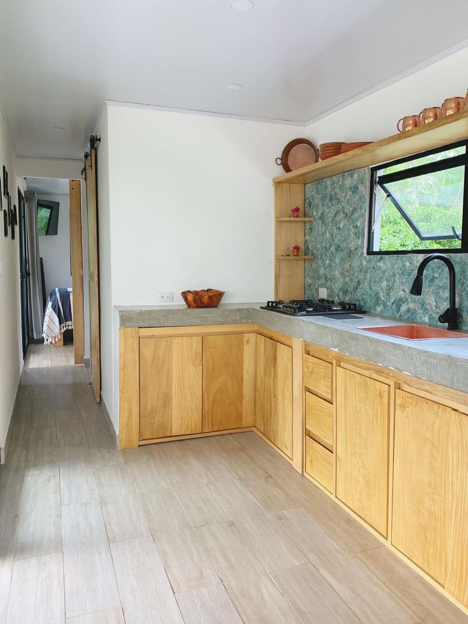 The Home This sustainable 3-bedroom, 2-bathroom home is compact but has everything you need to live confortably. • On the main level, you'll find 2 bedrooms, 1 bathroom, a cozy living area, and a fully equipped kitchen. The space opens to a covered terrace, where you can relax and take in the green views. • Upstairs, a private 1-bedroom, 1-bathroom with its own separate entrance and covered balcony offers a peaceful retreat—ideal for guests or a separate a rental opportunity.